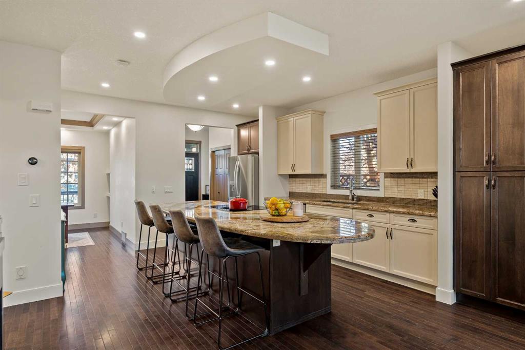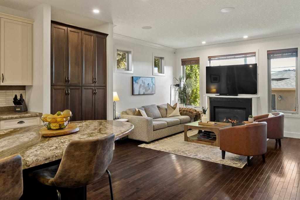Welcome to 2410 26 Street SW, a beautifully appointed home in the heart of Killarney that perfectly blends timeless design with modern comfort. With over 2,800 sq. ft. of developed living space across three levels, this home offers the ideal lifestyle just minutes from downtown Calgary. The inviting main floor is designed for both connection and entertaining, featuring a chef’s kitchen with granite counters, stainless steel appliances, an expansive island, and a full wall of custom cabinetry with a built-in wine fridge. Entertain your guests by the fireplace in your open concept living room or enjoy more intimate dinners in the traditional dining room. Upstairs, the vaulted primary retreat feels airy and luxurious, complete with a spa-inspired ensuite and walk-in closet, down the hall from 2 more bedrooms, a full bath and upstairs laundry. The finished basement extends your living space with a cozy family room, a second gas fireplace, fourth bedroom, and full bath. Complete with large windows, this space is perfect for guests or a home office. Outside, enjoy a sunny east-facing yard with a deck and patio, plus an insulated double garage with a new roof (2025) and a house roof replaced in 2022 for peace of mind. Set on a quiet, tree-lined street close to parks, cafes, schools, and the Westbrook LRT, this Killarney gem offers the best of urban convenience and community charm.