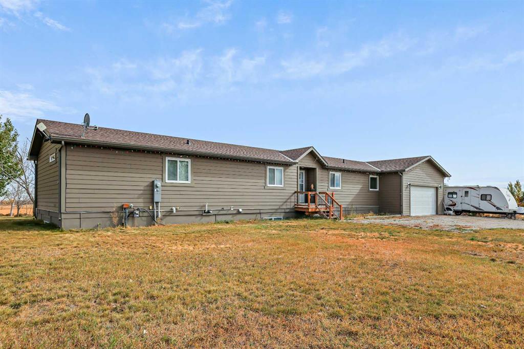 Welcome to your private country retreat in Wheatland County — a beautifully maintained 3-acre property offering the perfect balance of rural serenity and modern comfort. This inviting 3-bedroom, 2-bathroom home spans nearly 1,750 sq. ft. with a functional, open-concept layout designed for everyday living. The main living areas feature sound-insulated walls, durable linoleum and carpet flooring, and a spacious kitchen equipped with double ovens, ample cabinetry, and all major appliances. A massive walk-in pantry provides exceptional storage space, while the adjoining dining and living areas are ideal for family gatherings. The primary suite is a true retreat with a relaxing soaker tub, separate shower, and double sinks with pull-out drawers for added convenience. The walk-up basement is plumbed and ready for future development, giving you room to grow. Built with strength, efficiency, and comfort in mind, this home showcases ICF (Insulated Concrete Form) construction — a modern building method that combines reinforced concrete with insulation to deliver superior durability, energy efficiency, and soundproofing.** ICF walls are highly resistant to extreme weather, provide consistent indoor temperatures year-round, and significantly reduce heating and cooling costs. Coupled with a poured concrete foundation and updated windows and roof (2020), this home is engineered for long-term performance and peace of mind. Step outside and embrace the tranquility of country living. Enjoy morning coffee on either the front or back deck, both overlooking wide-open prairie views. The property includes an insulated double attached garage (with gas line, 30-amp plug, and electrical panel), an invisible dog fence, and secure barbed-wire fencing suitable for pets or livestock.