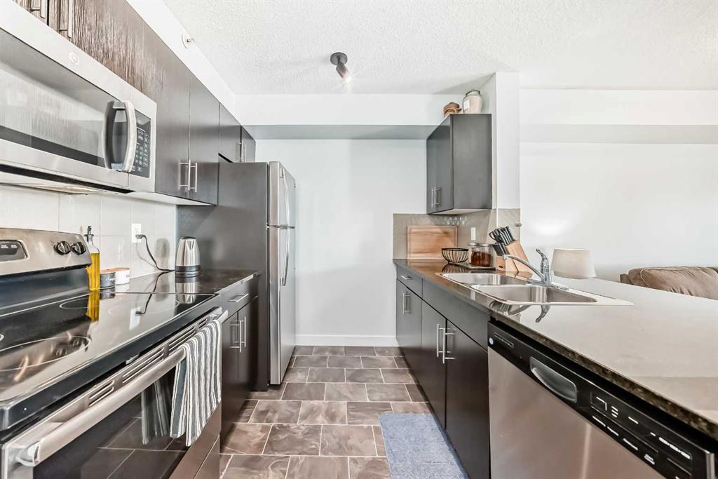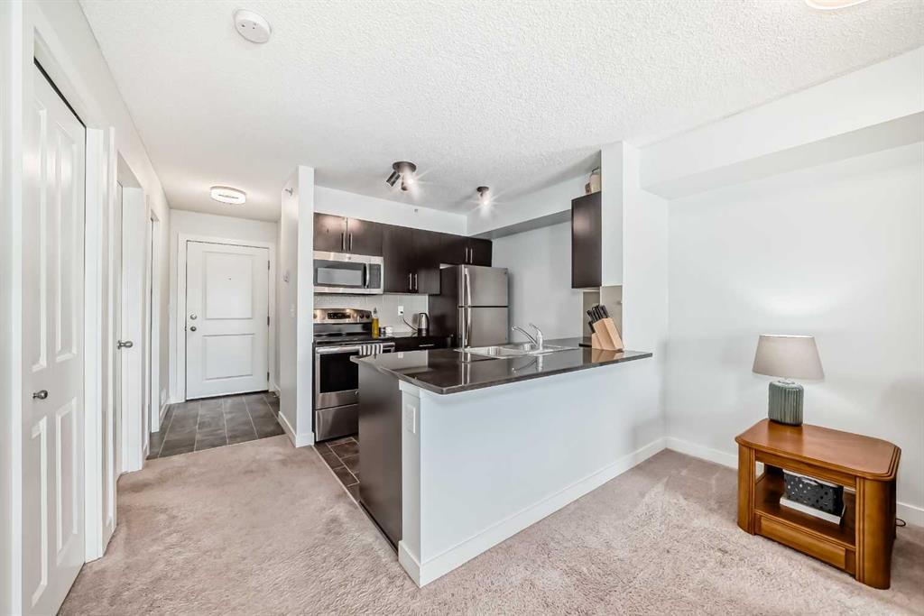 Welcome to this beautifully appointed top-floor condo in the sought-after community of Legacy, located at 81 Legacy Blvd SE in Calgary. This thoughtfully designed 2-bedroom, 1-bathroom residence offers the perfect balance of modern style, comfort, and functionality—ideal for first-time buyers, downsizers, or investors alike. Step inside to discover a bright and airy open-concept layout, enhanced by large windows that invite an abundance of natural light throughout the living space. The contemporary kitchen is both stylish and practical, featuring sleek cabinetry, modern finishes, and ample counter space—perfect for everyday living and entertaining. The seamless flow into the dining and living areas creates a welcoming atmosphere for relaxing or hosting guests. The home is finished in neutral décor with a modern design palette, providing a timeless aesthetic that easily complements any personal style. Both bedrooms are generously sized, offering flexibility for a home office, guest room, or growing household. Situated on the top floor, this unit offers added privacy and a quiet living environment, along with elevated views. Additional highlights include in-suite laundry, a private balcony for outdoor enjoyment, and a dedicated parking stall for convenience. Residents of this well-maintained building enjoy proximity to parks, pathways, shopping, and major routes, making daily commuting and errands effortless. The Legacy community is known for its blend of natural beauty and urban convenience, creating an exceptional place to call home. This is a fantastic opportunity to own a stylish, move-in-ready condo in one of Calgary’s most desirable southeast neighbourhoods.