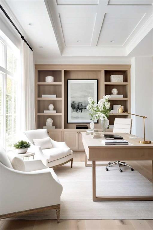 The open-concept main floor features a HOME OFFICE with views into the main living/dining areas and an impressive, upscale kitchen. Offering custom-built cabinetry, a large central island, a flush eating bar, premium stainless-steel appliances, large pantry & a built-in custom range hood. The spacious living room enjoys an inset gas fireplace w/ tile surround & built-in cabinetry w/ large sliding glass doors that take you out to the FULLY LANDSCAPED backyard. A side mudroom with a custom closet keeps your family organized & a gorgeous powder room finishes off the main floor.