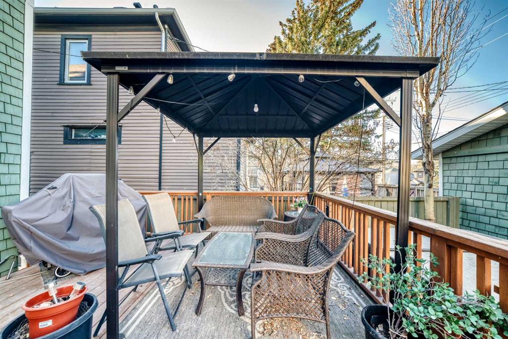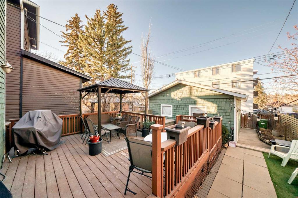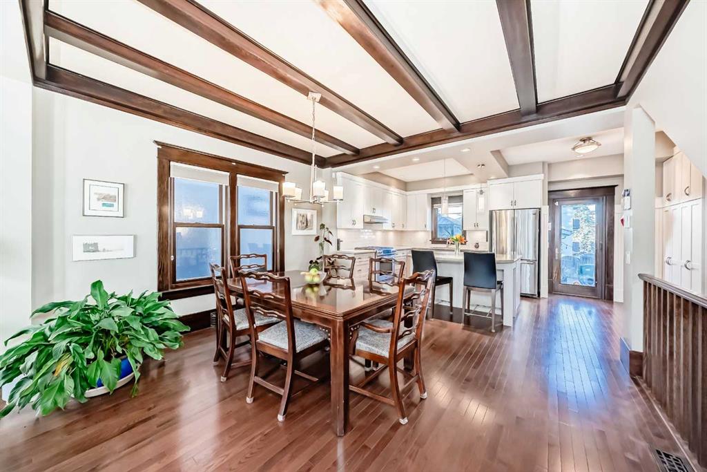 Wonderful 2 Story Character Home that has been Updated while keeping the Charm with Wide Wood Window & Door Casings & Headers and Tall Wood Baseboards. All of this Matching the Original Beamed Ceiling above the Dining Room. Main Level has an Open Floor Plan with 9 Foot Ceilings, Hardwood Floors and a Bright East Facing Livingroom with a Great Gas Fireplace for those Cool Winter Nights! Fabulous Kitchen with Granite Countertops, a Large Granite Island, an Abundance of White Cabinets, a Gas Stove and Stainless Steel Appliances. There are 3 Bedrooms upstairs with a full Bathroom with Granite countertop. Off the master Bedroom is a Lovely Sunroom with Downtown Views! In the Lower Level you will find a Spacious Rec Room, Storage Room , Laundry room and another Full Bathroom with Granite Countertop. The Outstanding Outdoor Entertaining Area with West Facing Backyard that has A large Deck, Hot Tub, Detached Double Garage and Minimalist Landscaping. Book your viewing of this “Stylish, Distinctive Home in a Coveted Neighborhood “