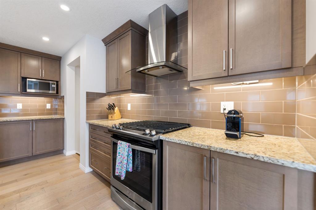 Step inside to a bright and elegant interior featuring luxury hardwood flooring throughout and a chef-inspired kitchen designed to impress. Enjoy custom stone countertops, natural wood cabinetry, and premium stainless steel appliances, including a gas stove. The functional layout, generous storage, and added gas line for BBQ on the back deck make this home perfect for both everyday living and entertaining.