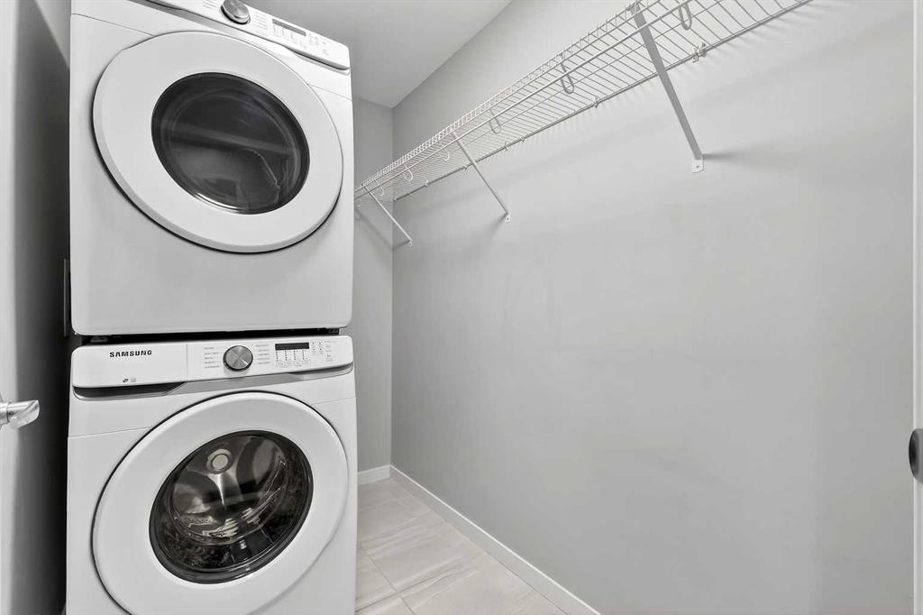 Welcome to Seton Park Place III, where style, convenience and value come together in this beautifully upgraded TOP-FLOOR 2-bedroom condo in Building 2000. Overlooking the peaceful courtyard, this bright and thoughtfully designed 639 sq ft unit offers an open-concept layout enhanced by 9-foot ceilings, large windows and modern finishes throughout, creating a space that feels both comfortable and contemporary. Durable vinyl plank flooring runs throughout the unit complementing the sleek kitchen featuring a massive quartz island that anchors the living space- perfect for entertaining or everyday living. The kitchen flows seamlessly into the living area and out to the private balcony, where upgraded roller blinds on the patio door provide both style and privacy. The primary bedroom is highlighted by a custom feature wall, while the second bedroom offers flexibility for guests, a home office or roommate living. The well-appointed bathroom showcases a full-height tile tub/shower surround, adding a touch of elevated design. Additional upgrades include enhanced lighting and rough-in for future air conditioning, giving you the option to add extra comfort in the years ahead. This home also features in-suite laundry, TWO titled underground parking stalls and an assigned storage locker, offering exceptional convenience rarely found in a condo of this size. Seton Park Place III is a professionally managed, secure building with cameras, low condo fees and a pet-friendly policy (with board approval). Located in the heart of one of Calgary’s most vibrant and walkable communities, you are just steps from South Health Campus, the world-class YMCA, public library, Cineplex, Superstore, restaurants, shops and countless amenities. With quick access to Deerfoot Trail and Stoney Trail, commuting anywhere in the city is effortless. Whether you’re a first-time buyer, investor or downsizer, this top-floor courtyard-facing condo with two titled parking stalls is a rare opportunity to own in one of Calgary’s most sought-after urban communities. *3 of the photos are virtually staged*