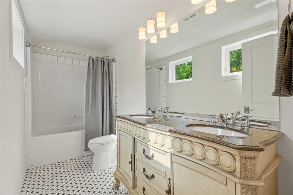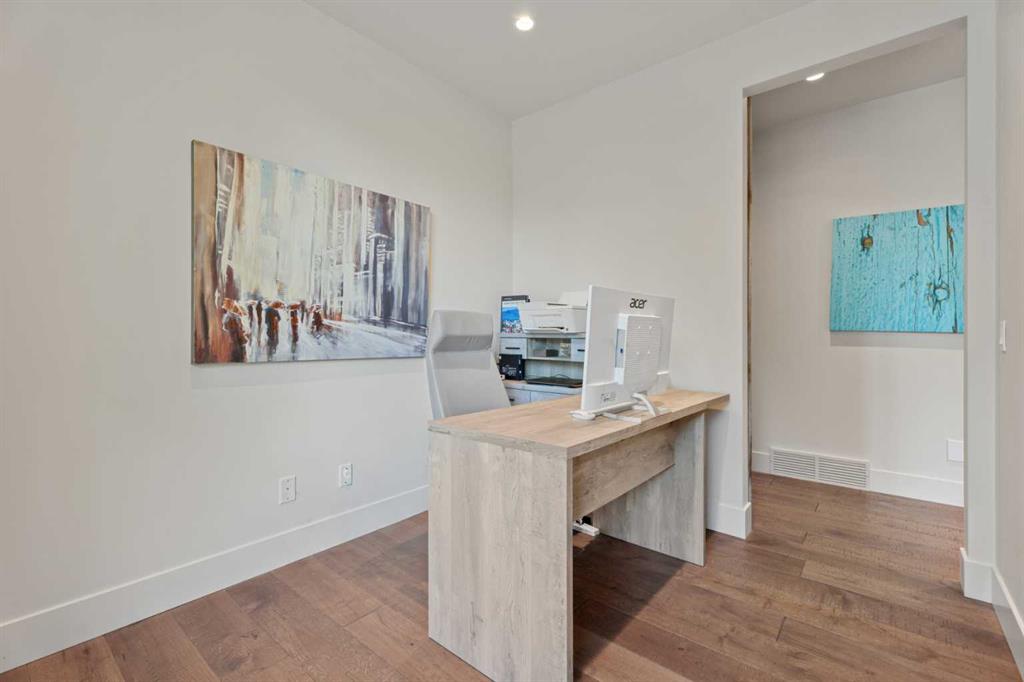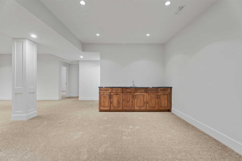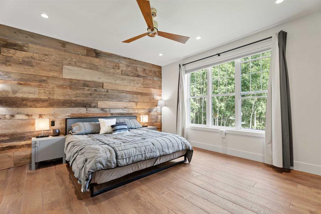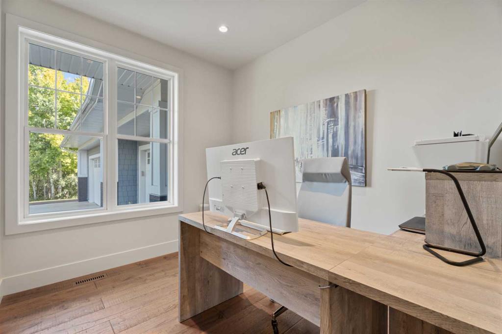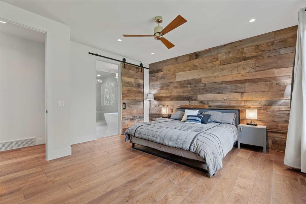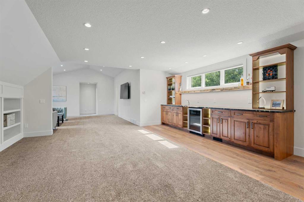 The main-floor primary retreat is a sanctuary of comfort, with vaulted ceilings, a barn wood feature wall, and a spa-inspired ensuite complete with in-floor heating, freestanding soaking tub, walk-in glass shower, and a custom-fitted walk-in closet. A dedicated office, laundry room, and mudroom complete the main level with thoughtful functionality. Upstairs, above the garage, is a versatile bonus room with built-in bar and games area provides an inviting space for relaxation or entertaining, while two additional bedrooms with window seats share a beautifully appointed bathroom. The fully developed lower level offers a billiards area, full bar, spacious recreation room, and two more bedrooms—ideal for hosting guests.
