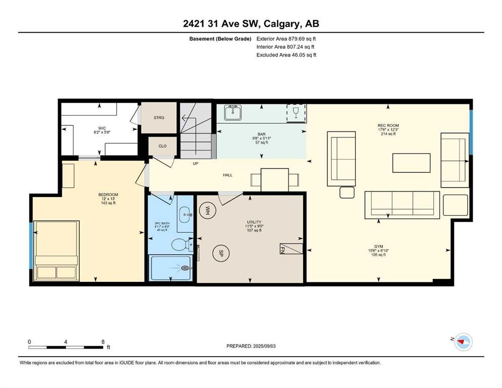 The fully finished basement features radiant in-floor heating, a large rec room, home gym with rubber flooring, wet bar with beverage fridge, 4th bedroom with walk-in closet, and a 3-piece bathroom.