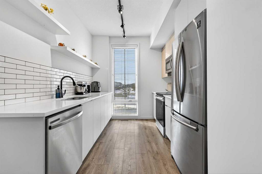 Situated in a quiet location and proudly owned by the original owner, this beautifully maintained home offers a well-designed layout complemented by stylish modern finishes throughout. From the moment you step inside, you’ll appreciate the wood-grain laminate flooring and the functional flow that makes everyday living both comfortable and convenient. The contemporary kitchen is thoughtfully appointed with engineered stone countertops, stainless steel appliances, and an abundance of cabinetry and counter space, making it ideal for both cooking and entertaining. It seamlessly connects to the spacious living area, which extends out to a covered balcony — the perfect setting to unwind or host guests year-round. The primary bedroom features a generous footprint and includes a private 3-piece ensuite. A well-sized second bedroom is positioned next to the 4-piece main bathroom, offering flexibility for guests, family, or a home office. Bathroom countertops are finished in durable laminate, and the home is complete with vinyl windows for efficiency and low maintenance. Additional highlights include a single attached garage. Ideally located within walking distance to a daycare, gym, and retail shops, and just steps from a soon-to-open K–9 school, this move-in ready property offers both lifestyle and convenience. Whether you’re a first-time buyer, downsizer, or investor, this is an exceptional opportunity you won’t want to miss.