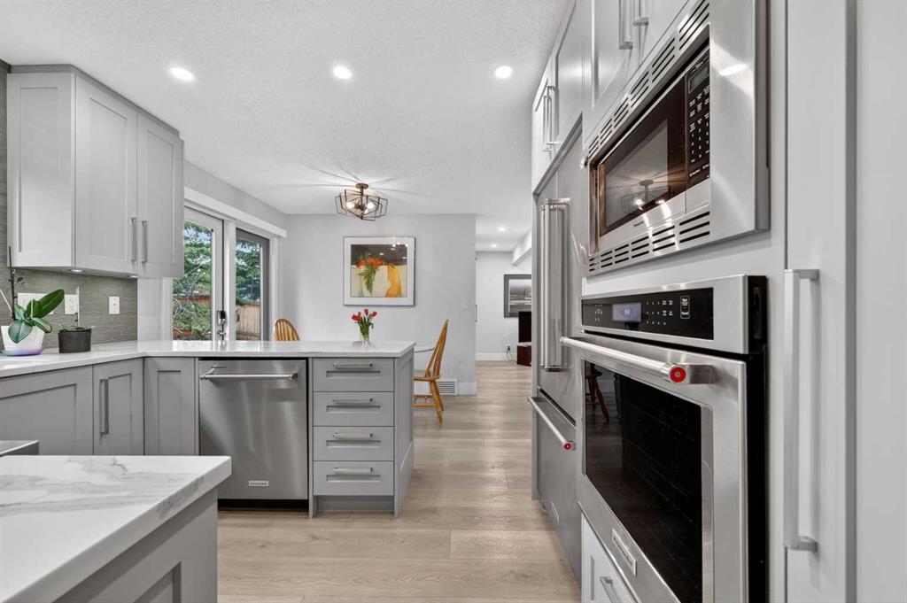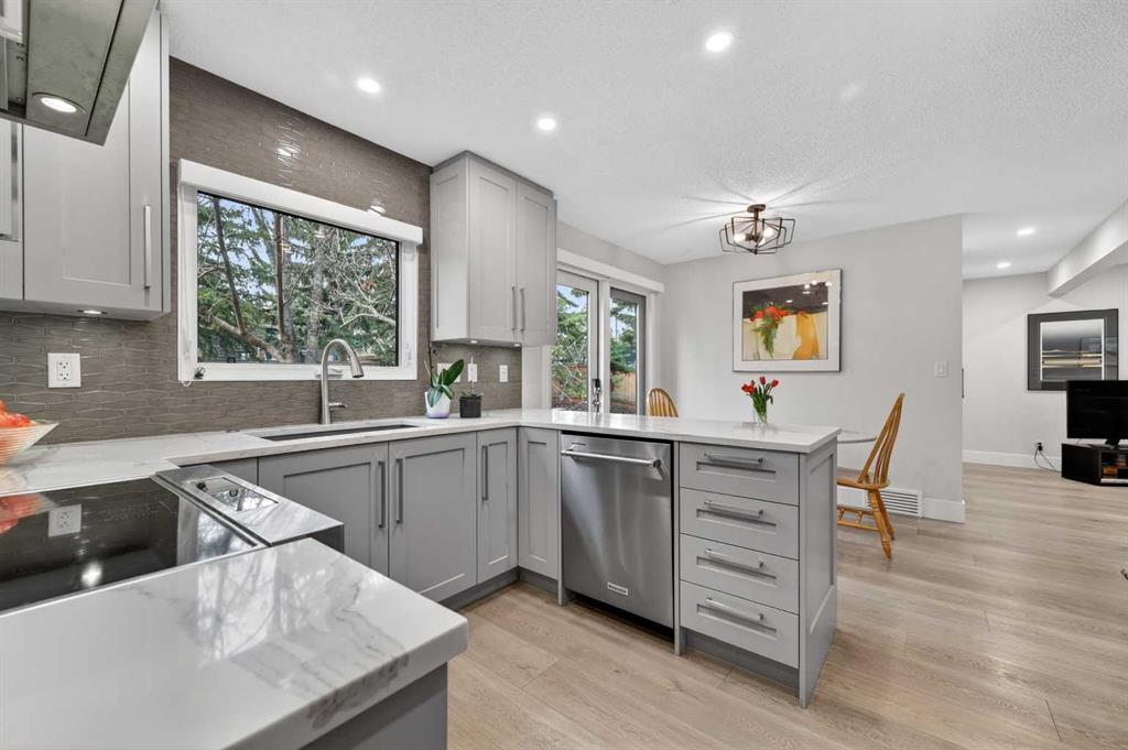 Rare Palliser location! This beautifully updated 4-bedroom, 2-storey home sits directly across from the main community park—featuring soccer fields, baseball diamonds, skating, and a playground—and is also home to Nellie McClung School. This inviting residence features a bright living room with floor-to-ceiling picture windows and an cozy wood-burning stone fireplace. A spacious dining room offers the perfect setting for entertaining, seamlessly connecting to both the living room and the kitchen while overlooking a beautiful sunny backyard. The fully renovated kitchen is a true highlight, showcasing modern finishes, ample cabinetry, and a functional layout ideal for both everyday living and entertaining. Throughout the home, you’ll appreciate fresh paint and new flooring, creating a clean, contemporary feel. The main floor is completed by a newly renovated family room featuring custom pull-outs and built-in storage, blending style with exceptional functionality, along with a convenient laundry/mudroom area and powder room. Upstairs, the oversized primary bedroom includes a sitting area, 4-piece ensuite, and its own stone fireplace. Three additional spacious bedrooms and a full family bath provide plenty of room for a growing family. The undeveloped lower level presents endless potential for future development tailored to your lifestyle. Step outside to enjoy the gorgeous southwest backyard, complete with a deck—perfect for relaxing or hosting summer gatherings. Palliser is a highly sought-after community with quick and convenient access to all amenities and roadways such as Stoney Trail. This is the one you’ve been waiting for!