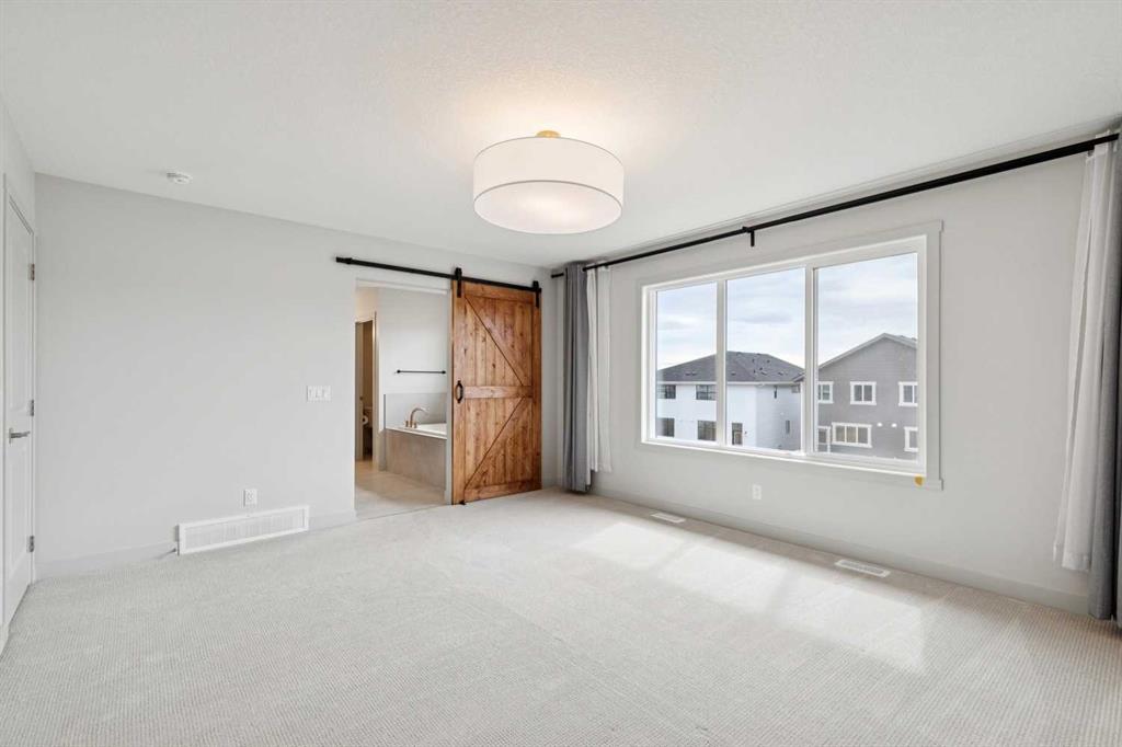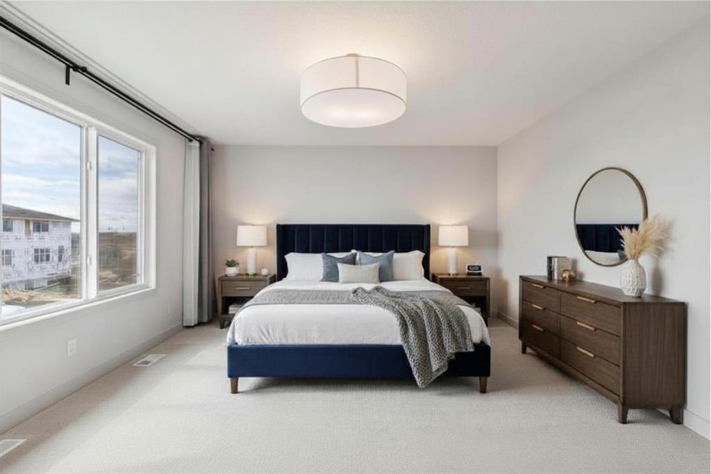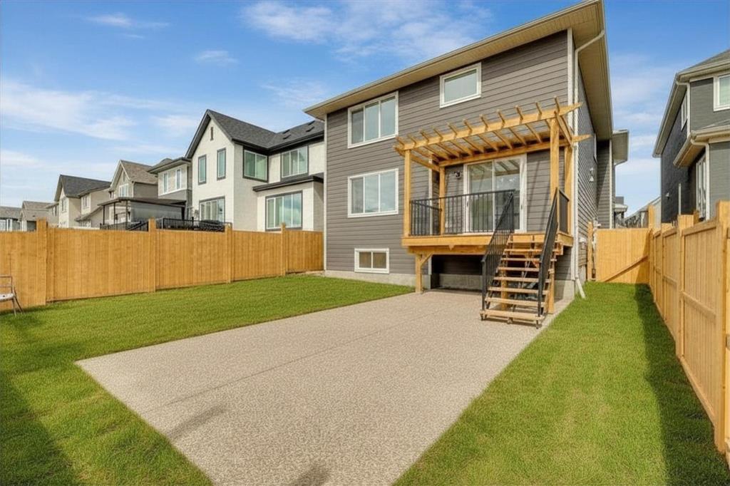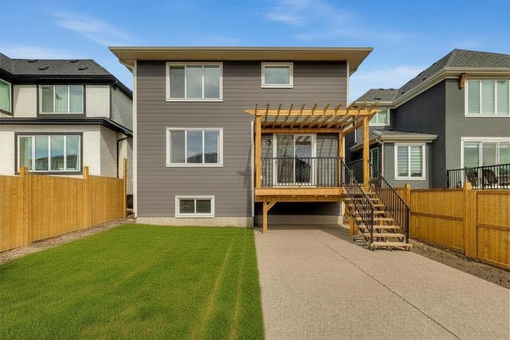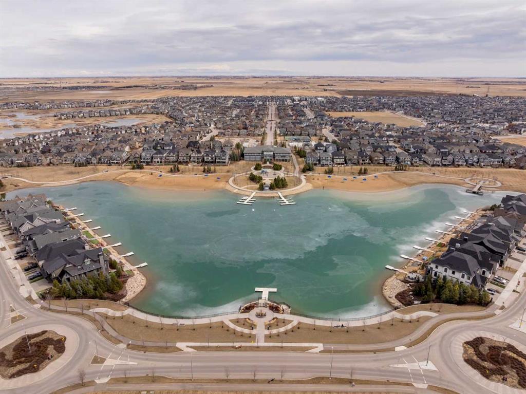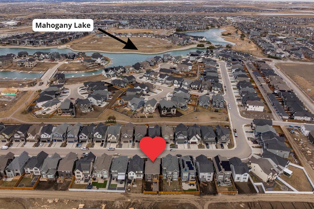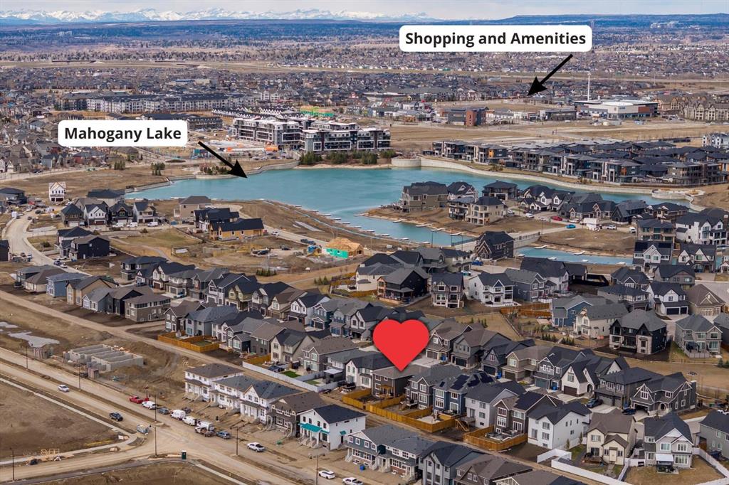 4 BEDROOMS & BONUS ROOM UP | Set within an exclusive, quiet estate pocket of Mahogany, this exceptional, virtually brand-new Baywest-built Rosebud model offers refined lake living with rare SEMI-PRIVATE DOCK ACCESS and over 2,700 sqft of thoughtfully designed space. From the moment you enter, the home impresses with soaring 9′ ceilings, 8’ interior doors, engineered hardwood flooring, and a light-filled layout that balances everyday function with elevated style. The main level is anchored by a stunning chef’s kitchen featuring a statement island, stainless steel appliances including gas stove, full-height cabinetry with crown moulding, under-cabinet lighting, soft-close features, and smart storage including pullouts, all flowing effortlessly into an inviting dining area and expansive great room with a gas fireplace. Tucked discreetly at the rear, a walk-through pantry connects to a practical mudroom, while a dedicated main floor office provides a quiet, flexible workspace. Upstairs, a central bonus room creates separation and privacy, leading to a serene primary retreat complete with custom blinds, a spa-inspired ensuite with custom barn door, dual sinks, quartz counters, glass shower with accent wall, large soaker tub and an oversized walk-in closet with built-ins, along with 3 additional bedrooms, a full bathroom with dual sinks and tub/shower combo, and a conveniently located laundry room accessed from the primary bedroom closet as well as the hallway. The exterior showcases a timeless combination of Hardie Board and brick, while the heated TRIPLE ATTACHED GARAGE (painted walls and floor) and paved rear laneway add both prestige and practicality. An unfinished basement with 9′ ceilings and 2 windows presents an opportunity to customize to your needs. The south-facing, fully fenced backyard features a gas BBQ hook-up on the deck and gate access to the laneway behind the house. Custom window coverings, back fence, back raised & covered deck (8′ x 13′), and back aggregate concrete patio are all additional features that you will not find from a builder, yet the one-year bumper-to-bumper new home warranty is valid until September 2026! Located in one of Calgary’s most desirable lake communities, residents enjoy access to Mahogany’s PRIVATE BEACH, extensive pathways, non-motorized marina, tennis courts, basketball court, skating rink, fitness facilities, and vibrant urban village amenities, offering a truly elevated, 4-season lifestyle. Buyers will receive a $1500 credit for back and front landscaping, but a tree is already in place in the front yard. Location perks: Calgary Catholic School District is planning a K–9 school in the area, about a 500 m walk east from this property. Mercado Village is a planned shopping and dining complex about a 500 m walk south of the property. Back gate to be finished ASAP.