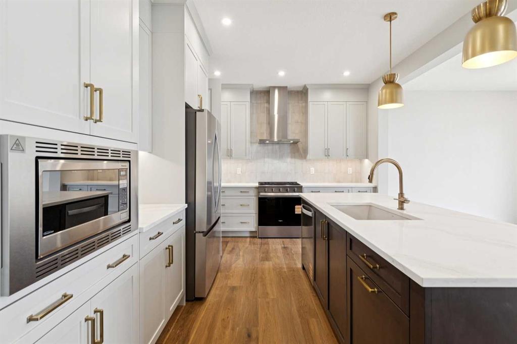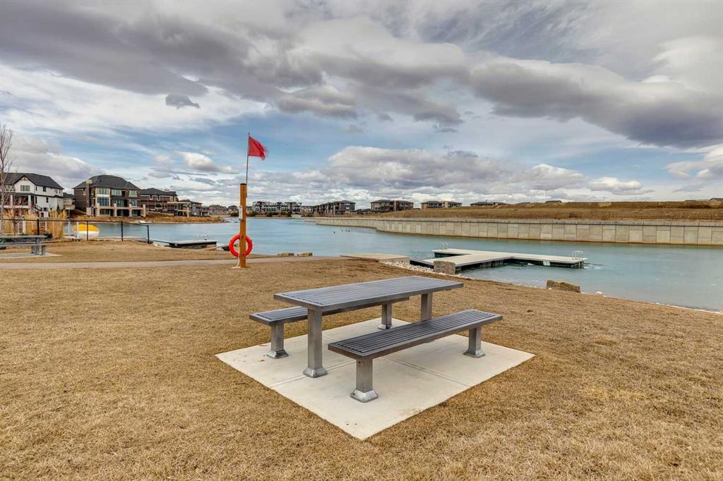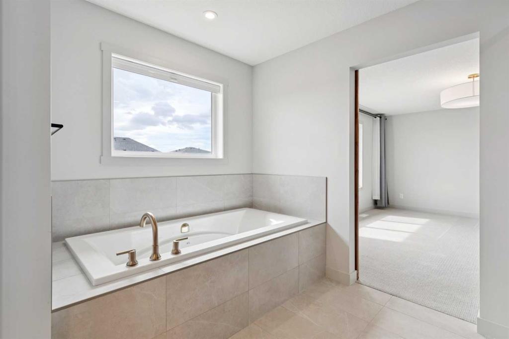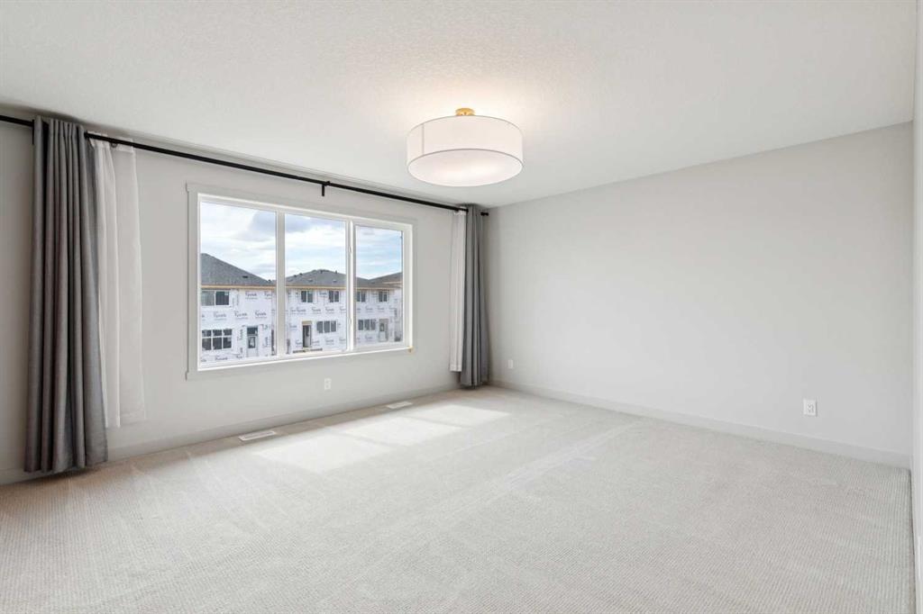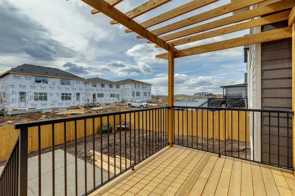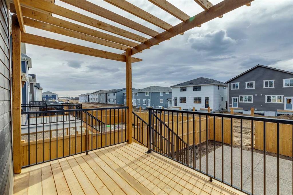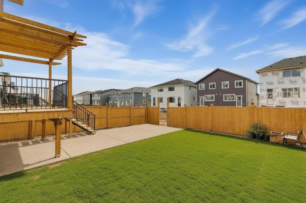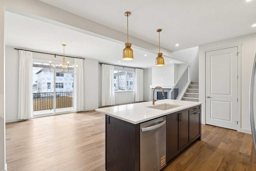 4 BEDROOMS & BONUS ROOM UP | Set within an exclusive, quiet estate pocket of Mahogany, this exceptional, virtually brand-new Baywest-built Rosebud model offers refined lake living with rare SEMI-PRIVATE DOCK ACCESS and over 2,700 sqft of thoughtfully designed space. From the moment you enter, the home impresses with soaring 9′ ceilings, 8’ interior doors, engineered hardwood flooring, and a light-filled layout that balances everyday function with elevated style. The main level is anchored by a stunning chef’s kitchen featuring a statement island, stainless steel appliances including gas stove, full-height cabinetry with crown moulding, under-cabinet lighting, soft-close features, and smart storage including pullouts, all flowing effortlessly into an inviting dining area and expansive great room with a gas fireplace. Tucked discreetly at the rear, a walk-through pantry connects to a practical mudroom, while a dedicated main floor office provides a quiet, flexible workspace. Upstairs, a central bonus room creates separation and privacy, leading to a serene primary retreat complete with custom blinds, a spa-inspired ensuite with custom barn door, dual sinks, quartz counters, glass shower with accent wall, large soaker tub and an oversized walk-in closet with built-ins, along with 3 additional bedrooms, a full bathroom with dual sinks and tub/shower combo, and a conveniently located laundry room accessed from the primary bedroom closet as well as the hallway. The exterior showcases a timeless combination of Hardie Board and brick, while the heated TRIPLE ATTACHED GARAGE (painted walls and floor) and paved rear laneway add both prestige and practicality. An unfinished basement with 9′ ceilings and 2 windows presents an opportunity to customize to your needs. The south-facing, fully fenced backyard features a gas BBQ hook-up on the deck and gate access to the laneway behind the house. Custom window coverings, back fence, back raised & covered deck (8′ x 13′), and back aggregate concrete patio are all additional features that you will not find from a builder, yet the one-year bumper-to-bumper new home warranty is valid until September 2026! Located in one of Calgary’s most desirable lake communities, residents enjoy access to Mahogany’s PRIVATE BEACH, extensive pathways, non-motorized marina, tennis courts, basketball court, skating rink, fitness facilities, and vibrant urban village amenities, offering a truly elevated, 4-season lifestyle. Buyers will receive a $1500 credit for back and front landscaping, but a tree is already in place in the front yard. Location perks: Calgary Catholic School District is planning a K–9 school in the area, about a 500 m walk east from this property. Mercado Village is a planned shopping and dining complex about a 500 m walk south of the property. Back gate to be finished ASAP.