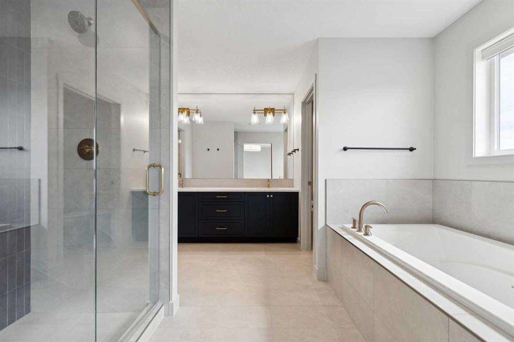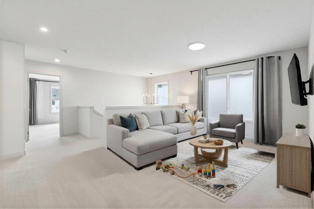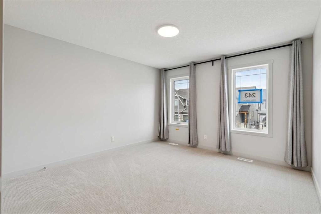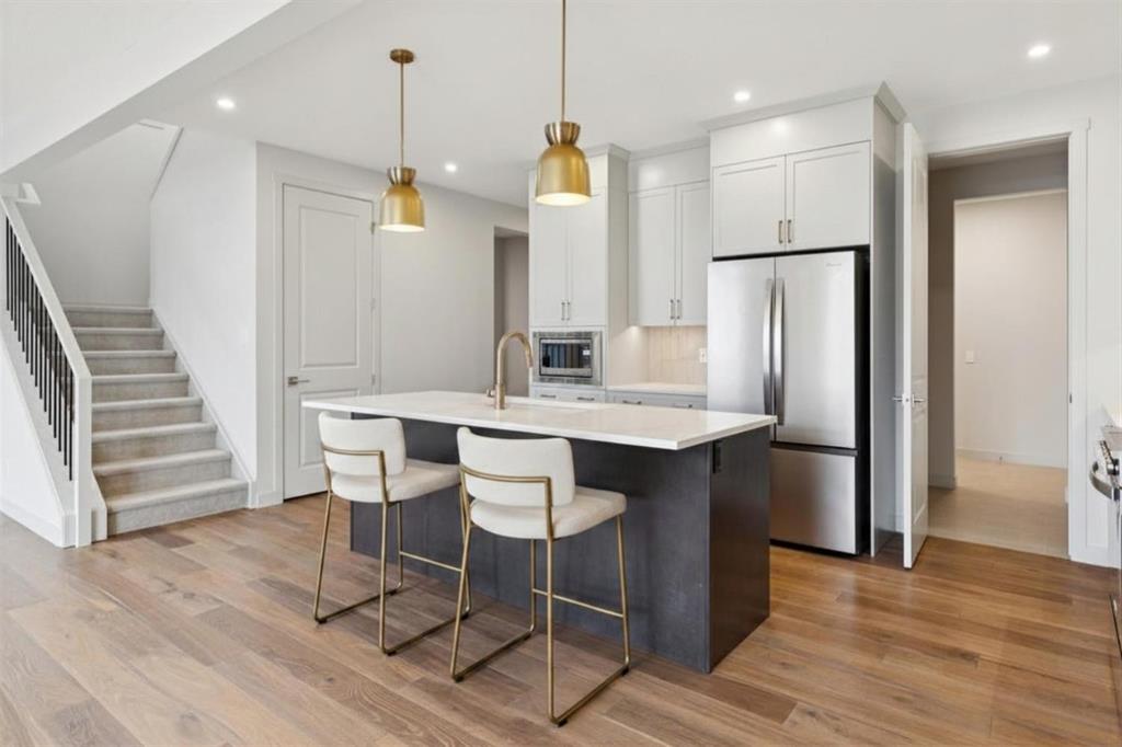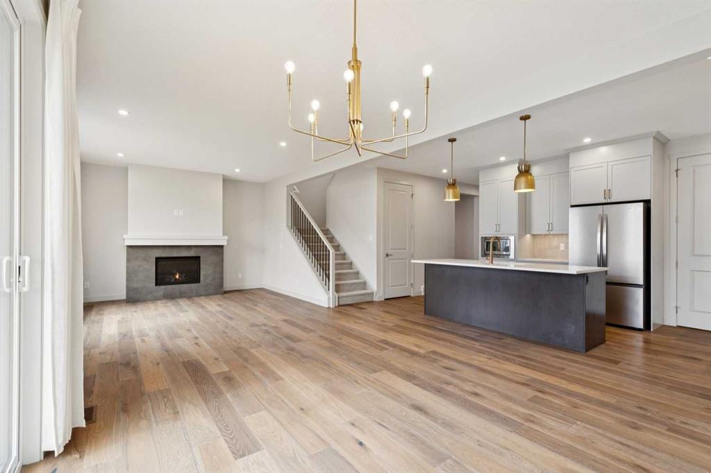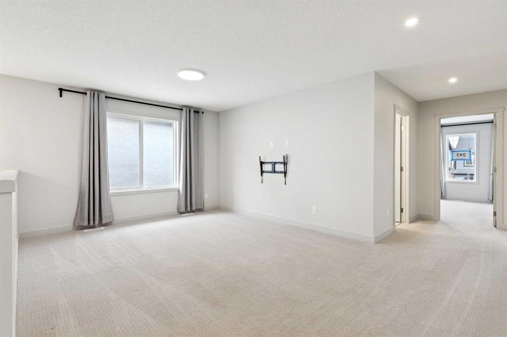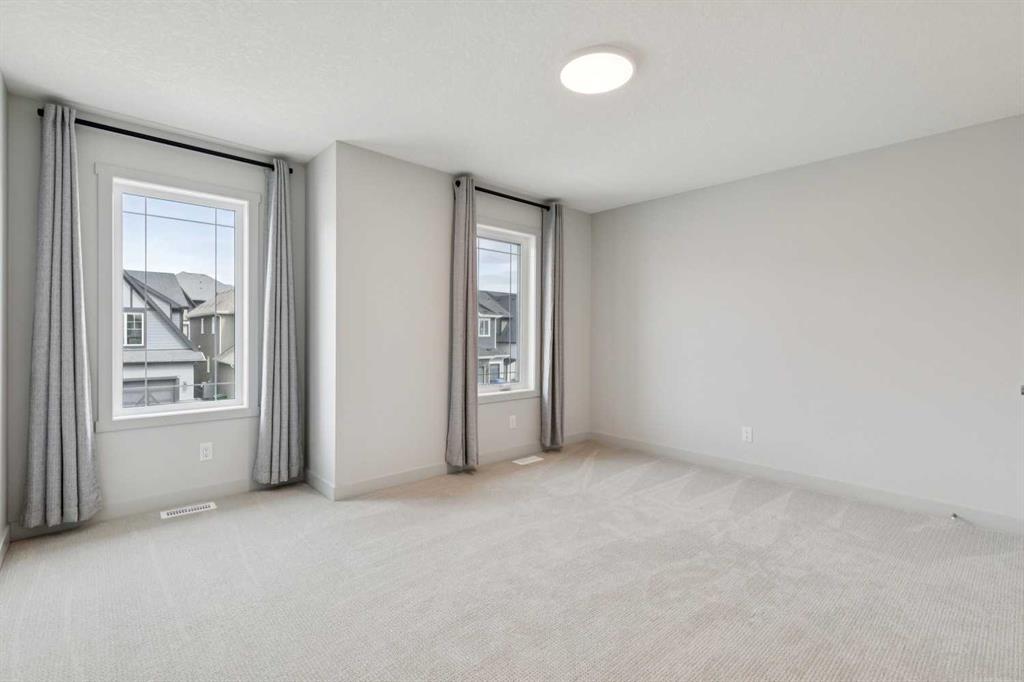 4 BEDROOMS & BONUS ROOM UP | Set within an exclusive, quiet estate pocket of Mahogany, this exceptional, virtually brand-new Baywest-built Rosebud model offers refined lake living with rare SEMI-PRIVATE DOCK ACCESS and over 2,700 sqft of thoughtfully designed space. From the moment you enter, the home impresses with soaring 9′ ceilings, 8’ interior doors, engineered hardwood flooring, and a light-filled layout that balances everyday function with elevated style. The main level is anchored by a stunning chef’s kitchen featuring a statement island, stainless steel appliances including gas stove, full-height cabinetry with crown moulding, under-cabinet lighting, soft-close features, and smart storage including pullouts, all flowing effortlessly into an inviting dining area and expansive great room with a gas fireplace. Tucked discreetly at the rear, a walk-through pantry connects to a practical mudroom, while a dedicated main floor office provides a quiet, flexible workspace. Upstairs, a central bonus room creates separation and privacy, leading to a serene primary retreat complete with custom blinds, a spa-inspired ensuite with custom barn door, dual sinks, quartz counters, glass shower with accent wall, large soaker tub and an oversized walk-in closet with built-ins, along with 3 additional bedrooms, a full bathroom with dual sinks and tub/shower combo, and a conveniently located laundry room accessed from the primary bedroom closet as well as the hallway. The exterior showcases a timeless combination of Hardie Board and brick, while the heated TRIPLE ATTACHED GARAGE (painted walls and floor) and paved rear laneway add both prestige and practicality. An unfinished basement with 9′ ceilings and 2 windows presents an opportunity to customize to your needs. The south-facing, fully fenced backyard features a gas BBQ hook-up on the deck and gate access to the laneway behind the house. Custom window coverings, back fence, back raised & covered deck (8′ x 13′), and back aggregate concrete patio are all additional features that you will not find from a builder, yet the one-year bumper-to-bumper new home warranty is valid until September 2026! Located in one of Calgary’s most desirable lake communities, residents enjoy access to Mahogany’s PRIVATE BEACH, extensive pathways, non-motorized marina, tennis courts, basketball court, skating rink, fitness facilities, and vibrant urban village amenities, offering a truly elevated, 4-season lifestyle. Buyers will receive a $1500 credit for back and front landscaping, but a tree is already in place in the front yard. Location perks: Calgary Catholic School District is planning a K–9 school in the area, about a 500 m walk east from this property. Mercado Village is a planned shopping and dining complex about a 500 m walk south of the property. Back gate to be finished ASAP.