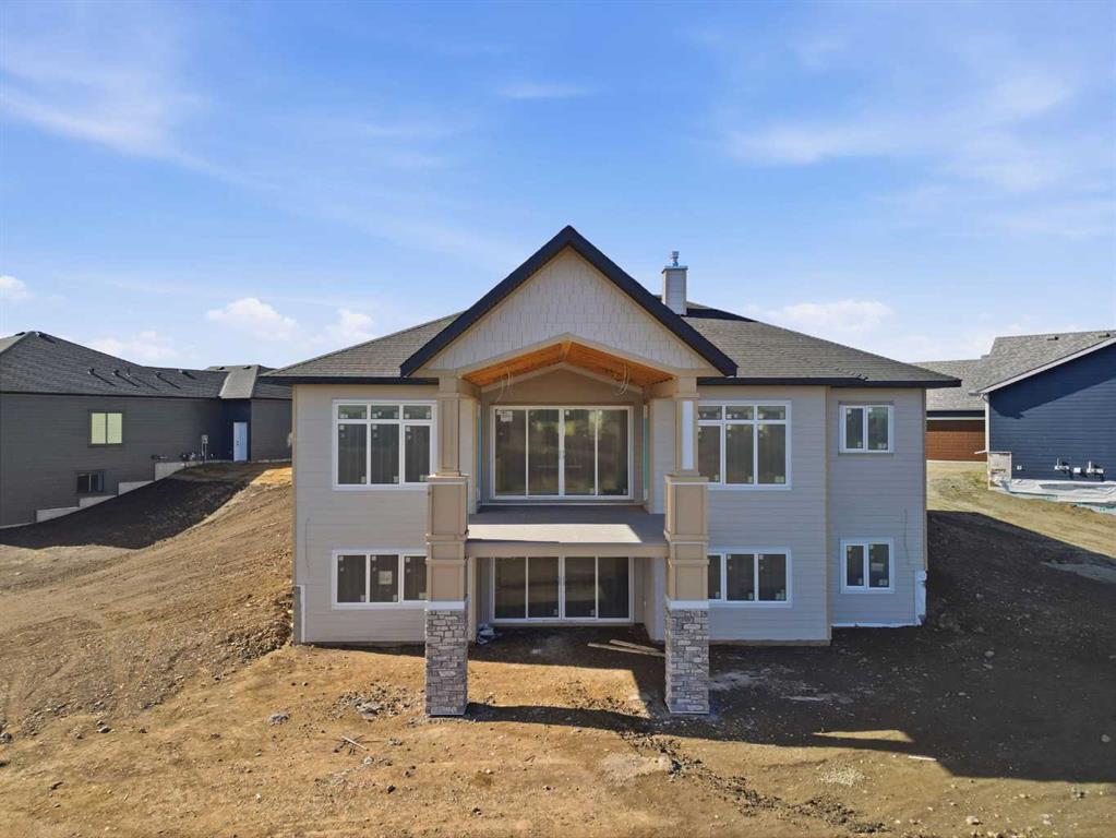 Experience the perfect blend of architectural elegance and country serenity with this upcoming custom masterpiece in the prestigious Red Tail Ridge community. Scheduled for completion by the end of July 2026, this exquisite home sits on a sprawling 0.41-acre lot and offers the rare acreage advantage of full municipal services, including city water, natural gas, electricity, and sewage. The striking exterior creates incredible curb appeal, pairing an expansive amount of masonry with durable James Hardie board siding and warm cedar soffits, while the front porch and rear deck ensure you can enjoy the outdoors no matter the time of day. Inside, the home is defined by soaring 10-foot main floor ceilings and a breathtaking 13-foot vaulted entry, leading into an expansive kitchen and dining room featuring custom cabinetry and premium KitchenAid appliances. The interior is finished with white oak railings, and engineered hardwood throughout both the upper and lower levels and Lux windows. Enjoy solid core doors complimenting the luxury details of the home. Designed for maximum comfort and utility, the property includes an oversized 44 x 25-foot triple garage and a functional fully finished 9-foot basement equipped with in-floor heating, a dedicated gym, and thoughtful planning to mitigate bulkheads for a clean, open feel. Please have your favourite Realtor call us today for an in-progress walk-through!