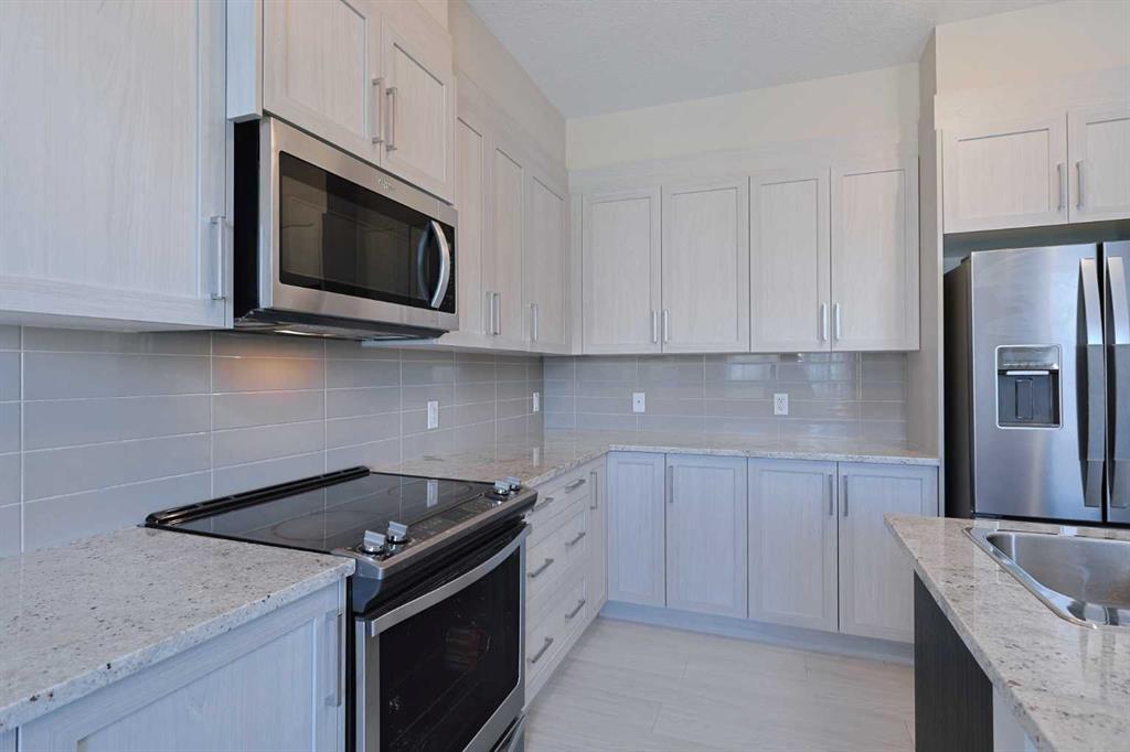 Location, location, location! Backing onto a winding pathway & ravine in Sage Hill is this beautiful condo in the VERONA TOWNHOMES project from Trico Homes. Drenched in natural light, this wonderful 3 bedroom / 2.5 bath home has upgraded laminate floors & granite countertops, oversized single garage, sunny backyard deck & prime location just minutes to the Sage Hill Crossing retail centre. Offering maintenance-free living so you can enjoy the finer things in life, you’ll simply love this fantastic townhouse with is bright & airy living room with 9ft ceilings, expansive windows & deck. The 9ft ceilings continue into the open concept kitchen & dining room with granite counters & soft-close cabinetry, island & Whirlpool stainless steel appliances. On the way up to the top floor bedroom level is the landing with laundry closet complete with stacking Whirlpool washer & dryer. Both of the bedrooms are a terrific size & have their own private ensuites; the primary bedroom has a wall-of-closets & ensuite with granite-topped double vanities & walk-in shower. The 2nd bedroom has a walk-in closet, ensuite with shower/tub combo & views of the ravine. A big 3rd bedroom is on the ground level…which could easily double as your home office. Additional extras & features include custom window blinds, natural gas line for your BBQ on the deck, underground sprinklers, Decora switches & oversized/drywalled 1 car garage plus extra parking on the driveway. Pet-friendly complex with loads of visitor parking & playground for the kids, & the monthly condo fees include grass cutting & snow removal. Top-notch location in this popular Symons Valley community only a short drive to major retail centers & quick easy access to Stoney/Deerfoot/Beddington Trails to take you to the airport, Cross Iron Mills, all area amenities & downtown.