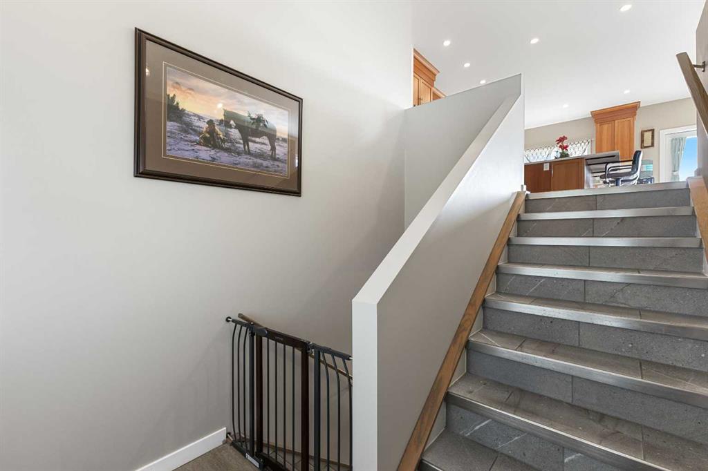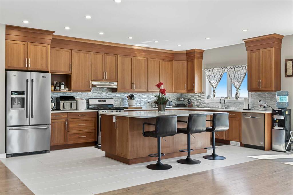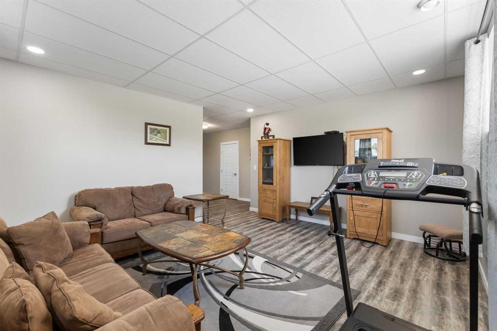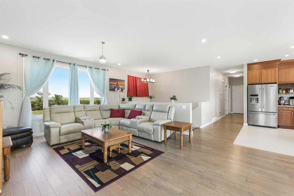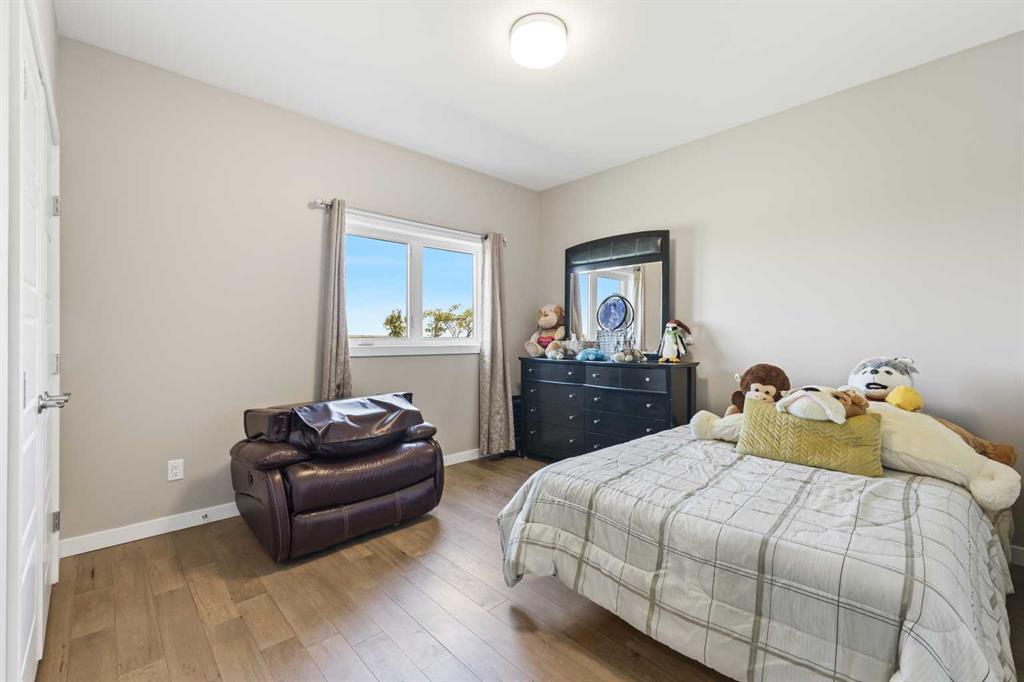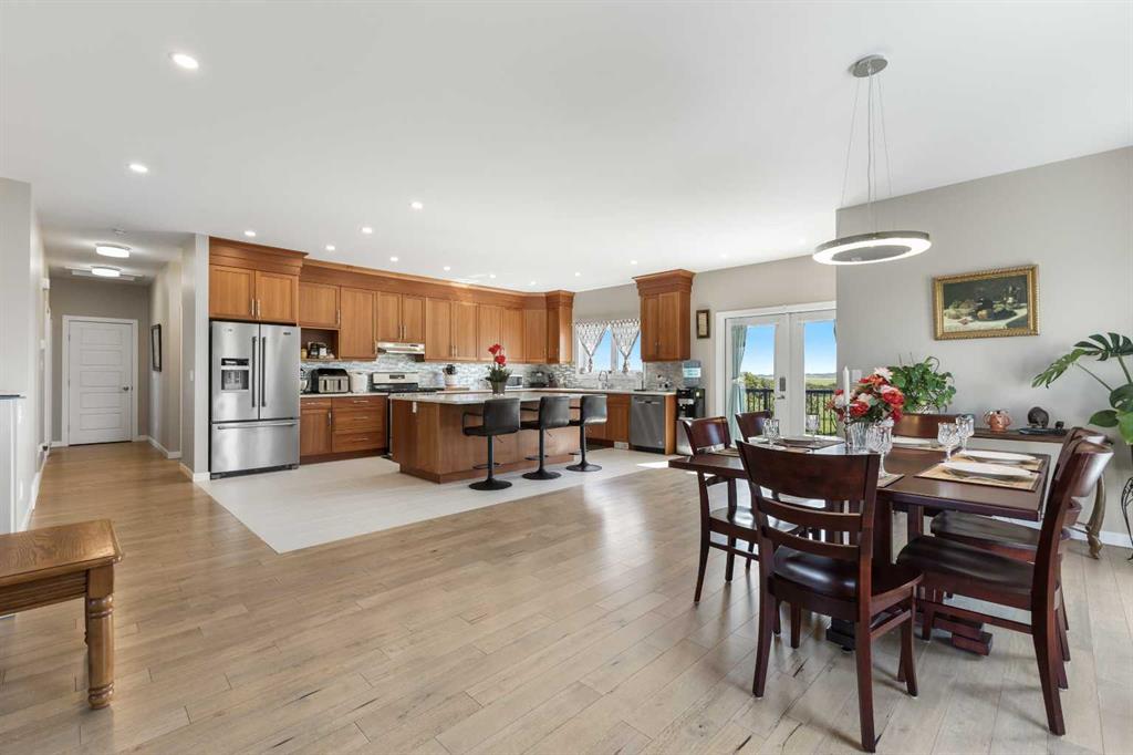 **Welcome to your spacious acreage just minutes from Strathmore!** Enjoy the perfect balance of country serenity and city convenience with quick access to all amenities and an easy commute to Calgary via Highway 1. Set on 5 acres with paved access and no gravel roads, this impressive property offers breathtaking west-facing mountain views on clear days. The well designed, air-conditioned bi-level home offers over 3,760 sq. ft of developed living space, featuring five bedrooms (plus two potential rooms you could convert to extra bedrooms) and three full bathrooms. The primary suite is a true retreat with a large walk-in closet and a beautifully appointed ensuite with dual vanities. Recent upgrades include hardwood floors and a custom gourmet kitchen with quartz countertops, ample cabinetry, and a large island—ideal for entertaining. The bright dining and living areas are framed by west-facing windows that capture stunning sunsets. The fully developed basement boasts in-floor heating, and includes a large family room, three additional bedrooms, a full bathroom, a laundry room, and a versatile flex/storage space. The home is equipped with triple-glazed windows, Hardie board siding, a Dura Deck, two sump pumps, a boiler, a forced air system, and in-floor heating throughout. Central air conditioning keeps the home comfortable year-round. Outside, the 45′ x 40′ heated shop is a showstopper. It includes 220V power, 12-foot and 18-foot doors, and space to accommodate up to nine vehicles, making it perfect for car enthusiasts, contractors, or hobbyists. This is more than just a home—it’s a lifestyle. Schedule your private viewing with your favourite real estate professional today.
