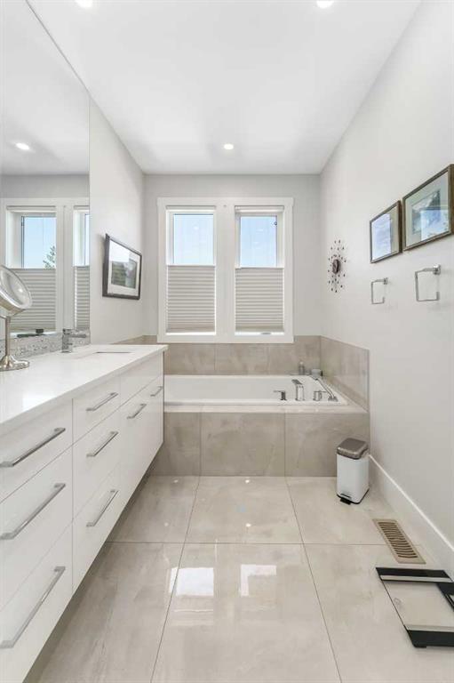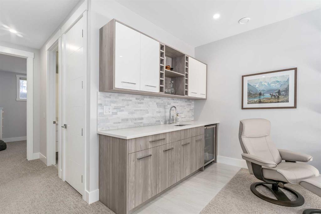 Not all infills are created equal. This modern Killarney residence stands apart with craftsmanship you can see, and construction you can feel. Bathed in natural light through oversized windows and framed by 10’ main-floor ceilings, the home balances warm engineered hardwood with a refined, contemporary palette. From the moment you step inside, the fit and finish telegraph quality: crisp lines, precise millwork, and a floor plan that moves effortlessly from everyday living to elegant entertaining. At the front, a formal dining room sets the tone, three large picture windows, a statement light fixture and room for those long, lively dinners. The heart of the home is an oversized chef’s kitchen that’s both beautiful and hard-working: white and warm wood-grain cabinetry to the bulkhead, gleaming waterfall quartz counters, built-in wall oven, a gas cooktop beneath a sleek stand-alone hood fan, and a Carrara marble herringbone backsplash that wraps the hood for a bespoke, designer finish. The generous island invites coffee catch-ups and weekend prep, while the full upgraded stainless appliance package delivers performance worthy of the space. Anchored by a tiled gas fireplace with custom open shelving, the living room is scaled for comfort and conversation. It flows naturally to the backyard for easy summer living, with over $40k in low maintenance landscaping with concrete walkways, a large patio, and BBQ gas hookup so hosting is as simple as turning a knob. Upstairs, the private retreat continues the theme of understated luxury. The primary suite features a tray ceiling, upgraded blinds, and a walk-in closet fit with custom built-ins. The spa-calibre 5-piece ensuite pampers with a freestanding soaker tub, an oversized glass shower, 24″×24″ tile, in-floor heat, and a steam rough-in already planned into the layout. Two additional bedroom suites are thoughtfully finished—each with true walk-in closets and custom storage (one with a stylish wallpaper feature wall). A proper laundry room, complete with cabinetry, folding counter, and sink—keeps the day-to-day running smoothly. The fully finished basement is made for movie nights and game days. A large rec/media area includes a custom wet bar with sink, wood-grain and white cabinetry, marble tile backsplash, and a wine fridge,an entertainer’s ally. Berber carpet adds warmth underfoot, while in-floor heating keeps the entire level comfortable year-round. A sleek 3-piece bathroom with a floating vanity serves guests with style. And because true quality goes beyond finishes, this level was engineered with approximately six inches of insulation beneath the slab for superior efficiency and comfort. Set on a quiet inner-city street in the heart of Killarney—close to parks, schools, transit, and the best of local cafés and amenities—this home delivers the rare combination of design, durability, and day-to-day livability. If you value details you can feel as much as finishes you can see, you’ll know…this is the one.