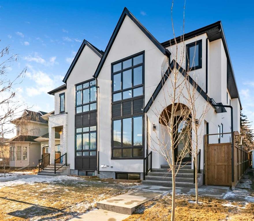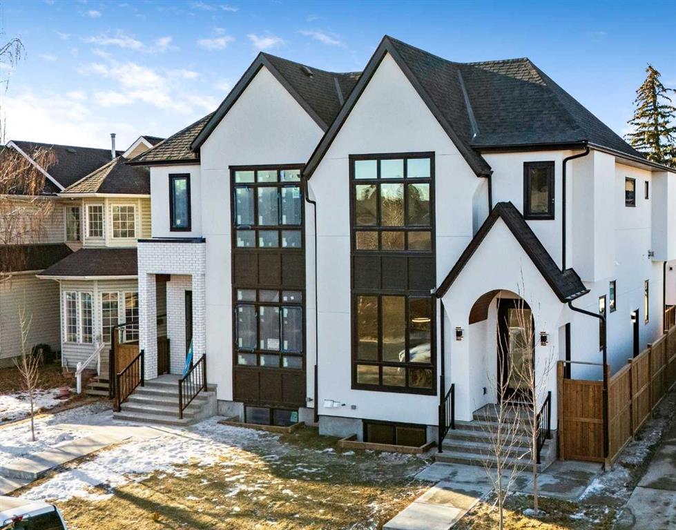 OPEN HOUSE SATURDAY May 2, 2pm-4pm!! Welcome to the lap of luxury in Banff Trail. This beautifully appointed infill is only 270 METER WALK TO BANFF TRAIL C-TRAIN STATION and walking distance to University of Calgary, which makes it an ideal location with its 2 BEDROOM LEGAL BASEMENT SUITE. Have allergies? NO CARPETS THROUGHOUT. The Main floor has 10’ CEILINGS, wide front entrance, a dining area with a feature wall, luxurious kitchen with quartz backsplash, 14′ long island with a magnificent quartz countertop and dual waterfall feature and cabinet doors on both sides (plenty of storage space for all your small kitchen appliances), a show-stopping “COMMERCIAL STYLE” 36′ GAS RANGE, Impressive 48″ WIDE FRIDGE and dual zone BEVERAGE COOLER in the seamlessly situated coffee bar that is open-to-above with morning sun lighting it up with sunshine. The Living room has an opulent 50′ GAS FIREPLACE with built-ins and sliding patio doors that opens to a maintenance-free, composite plank party deck. The mud room leads to the conveniently located powder room. The highlight of the top floor is the Massive Primary bedroom with vaulted ceiling, spacious WALK-IN HIS & HER closets and a spa-like ensuite which will have a tiled STEAM SHOWER, double vanity, and a free-standing tub. The top floor is completed with a laundry room with sink, two bedrooms, one which has “cheater-suite” access to the common 4-piece bathroom. Every main and top floor bathroom has electric in-floor heating with their own thermostat, 200 AMP SERVICE TO HOUSE ensures there is enough power for house and a legal basement suite. The BASEMENT HAS A SEPARATE SIDE ENTRANCE, access to the furnace/mechanical room is in the common area so basement tenants do not need to be bothered/notified if you have to access the mechanicals. The basement ceiling has sound reduction features in the ceiling, hookups for a private laundry, kitchen and living room (with fireplace) and IN-FLOOR HEATING. Other features include GFCI OUTLETS BEHIND EVERY TOILET (required for heated bidets) and IN-FLOOR HEATING in EVERY WASHROOM, 200 AMP service in home, HEATED GARAGE WITH 200 AMP SERVICE (also insulated, drywalled and painted) with an EV CHARGING RECEPTACLE suitable to connect a Level 2 charging station, and a sunny SOUTHWEST FACING BACKYARD. TRIPLE PANE GLASS WINDOWS and DOORS throughout house (except front door and sliding patio door due to weight) with extra sound-reduction measures in the party wall ensures a quiet and serene atmosphere in the home. The property s situated on a lovely street full of manicured lawns, infills, and renovated original homes and just a SHORT WALK TO BANFF TRAIL and LIONS PARK C-TRAIN STATIONS, UNIVERSITY OF CALGARY, and community K-12 schools. **PHOTOS ARE FROM A SIMILAR SPEC HOME THAT IS COMPLETED SO THERE IS SOME DIFFERENCES(including Paint, floor/wall/fireplace tile, colors, quartz appearance, Island cabinet color, hardwood and LVP finish, fireplaces, lighting selection).**