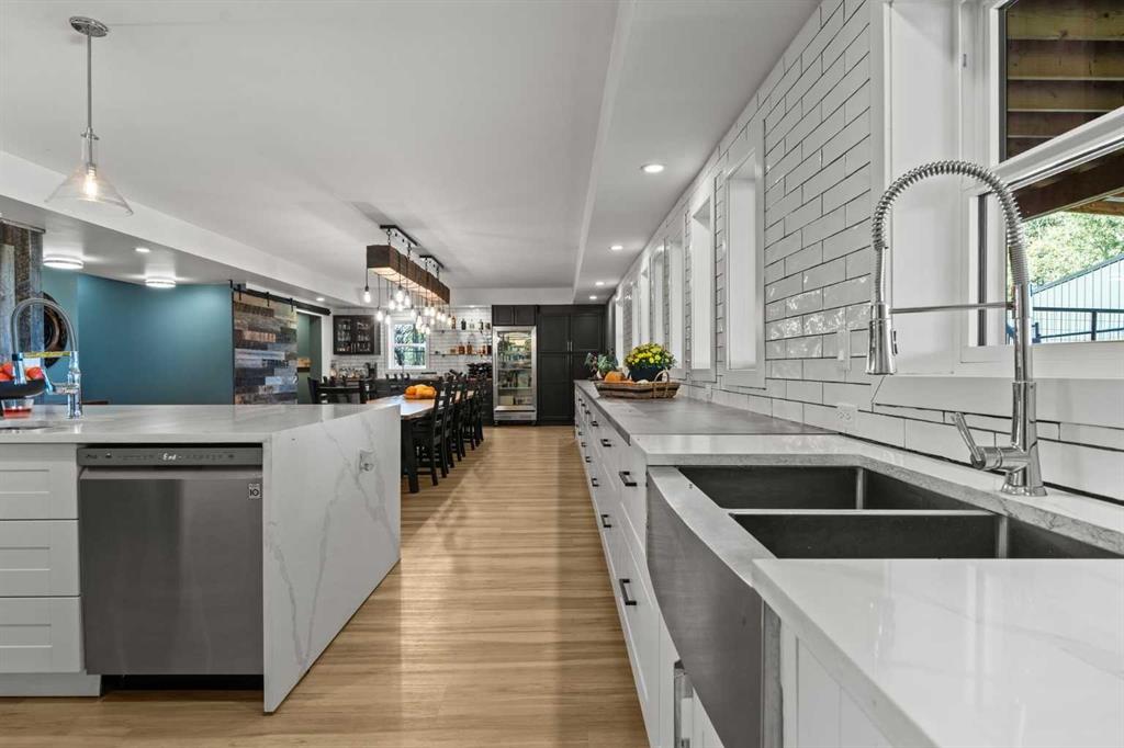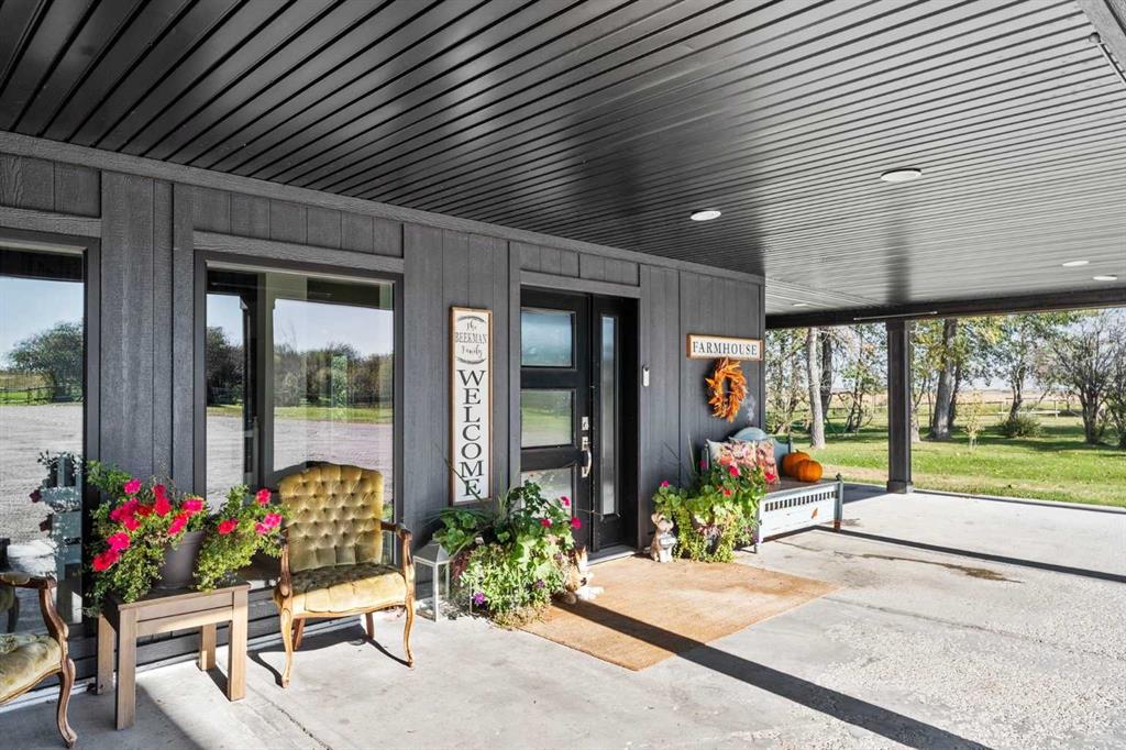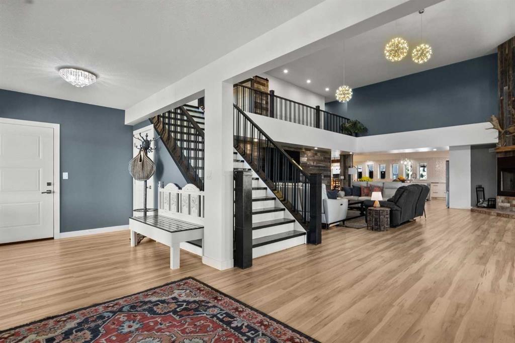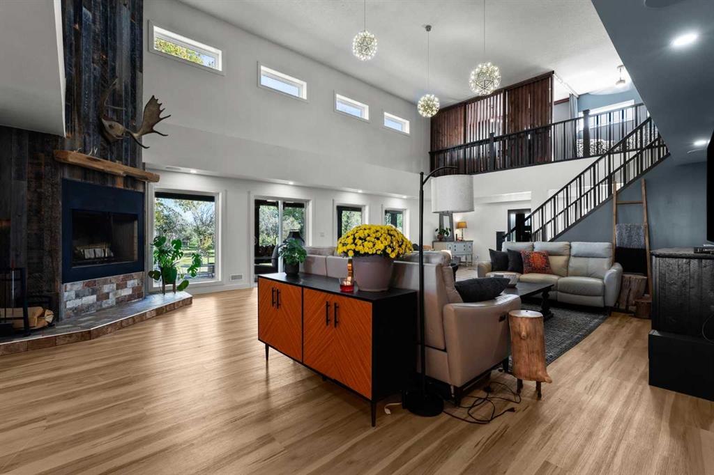 YOUR DREAM ESTATE AWAITS!! Nestled on 13+- acres of picturesque Alberta landscape, this extraordinary property blends seamlessly offering luxury living & unparalleled commercial potential with Rural Business Zoning. Voted TOP 10 FOR OUTDOOR WEDDING VENUES IN AVENUE MAGAZINE IN 2025. The PRIMARY RESIDENCE offers over 4400 sq ft of luxury custom designed living and a SECOND RESIDENCE is a completely renovated 3 bed/2 bath mobile. Soaring ceilings showcase the expansive use of windows and the stunning open to above floor plan. A family centric Great Room boasts an open ended design to capture and maximize your preferred seating arrangements. Masterfully created is a showstopping kitchen and dining area with gleaming full height cabinetry overlaid with marbled quartz and a massive island that features a waterfall design beckoning the finest culinary experts and delivers several areas for preparation and display. For the connoisseur there is a separate coffee station equipped with a sink & dishwasher & full sized pop/water cooler. Bosch appliances include a gas stove, built in microwave and oven, water/ice refrigerator, hood fan and a 2nd dishwasher. A private media room, gym & two pc bath complete the main floor. Ascending to the upper floor your eyes scan and appreciate the vastness of the size of this home and stunning open to below views. Elegantly appointed the primary retreat features a spa ensuite bath with a fully tiled walk in shower, deep jetted tub, double sinks in the quartz topped vanity and a private water closet. The walk in closet includes it’s own laundry mates. A massive outdoor upper deck offers panoramic views. Two oversized secondary bedrooms include private access to a five pc bath and separate laundry room. Completing the upper floor is a comfy bonus room and an office. The main house can double as a private retreat or an extension of the attached event venue. The second dwelling is ideal for guest accommodations, bed and breakfast, a manager’s quarters or rental income through a yearly lease or Airbnb opportunities. Combining luxury and privacy coupled with a premier location, this package delivers extraordinary business potential. Boasting a 76’10” x 25’8″ WSP constructed wedding and event building with modern lighting, polished floors to dance the night away, and stylish decor, 3 washrooms, fully licensed bar area, COMMERCIAL KITCHEN, space that allows for events to accommodate 250 guests. Romantic and beautifully orchestrated outdoor areas provide natural spaces for intimate gatherings or larger events including corporate events, reunions, retreats and weddings. Whether you are an entrepreneur, investor, or are looking for your new forever home, this fabulous TURNKEY ESTATE & EVENT VENUE will meet your highest expectations & deliver a thriving business opportunity too. ADDITIONAL 74 ACRES FOR SALE ZONED RB ON PAVEMENT 5 MINUTES TO STRATHMORE.