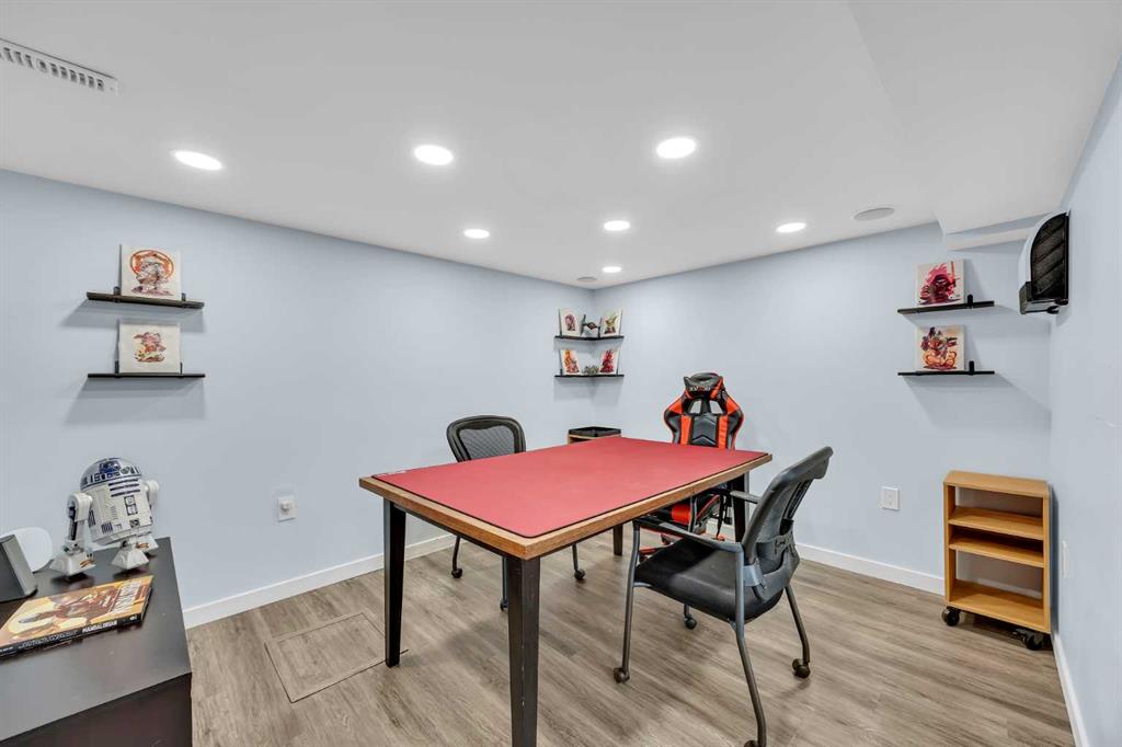 Welcome to the highly sought-after community of Skyview Ranch! This former showhome built by Shane Homes has been well cared for. With a total of 4 bedrooms, 3.5 bathrooms and over 2300 sq ft of living space that includes a fully developed basement, there’s plenty of space to grow. A cozy, bright entryway welcomes you to this home that can also serve as an office, reading or music room. The open-concept main floor features an abundance of natural light and a large kitchen with a walk-in pantry, stainless steel appliances, lots of cabinet and counter space, an island with seating, and also lots of space for a dining table. The living room has a built-in wall unit and a corner gas fireplace. Rounding out the main floor, there is a powder room and a second entrance in the rear to a double detached garage. Moving upstairs, the primary bedroom can easily fit a king size bed and features a relaxing ensuite with separate shower and soaking tub, walk-in closet with built-in organizers. Two additional bedrooms are generous in size with one bedroom featuring a multifunctional murphy bed and desk. Laundry is conveniently located on the top floor along with another full bathroom – a perfect setup for a family. The fully finished basement has spacious entertainment/hosting area, full bathroom, and a gym that could also be easily converted to a bedroom by adding a door. Don’t forget to look for the hidden door that opens to tons of extra storage space! The low maintenance backyard has a double garage and room for RV parking. Recent updates on this home include vinyl siding (2025), a new roof (2026), a new dishwasher, microwave hood fan, washer/dryer, water tank, and furnace (serviced annually and warranty until 2030). This home is move-in ready and close to many amenities – playgrounds, schools, walking/bike paths, public transit, soccer fields, shopping, and major roads. Check out the link for the 3D tour, but book your tour before it’s too late!