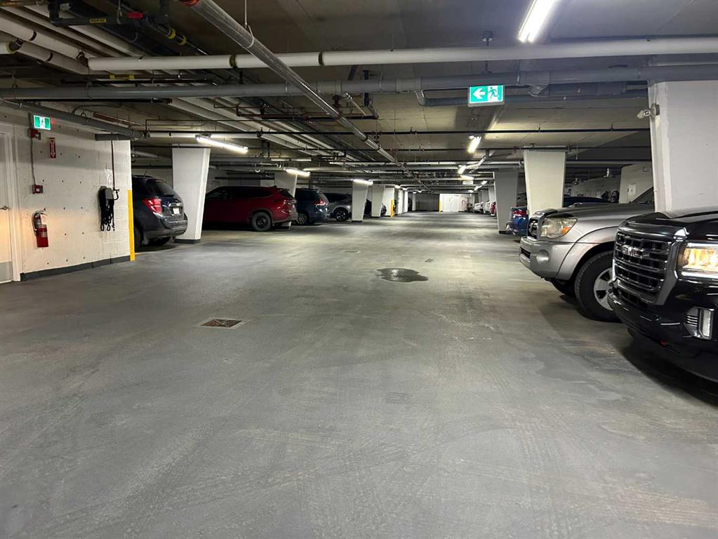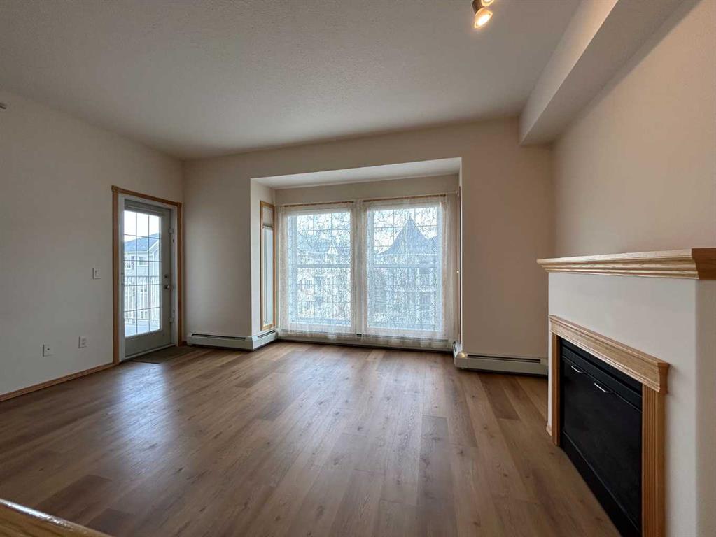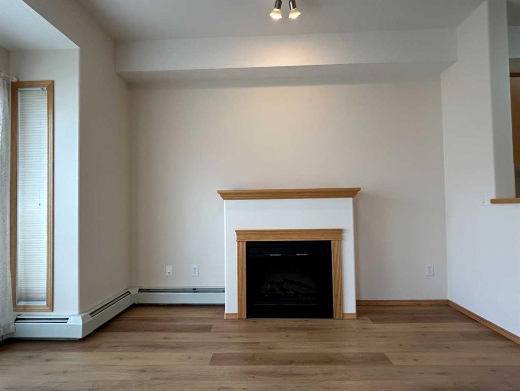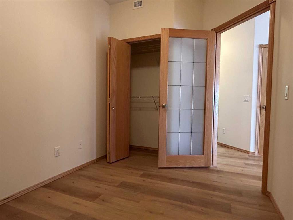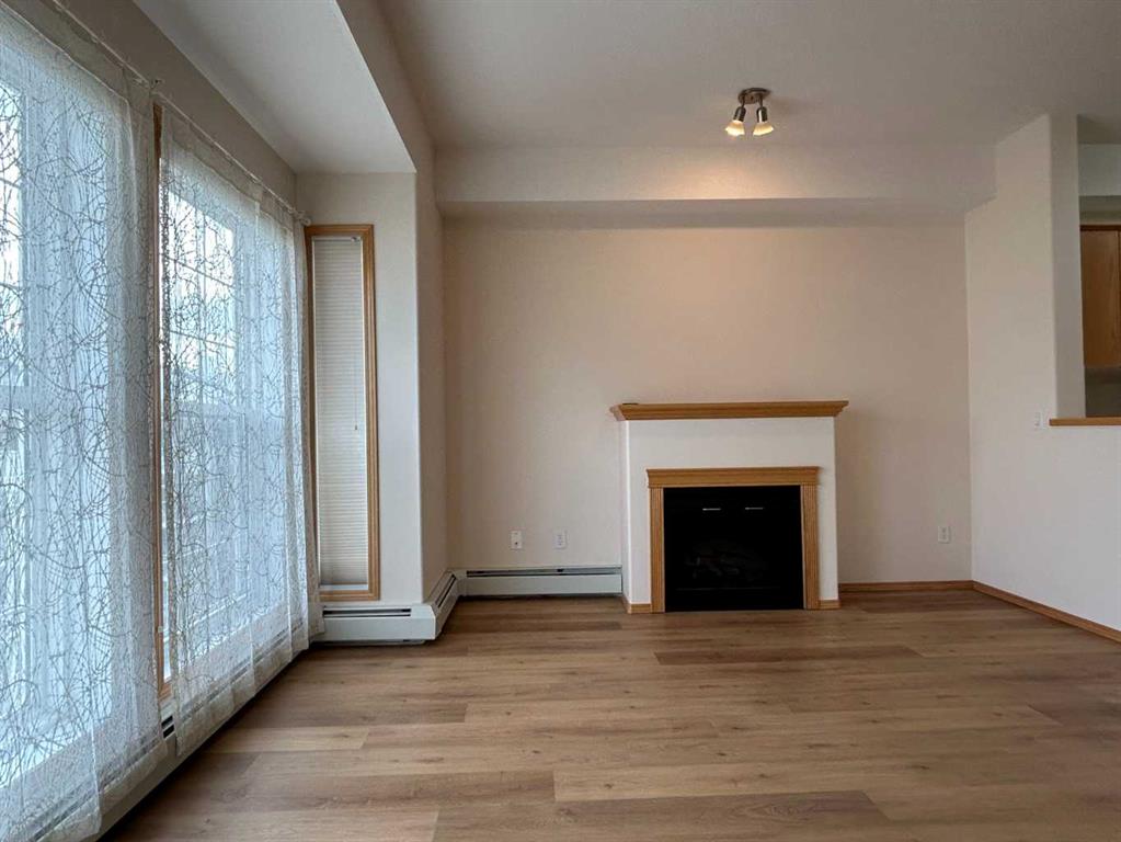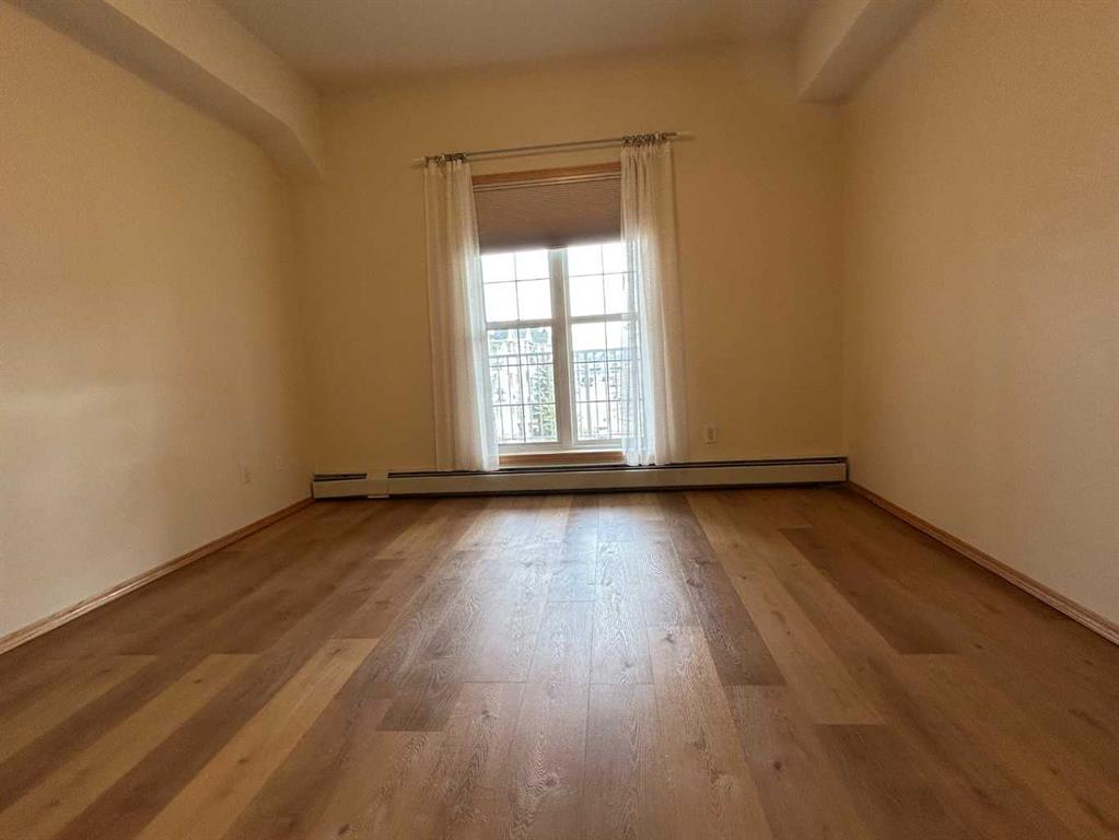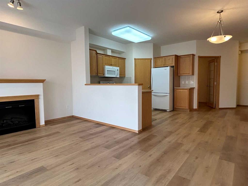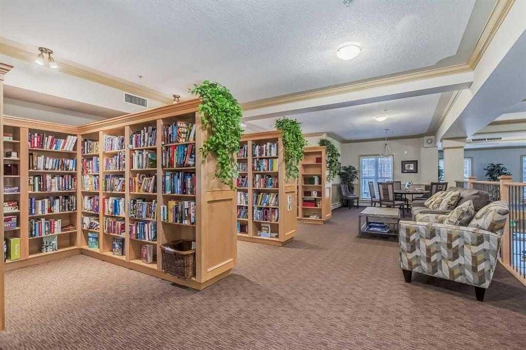Welcome to “The Country Estates on the Cove” – Resort like Adult living at its best. This sunny – top floor with East exposure apartment has undergone substantial upgrades and features newer high end LVP flooring throughout, newer fridge, washer and dryer and kitchen countertops. This beautiful 1 bedroom + den (with large closet) unit is fully AIR CONDITIONED and overlooks THE Green Belt from a huge 12×8 covered balcony. It comes with 9ft ceilings, walk-in closet in the master bedroom, 4 pc bathroom and cozy fireplace in the living room. Open concept large kitchen with walk-in pantry – opens to a dining area and spacious living room. In-suite laundry room compliments this wonderful apartment. Included also is 1 titled heated underground parking stall with large storage. Amenities include a heated saltwater indoor pool, hot tub, steam room, craft room, exercise room, pool tables, movie theatre, library, party room, bowling alley, woodworking shop and car wash bay. Those located in Building 1000 can be easily accessed even during the coldest winter months through heated underground walkway on Level P2. This amazing complex also offers guest suites for your visitors staying overnight. There is ample visitor parking space. Condo fees include all utilities (electrical, heat and water). Minutes away from shopping, transit, Vivo Recreation Centre, Deerfoot Trail and the Airport.