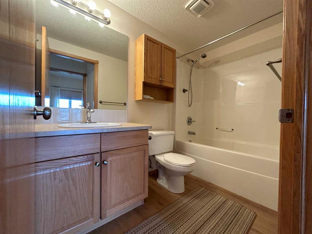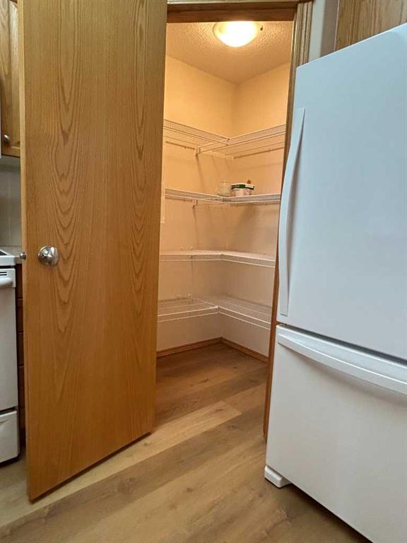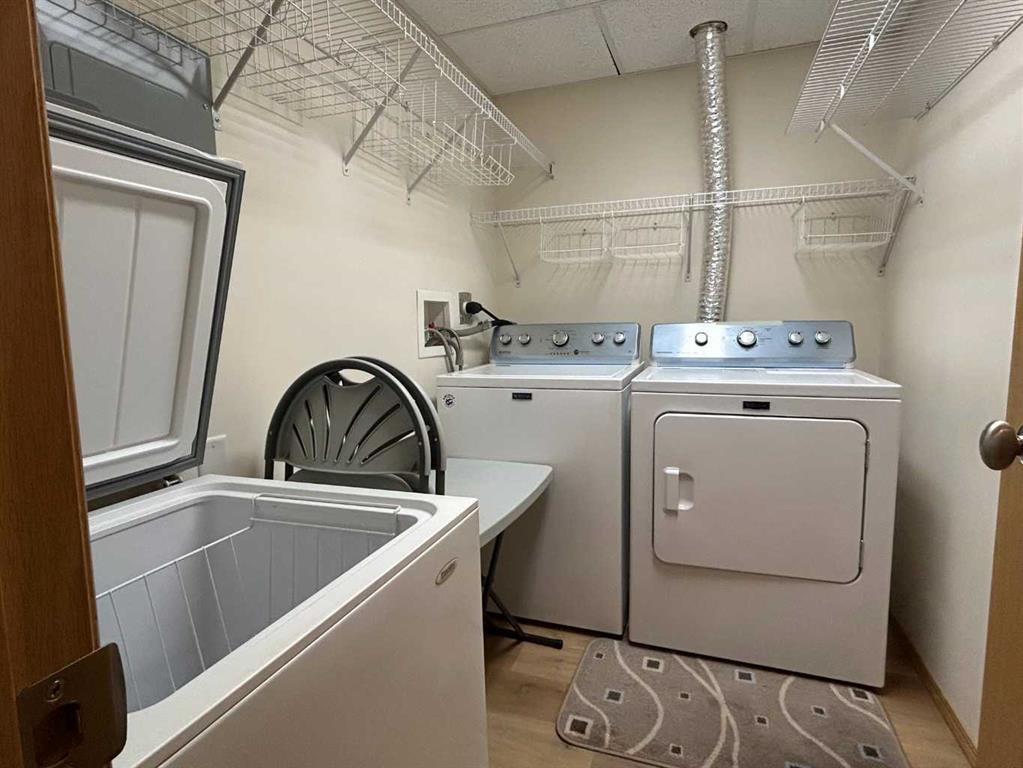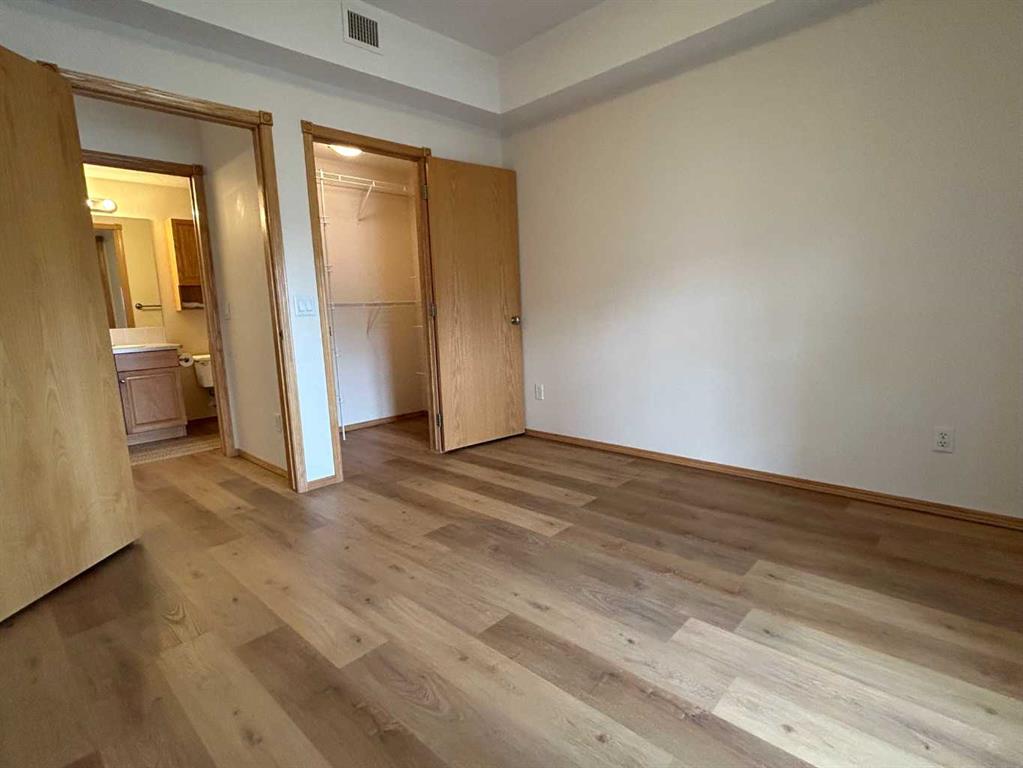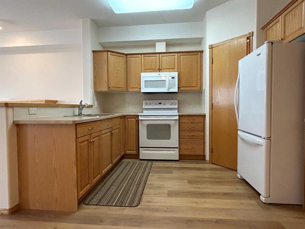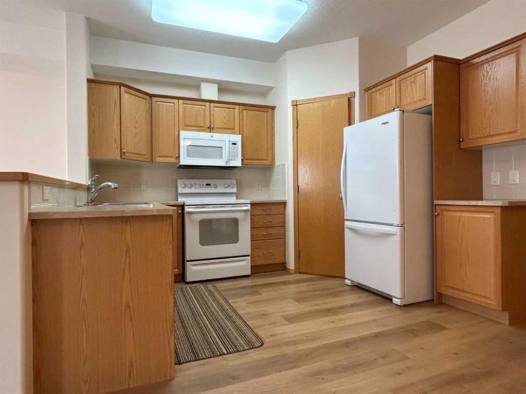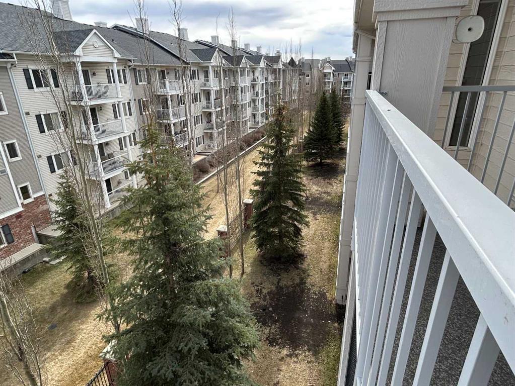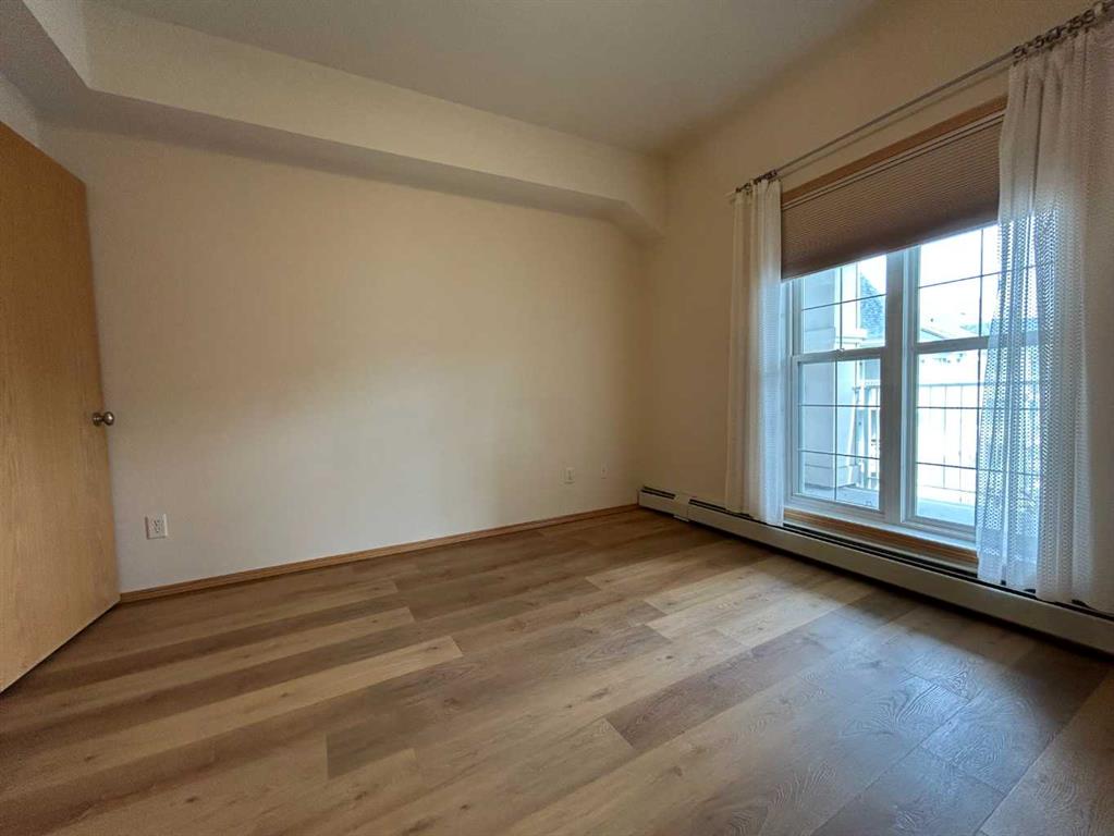 Welcome to “The Country Estates on the Cove” – Resort like Adult living at its best. This sunny – top floor with East exposure apartment has undergone substantial upgrades and features newer high end LVP flooring throughout, newer fridge, washer and dryer and kitchen countertops. This beautiful 1 bedroom + den (with large closet) unit is fully AIR CONDITIONED and overlooks THE Green Belt from a huge 12×8 covered balcony. It comes with 9ft ceilings, walk-in closet in the master bedroom, 4 pc bathroom and cozy fireplace in the living room. Open concept large kitchen with walk-in pantry – opens to a dining area and spacious living room. In-suite laundry room compliments this wonderful apartment. Included also is 1 titled heated underground parking stall with large storage. Amenities include a heated saltwater indoor pool, hot tub, steam room, craft room, exercise room, pool tables, movie theatre, library, party room, bowling alley, woodworking shop and car wash bay. Those located in Building 1000 can be easily accessed even during the coldest winter months through heated underground walkway on Level P2. This amazing complex also offers guest suites for your visitors staying overnight. There is ample visitor parking space. Condo fees include all utilities (electrical, heat and water). Minutes away from shopping, transit, Vivo Recreation Centre, Deerfoot Trail and the Airport.