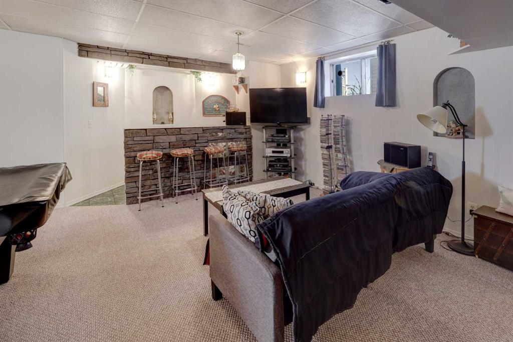 The finished basement is built for fun, with a large recreation area, pool table, and dry bar—plus a rough-in for a future bathroom.