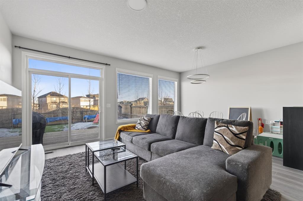 Welcome to 247 Belmont Heath SW – a beautifully kept move-in ready home with an attached garage, backing onto a green space and walking path! Featuring 2 living areas, 4 bedrooms, 3.5 bathrooms, a flex space and over 2,000 square feet of thoughtfully designed living space, this home is perfect for a family with plenty of space to grow! Resilient vinyl plank flooring flows throughout the main living area – perfect for children and pets. The timeless kitchen features grey shaker cabinets, a large central island with additional seating, quartz countertops and a suite of stainless steel appliances including a chimney hood fan and built-in microwave. The kitchen opens to both the living and dining areas, making it the perfect space to entertain. The expansive great room, spanning over 16’x13′ is just off of the dining area – with a wall of windows and patio doors leading to the backyard and providing endless natural light all year long. The main level is complete with a 2 pc powder room. The upper level has a central den/flex space that divides the primary suite from secondary bedrooms for optimal privacy and offers the perfect home office space or children’s play area. The large primary suite is complete with a 4 pc ensuite with dual sinks and a walk-in shower, as well as a large walk-in closet. Two more bedrooms, a full bathroom and oversized closet provide ample storage space and make this the perfect family home. The professionally developed lower level has a large living area, a fourth bedroom and a full bathroom – all in addition to the laundry space and two storage rooms. Completing the home is an insulated and drywalled attached garage that will keep your vehicle and valuables safe all year long. The beautiful backyard has been professionally landscaping with low-maintenance in mind, featuring a large deck that overlooks the rock and turf (artificial grass) backyard. The backyard opens to a green space and walking path – maximizing privacy and openness to be enjoyed all summer long. If the summer heat is too much, the central A/C will keep you cool all summer long. With quick access to nearby amenities and major commuting routes, this is the perfect detached family home in the new community of Belmont! *Virtual tour available upon request.