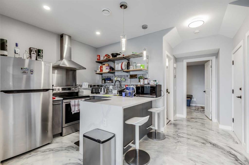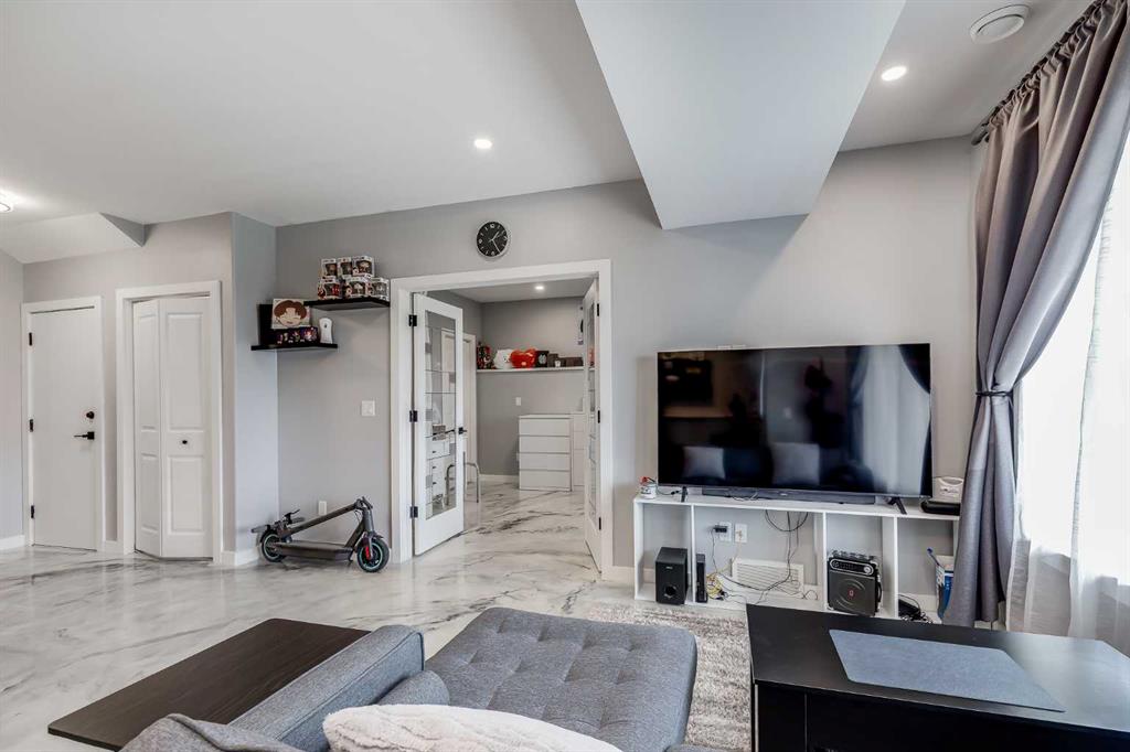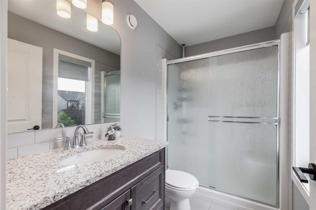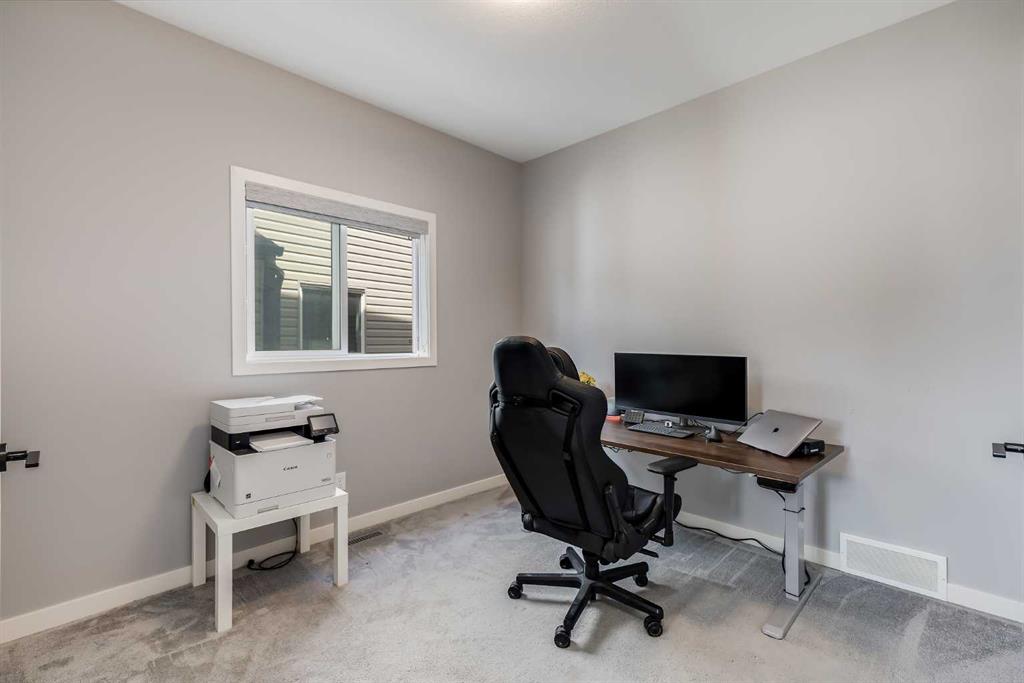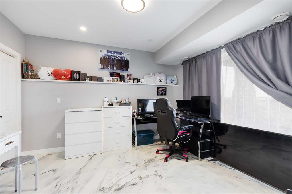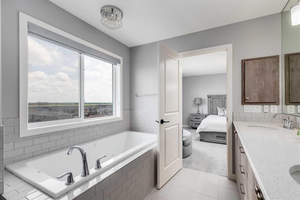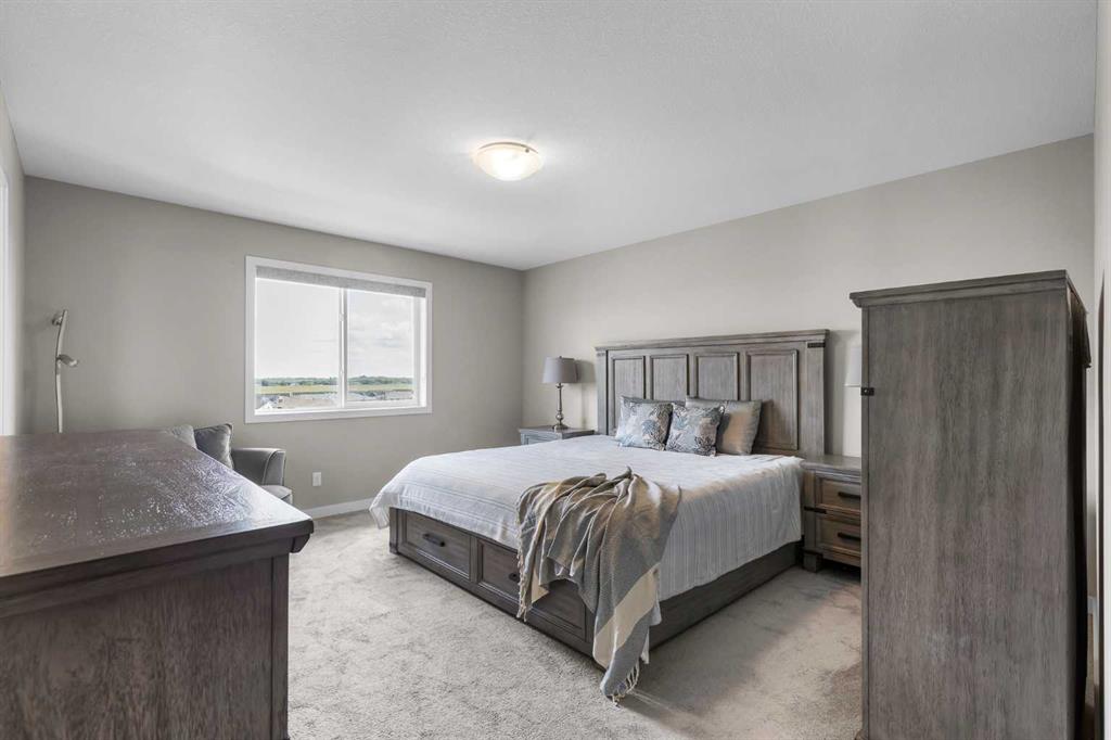 Beautifully appointed & ideally located, this 6-bedroom walkout home with a LEGAL suite, dream garage & premium upgrades delivers upscale comfort, functional design & long-term versatility. Backing onto a scenic pathway leading to Northcott Prairie School & a peaceful pond, this home blends family-friendly convenience with elevated style. Smart lights & switches are installed throughout, with cameras & door sensors on all entry points. Wide plank flooring, curved staircase & railings, bullnose corners, a soft neutral palette & expansive windows create a warm, welcoming atmosphere. The open layout encourages connection, from quiet evenings by the gas fireplace to lively gatherings in the oversized dining area. The modern kitchen inspires culinary creativity with full-height cabinetry, glass backsplash, gas cooktop, built-in wall oven, under-cabinet lighting rough-in & a statement island for casual meals. A walk-through butler’s pantry adds efficiency with a second gas stove, prep sink & extra storage. Two spotlight-lit alcoves add stylish display options. Step outside to the full-width upper deck with glass railings, gas & water lines & take in tranquil views. A private den provides a quiet space for work or study. Upstairs, a spacious bonus room invites family downtime, while four large bedrooms ensure room for all. The elegant primary retreat includes a walk-in closet & spa-inspired ensuite with dual sinks, soaker tub & glass shower. A secondary bedroom with private 3-pc ensuite is perfect for guests or teens, while a shared 4-pc bath & upper laundry add daily ease. The finished walkout level adds incredible flexibility with a bright, open-concept legal suite featuring two bedrooms, a full kitchen with gas rough-in, professional metallic epoxy floors, under-cabinet lighting rough-in, separate laundry, 3-pc bath & private entry—ideal for multi-gen living or long-term guests. Outside, the yard features a covered lower patio with rough-in for a hot tub, both gas & water lines, garden beds & direct access to the pathway network. The charming front porch boosts curb appeal & makes a perfect morning coffee spot. The garage is a standout with gas line for future heater, hexagon LED lighting, pro-grade floor tiles, overhead storage & handy man door. Just a 5-min walk to school & 18-min stroll to shops, with easy access to QEII, CrossIron Mills & Calgary—this is a rare chance to live beautifully in a prime Airdrie location.
