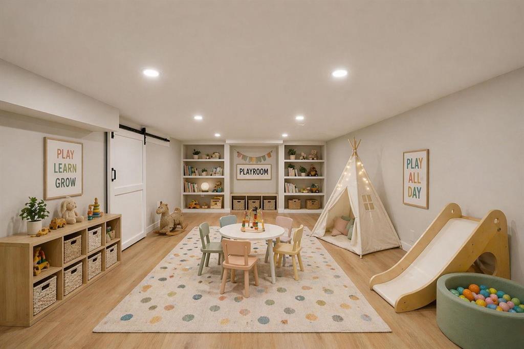 With five bedrooms and four full bathrooms, the layout is exceptionally well suited for families of all sizes. The upper level offers three bedrooms, including a generous primary retreat complete with an ensuite and dual closets, along with two additional bedrooms and a full bathroom, all enjoying peaceful park views. A fourth bedroom on the main floor, paired with a 3 piece bath and laundry, creates the perfect setup for guests or multi generational living. The fully developed lower level adds even more versatility, featuring a large fifth bedroom, an additional full bathroom, and over 700 sq ft of recreation or family space.