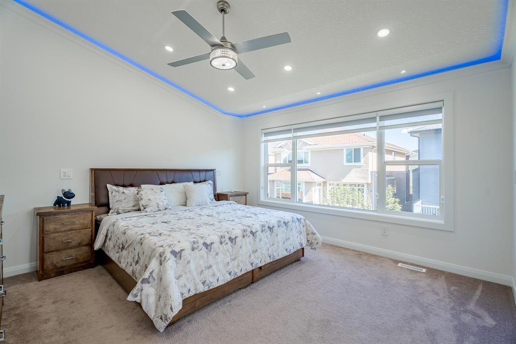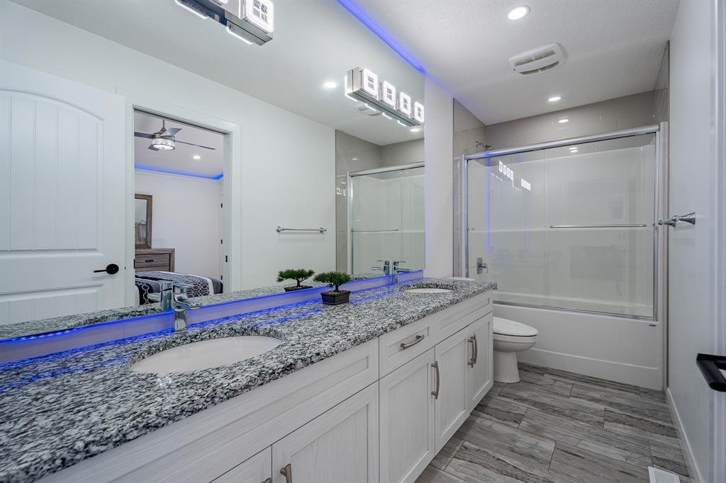 Upstairs, TWO Master Bedrooms include 5-piece ensuite bathrooms featuring two vanities with plenty of storage, soaking/jet tub, and separate glass shower. All 4 bedrooms are equipped with walk-in-closets. The third room has Cheater Five-piece Ensuite that has door into the hallway and it serves as the main bathroom for fourth bedroom as well. The upper level laundry room adds convenience to your daily routine, and big bonus area offers additional space for relaxation or entertainment. A full basement with separate entrance has a huge rec area, kitchen, two bedrooms, and two four-piece bathrooms and a spacious theater. A big deck and backyard await you outside during the warm summer months! The front connected garage and driveway can accommodate seven automobiles at all times! Book a showing at this stunning home today!