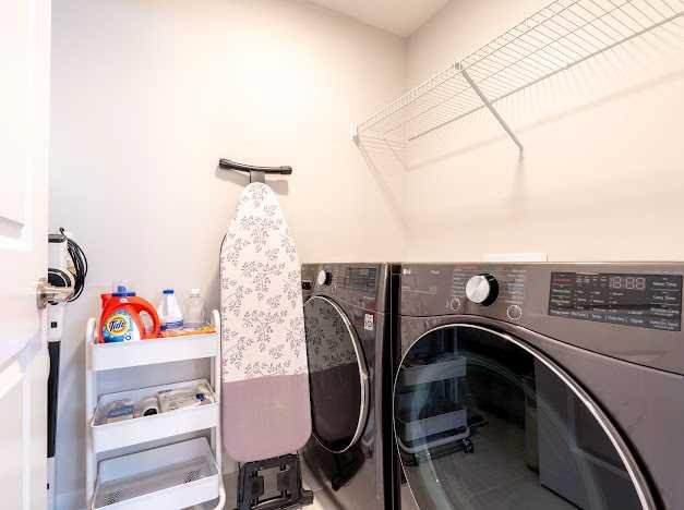 Upstairs, the primary suite features a walk-in closet, dual vanities, a spa-style tiled shower, and private balcony access. Two additional bedrooms, a bonus room, and upper-floor laundry complete the level. Throughout, elegant neutral finishes, crystal lighting, and dual-shade blinds bring a touch of luxury.