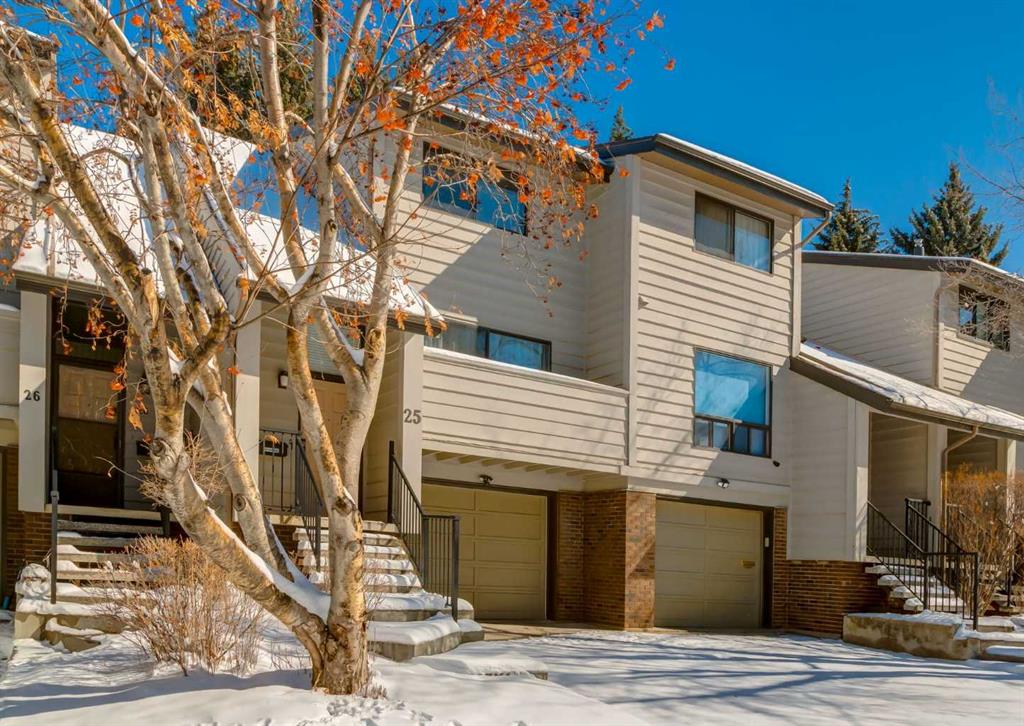 Tucked into the highly sought after community of Varsity, this townhome in Varsity Park West offers a rare blend of privacy and location, surrounded by mature trees and backing onto one of the complex’s peaceful green spaces. Just steps from Market Mall, the Bow River pathways, and minutes to Silver Springs Golf Course, this setting truly stands out. This townhome has many timeless and thoughtful details including custom built shelving and storage throughout the home. The bright and functional layout features a spacious living room with a charming wood burning fireplace flowing into the dining area. The updated white kitchen with butcher block countertops has a functional moveable island. Outside, the home continues to impress with both front and back outdoor living spaces including a private fenced backyard patio where you can relax in a quiet, treed setting. Upstairs offers 3 bedrooms and a full bathroom including a primary suite with its own 2 pc ensuite and dual closets. The developed basement adds a flex/den/recreation space, laundry, storage, and direct access to the oversized single attached garage. Located close to the University of Calgary, hospitals, LRT, schools, and easy access to downtown, this is an incredible opportunity to own in one of Northwest Calgary’s most desirable and established communities. Click on the video in the media link and book your private showing to view this exceptional opportunity.