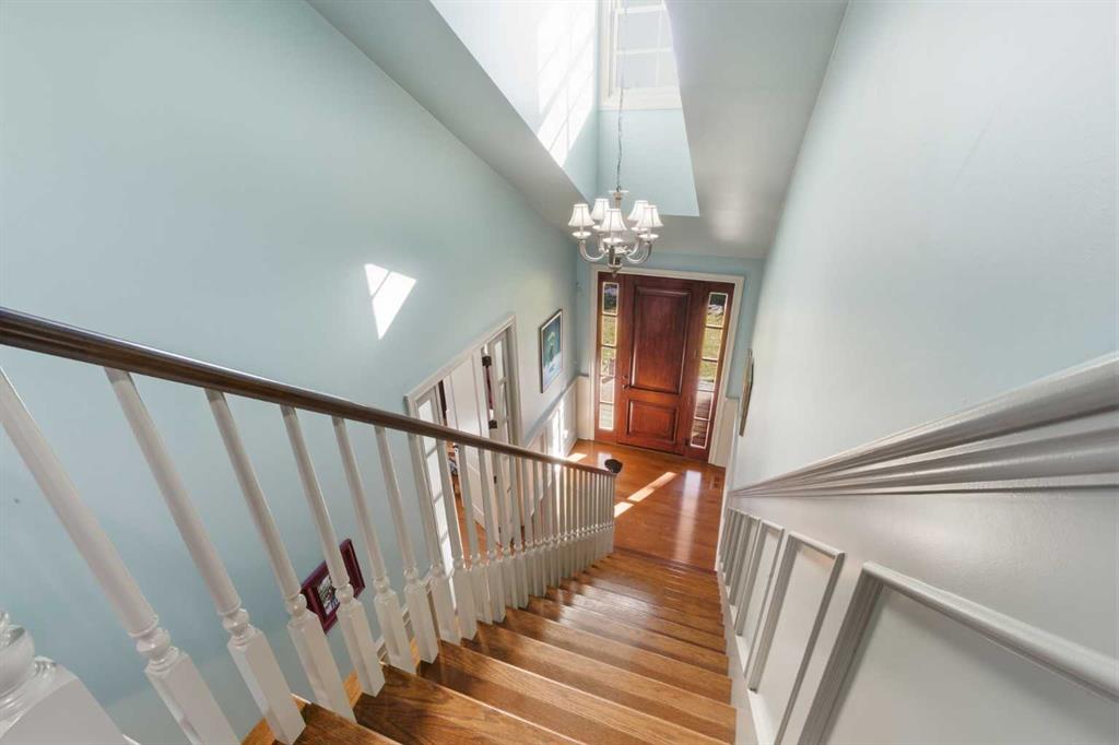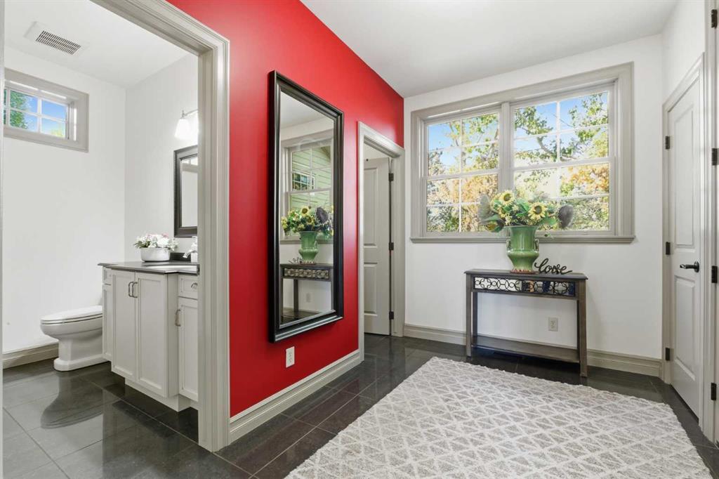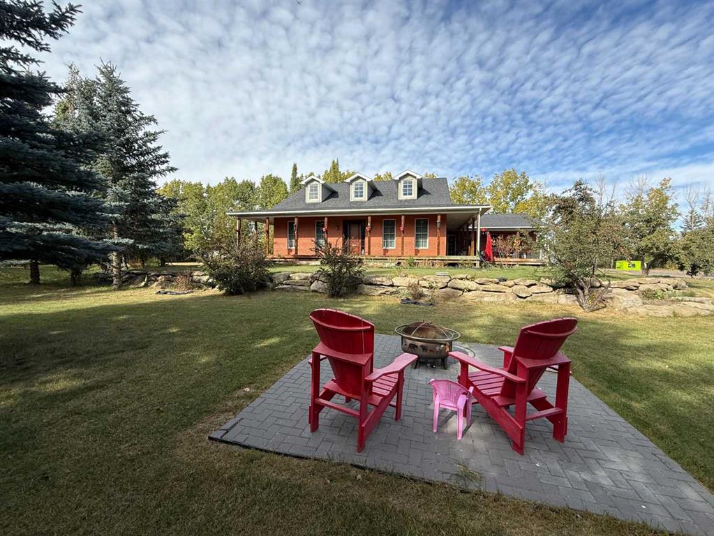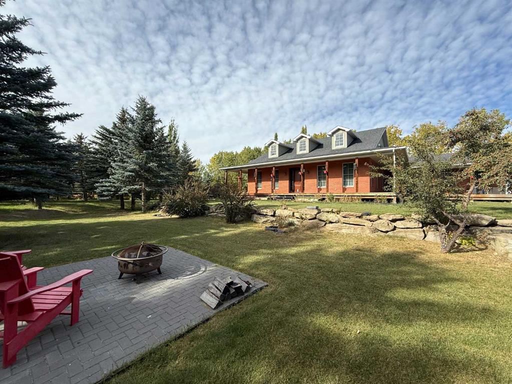 Properties of this caliber rarely come to market. Once part of Rural Rocky View County, this residence now offers the perfect blend of country tranquility and urban convenience—you can walk for coffee yet return home to your own secluded, tree-lined retreat behind an automatic gated entry. The timeless brick one-and-a-half-storey home showcases over 5,050 square feet of refined living space, complemented by a heated oversized double attached garage and an additional heated detached double garage. The main floor spans nearly 2,200 square feet with rich hardwood flooring, classic wainscoting, and an elegant hardwood staircase. The stunning two-toned chef’s kitchen features a butcher-block island, cabinet-paneled refrigerator, gas range with pot filler, and generous windows framing serene treed views. Step outside to the rear deck with a custom gazebo and windscreens—ideal for outdoor dining and relaxation. Every window opens, and each exterior door is equipped with custom Phantom screens, welcoming a natural breeze throughout. The adjacent formal dining room offers the perfect setting for entertaining, while the main-floor laundry with sink adds practicality. The main-floor primary suite is a luxurious retreat, highlighted by vaulted ceilings, direct access to the wraparound teak veranda, and a spa-inspired ensuite with dual sinks, standalone ultra-air tub, steam shower, and heated floors. A second bedroom (or flexible living space) on the main floor boasts vaulted ceilings, abundant natural light, and a cozy gas fireplace. Upstairs, two additional large bedrooms each include walk-in closets and share a charming Jack & Jill five-piece bathroom. The fully developed lower level features a custom wardrobe area, theatre room with projector, fitness space, expansive recreation room, fifth bedroom, secondary laundry, and direct stair access to the garage. The utility room is meticulously designed with hydronic heating, air conditioning, in-floor heating throughout, additional water storage, and ample steel-shelved storage. Outside, enjoy an invisible pet fence, greenhouse, raised garden boxes, and mature trees that create a sense of total seclusion. Experience rural living within minutes of city amenities—this extraordinary Chestermere acreage offers unmatched privacy, comfort, and elegance.