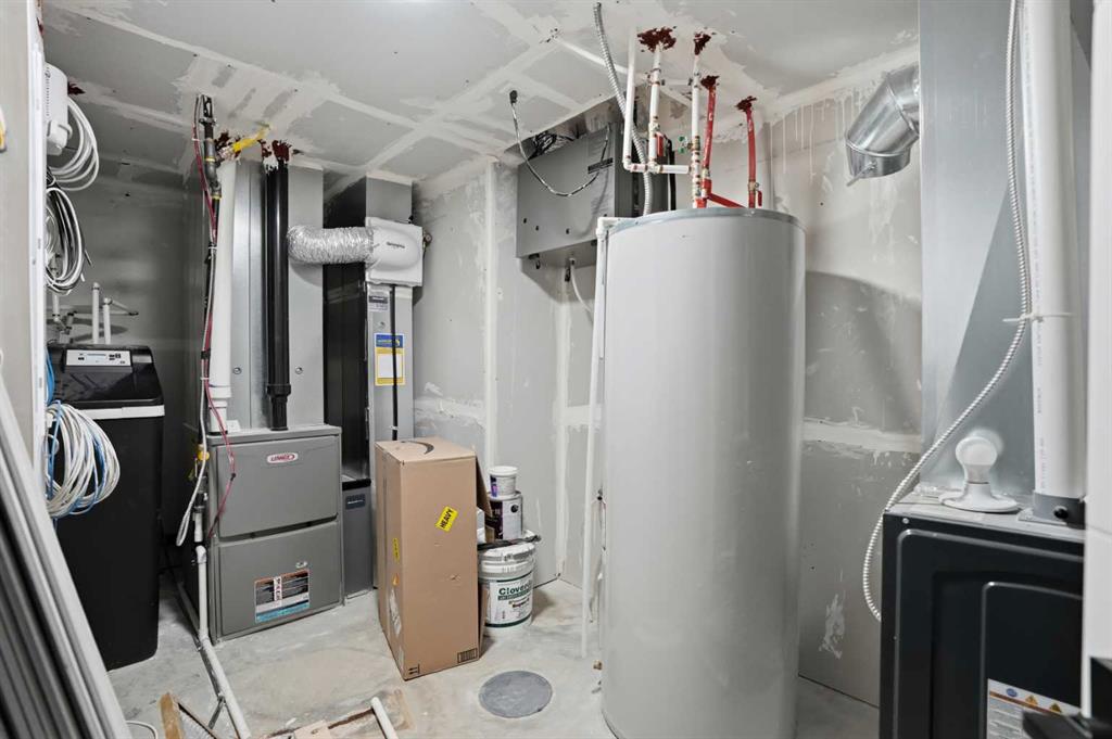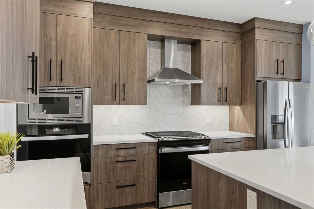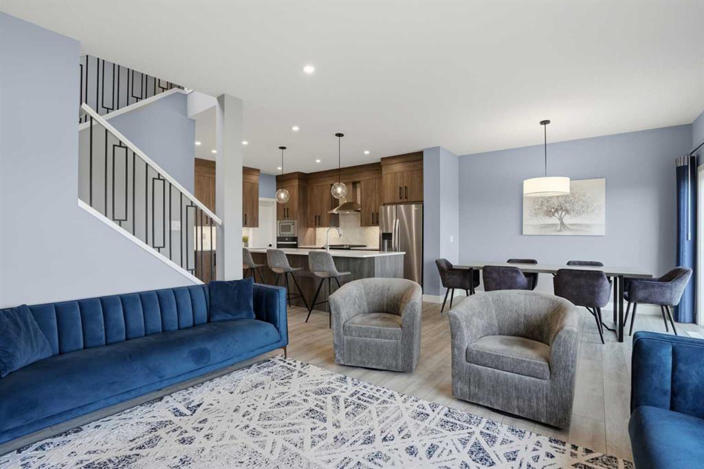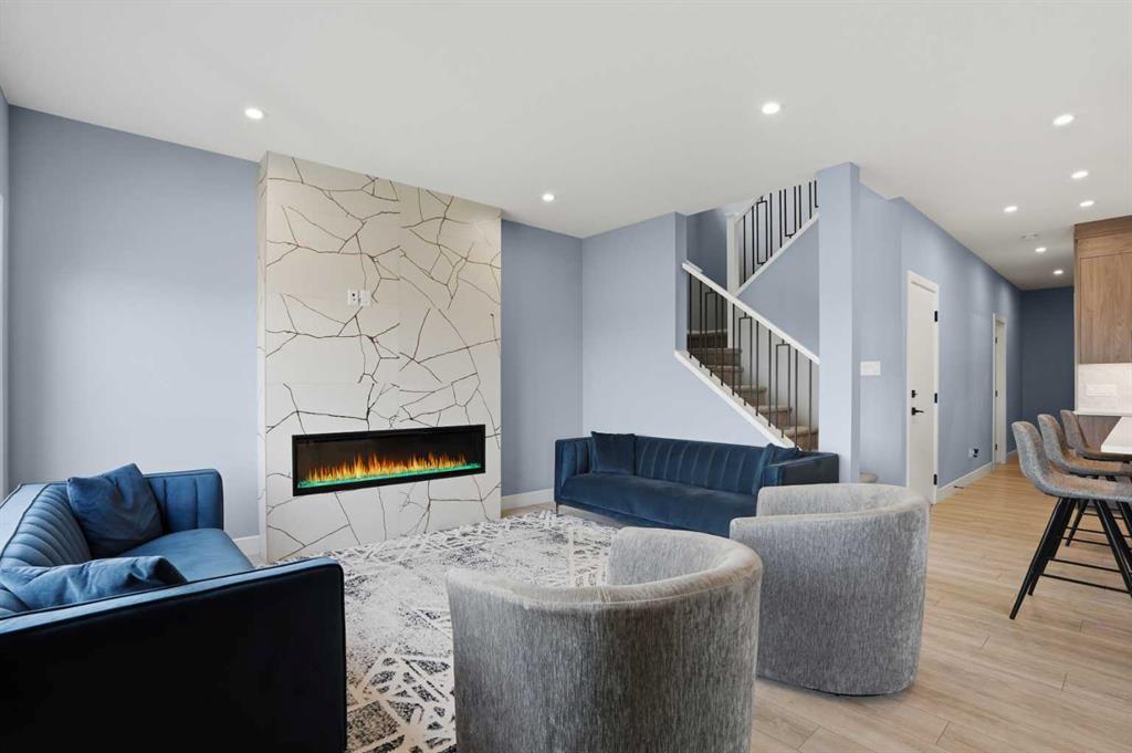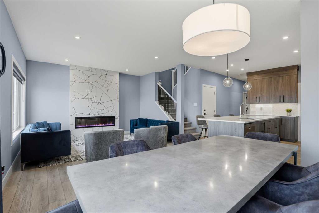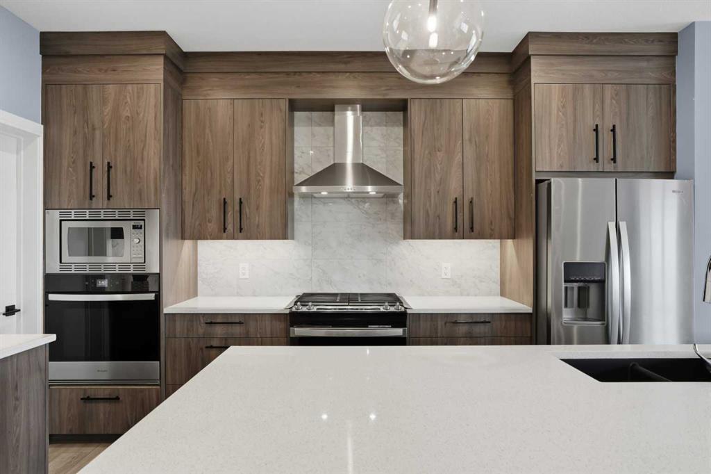 Welcome to your stunning 2-storey family home in Walden, perfectly positioned backing onto greenspace and walking paths—no neighbours behind! The main level features an open floor plan filled with natural light, including a chef’s kitchen with quartz countertops, stainless steel appliances, gas stove, full-height cabinetry, and an extended island with bar seating. The kitchen connects directly to the pantry for great dry goods access while cooking. The dining area opens to the rear deck with a privacy screen and built-in BBQ gas line, perfect for entertaining. The living room centers around an elegant electric fireplace with a floor-to-ceiling stone feature wall. Completing the main level is a bedroom with a private 3pc ensuite and a 2pc powder room for guests.