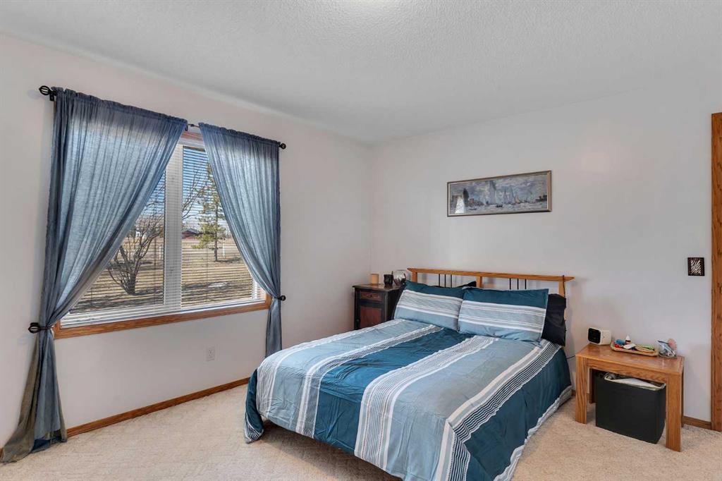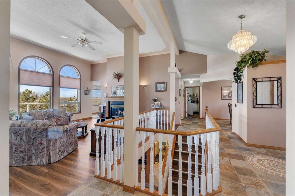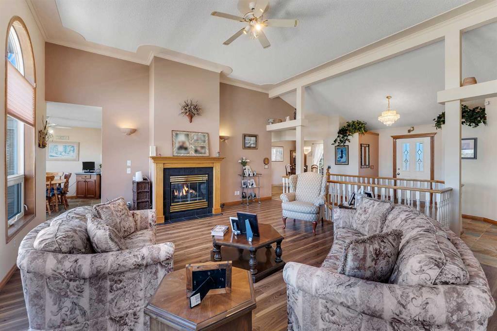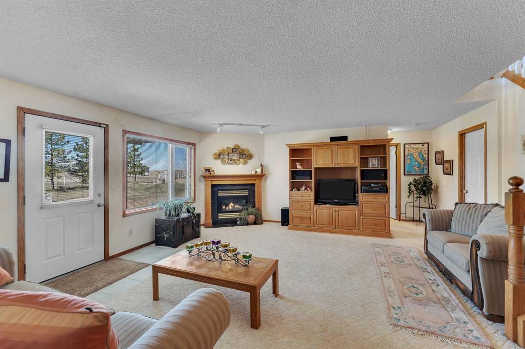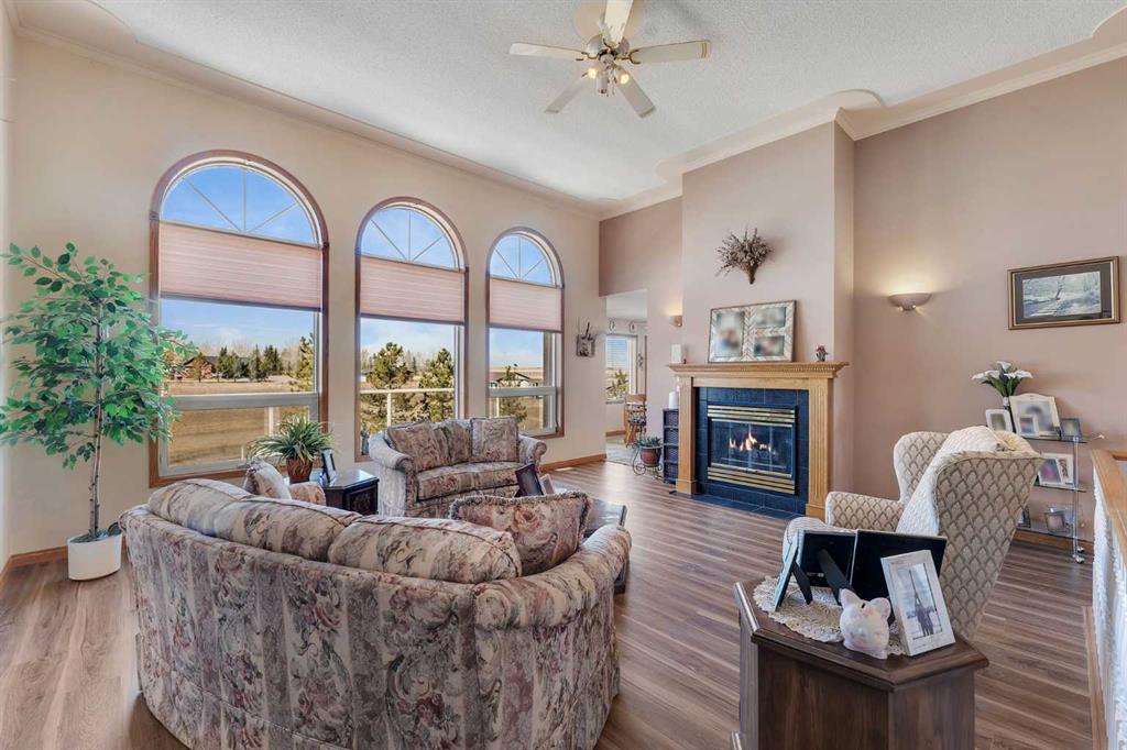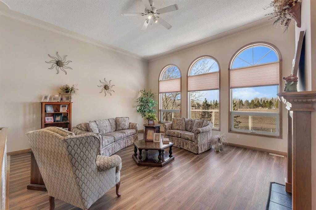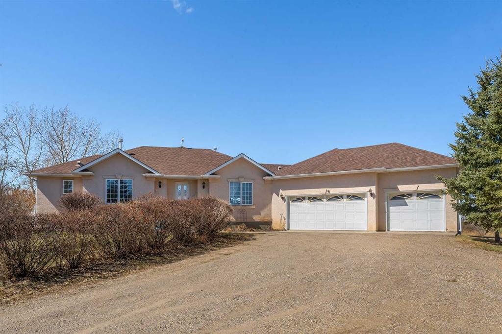 Walkout Bilevel on 4 acres with a triple attached garage and over 3000 sq. ft. of developed living space. This is the kind of property that offers both space and flexibility—inside and out. The main floor is bright and open with high ceilings that make the entire home feel even larger. The living room is anchored by a gas fireplace and flows easily into the white kitchen, complete with ample cabinetry, generous counter space, and a sunny breakfast nook overlooking the property. A formal dining room adds the perfect spot for hosting family dinners or special occasions. There are two bedrooms on the main level, including the primary with its own ensuite, offering a comfortable and private retreat. The fully developed walkout basement expands your living space with 2 additional bedrooms and a den, a large rec room with 2nd fire place, and direct access to the outdoors—ideal for guests, a growing family, or multi-generational living. Outside, the 4 acres provide endless possibilities. Enjoy the privacy, the views, and the freedom to use the land the way you want—all just a short drive from amenities.