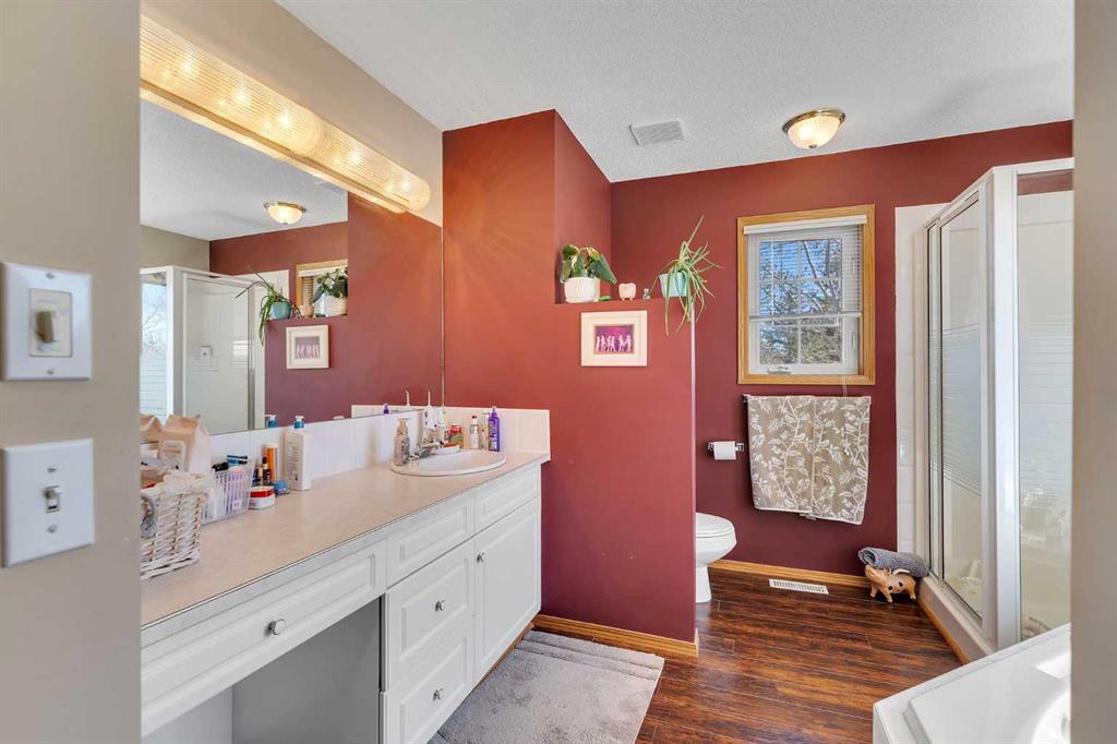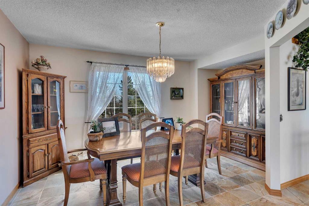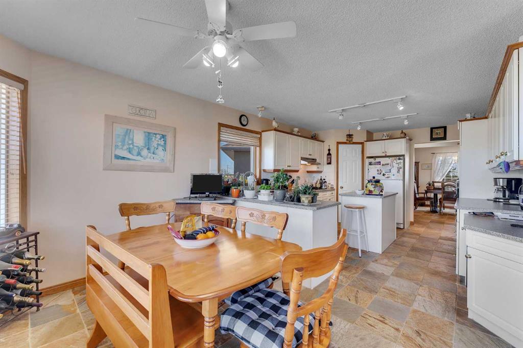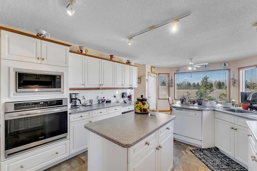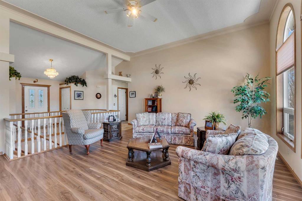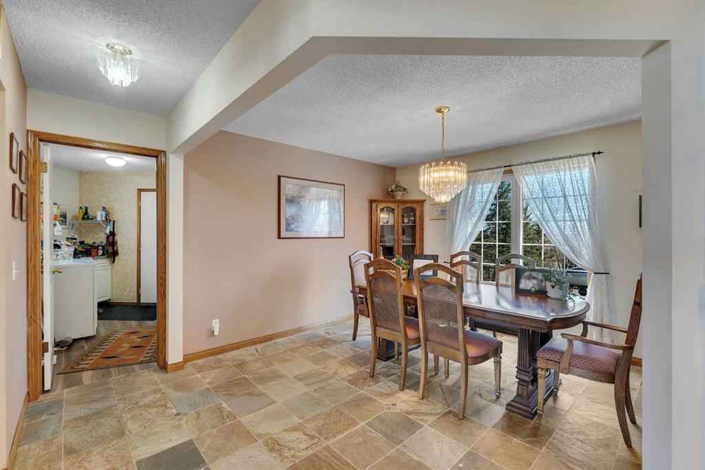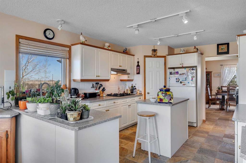 Walkout Bilevel on 4 acres with a triple attached garage and over 3000 sq. ft. of developed living space. This is the kind of property that offers both space and flexibility—inside and out. The main floor is bright and open with high ceilings that make the entire home feel even larger. The living room is anchored by a gas fireplace and flows easily into the white kitchen, complete with ample cabinetry, generous counter space, and a sunny breakfast nook overlooking the property. A formal dining room adds the perfect spot for hosting family dinners or special occasions. There are two bedrooms on the main level, including the primary with its own ensuite, offering a comfortable and private retreat. The fully developed walkout basement expands your living space with 2 additional bedrooms and a den, a large rec room with 2nd fire place, and direct access to the outdoors—ideal for guests, a growing family, or multi-generational living. Outside, the 4 acres provide endless possibilities. Enjoy the privacy, the views, and the freedom to use the land the way you want—all just a short drive from amenities.
