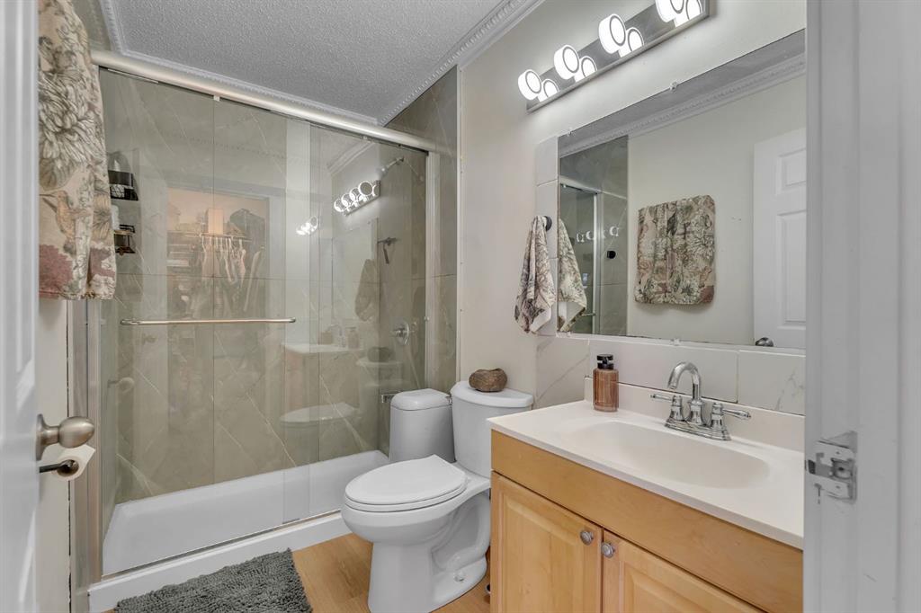 The primary bedroom includes a walk-in closet and a private ensuite bathroom. Two additional well-sized bedrooms and another full bathroom complete the main level.