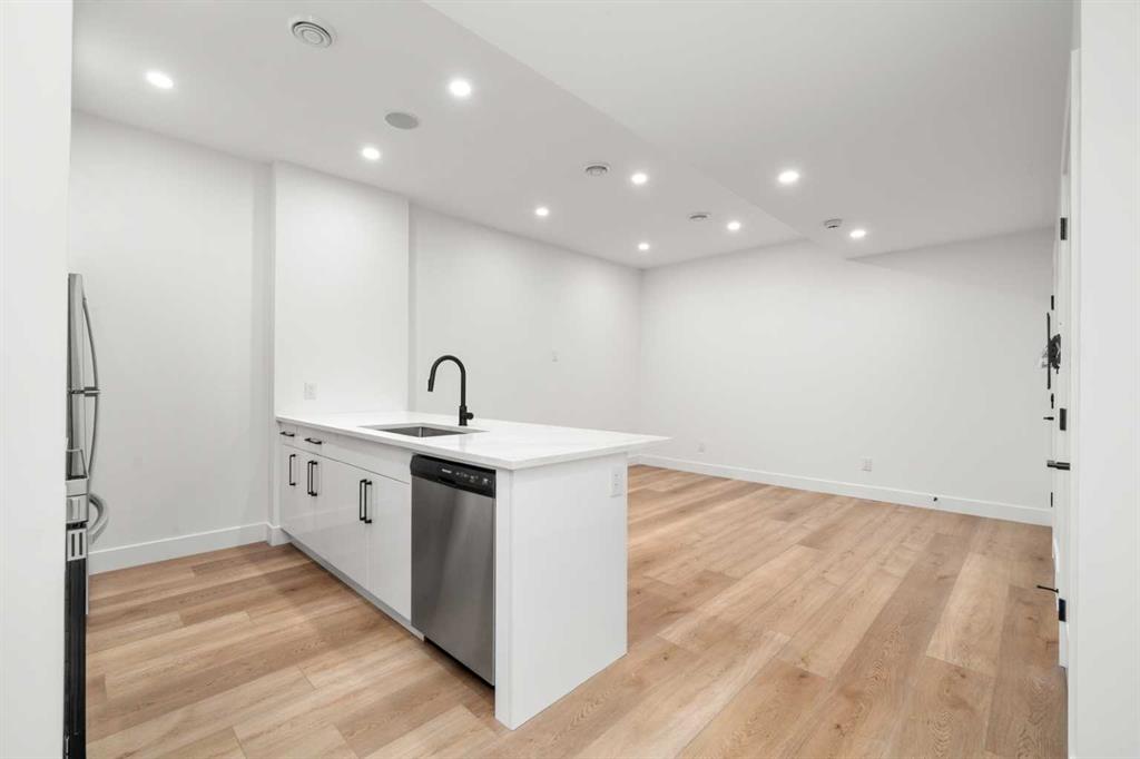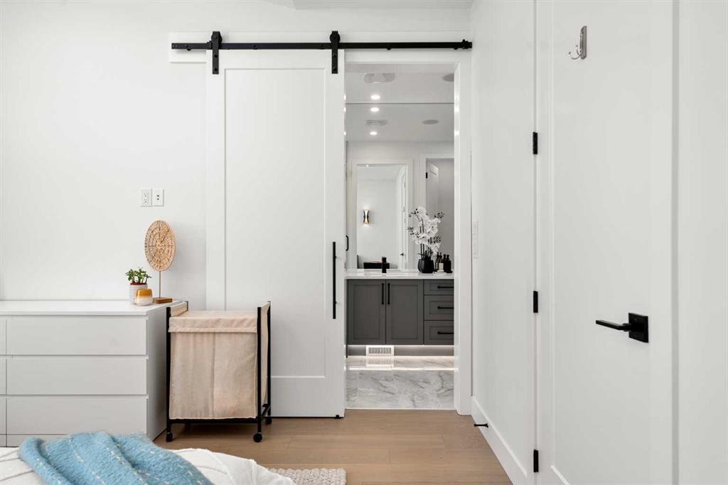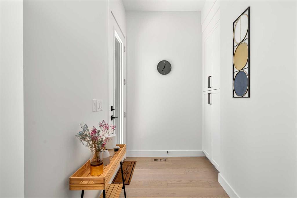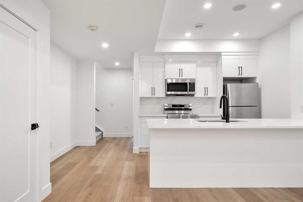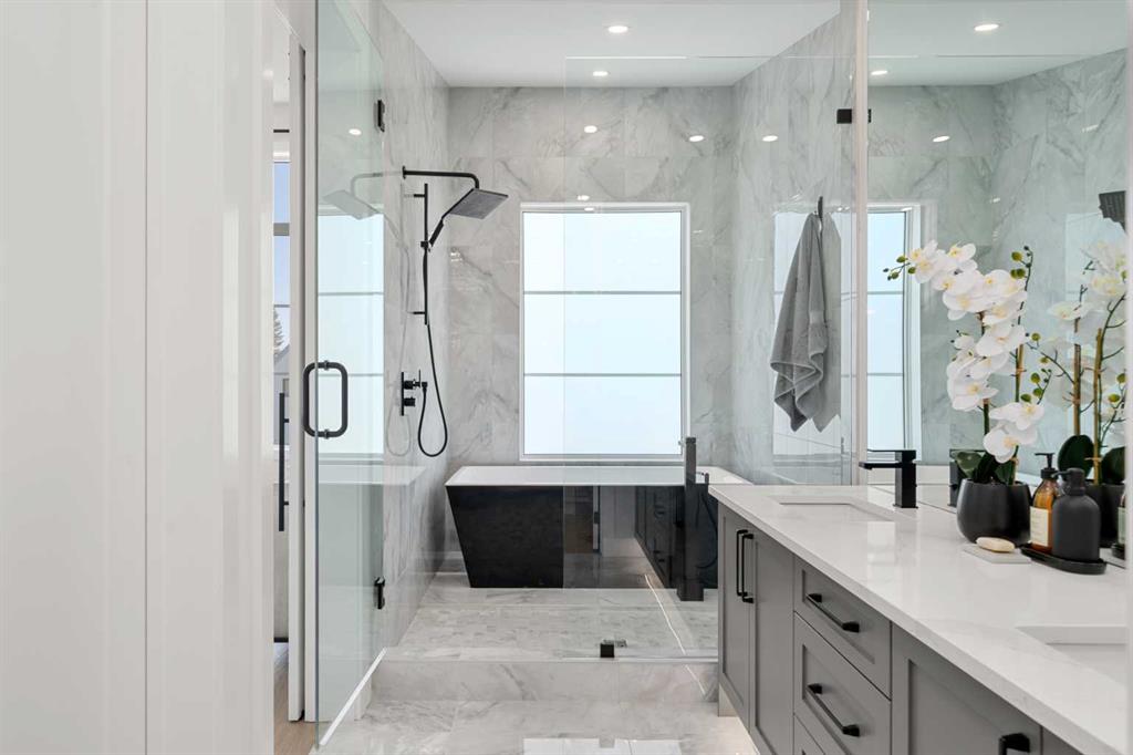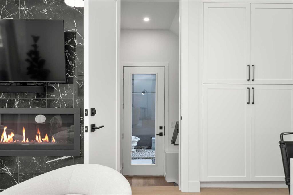 Welcome to 2503 20 Street SW, a beautifully designed semi-detached home in Richmond featuring a full legal basement suite, west-facing backyard, A/C, and high-end finishes throughout, with 4 bedrooms, 4 bathrooms and 1711 sqft. of living space. The main level offers an open floor plan with floor-to-ceiling windows, a cozy gas fireplace in the living room, and a chef’s kitchen with engineered hardwood flooring throughout. And as a bonus, extra storage and cupboard space in your kitchen. Sleek glass panel banisters lead upstairs, where you’ll find laundry, 3 spacious bedrooms, and a stunning primary ensuite highlighted by a luxurious wet-room design with a deep soaker tub set beside a frosted window, all within a large walk-in shower, plus dual vanities.