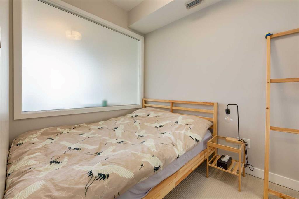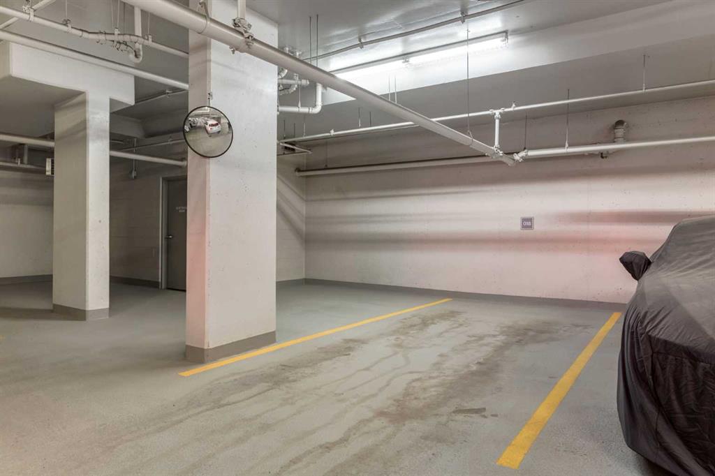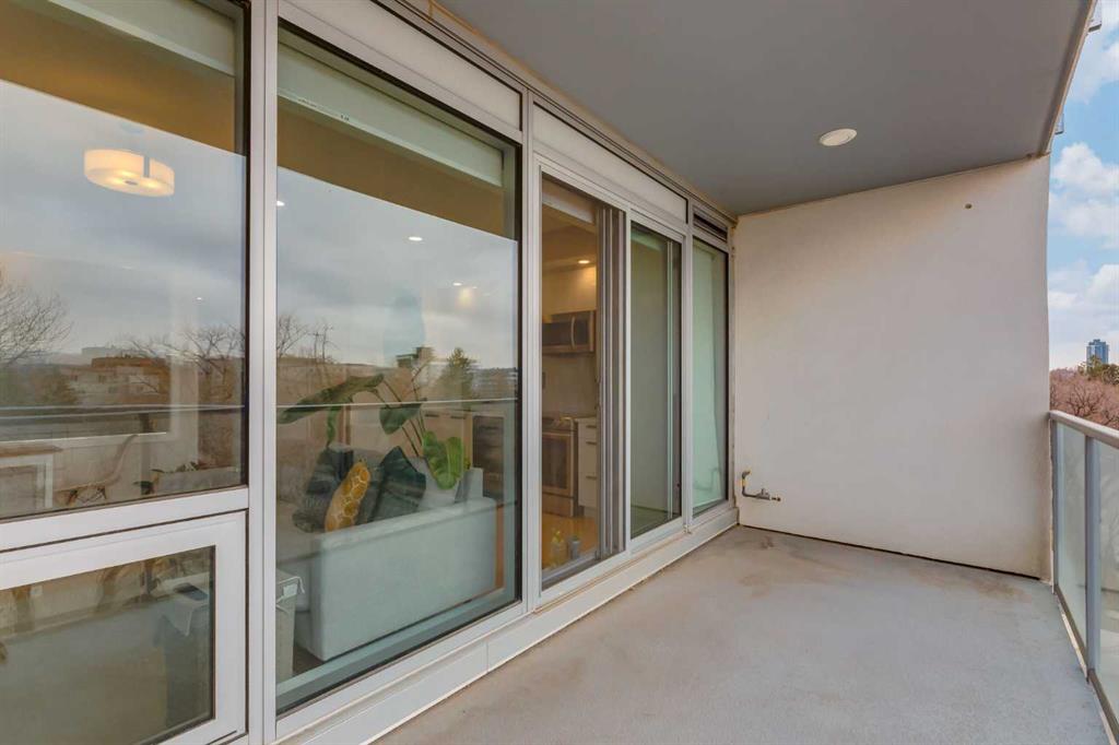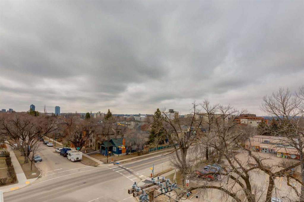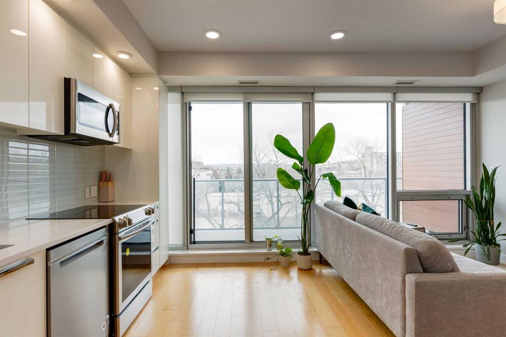 AMAZING VALUE ON RILEY PARK! Welcome to EZRA ON RILEY PARK & this sleek 1 bedroom condo in the highly sought-after inner city community of Hillhurst. This 5th floor unit in the West tower of this concrete & steel complex enjoys high ceilings & laminate floors, designer kitchen with quartz counters & West-facing balcony with gas BBQ line. Perfect for the first-time homeowner or as investment, this bright & airy home has floor-to-ceiling windows with roller blinds, open concept kitchen with high-gloss cabinets, upgraded Blomberg & Samsung appliances & private primary bedroom with mirrored closet. In-suite laundry with space-saving Whirlpool washer & dryer. The bathroom has quartz counters & tile floors. Huge full-width covered balcony overlooking the treetops with views of the surrounding neighbourhood. Additional features include NEST thermostat, unit-controlled central air & heating, separate storage cage & TITLED UNDERGROUND HEATED PARKING. Residents of EZRA also enjoy the top-notch amenities which includes onsite fitness centre, bike storage, underground visitor parking for their guests & the Ezra Club lounge complete with kitchen, fireplace & wine storage/tasting room. Backing onto beautiful historic Riley Park & next to Hillhurst/Sunnyside community centre, in this top-notch location only a few short minutes to SAIT & LRT, trendy Kensington district & downtown.