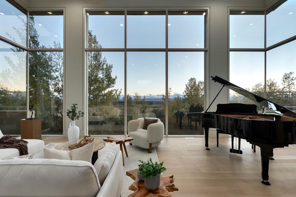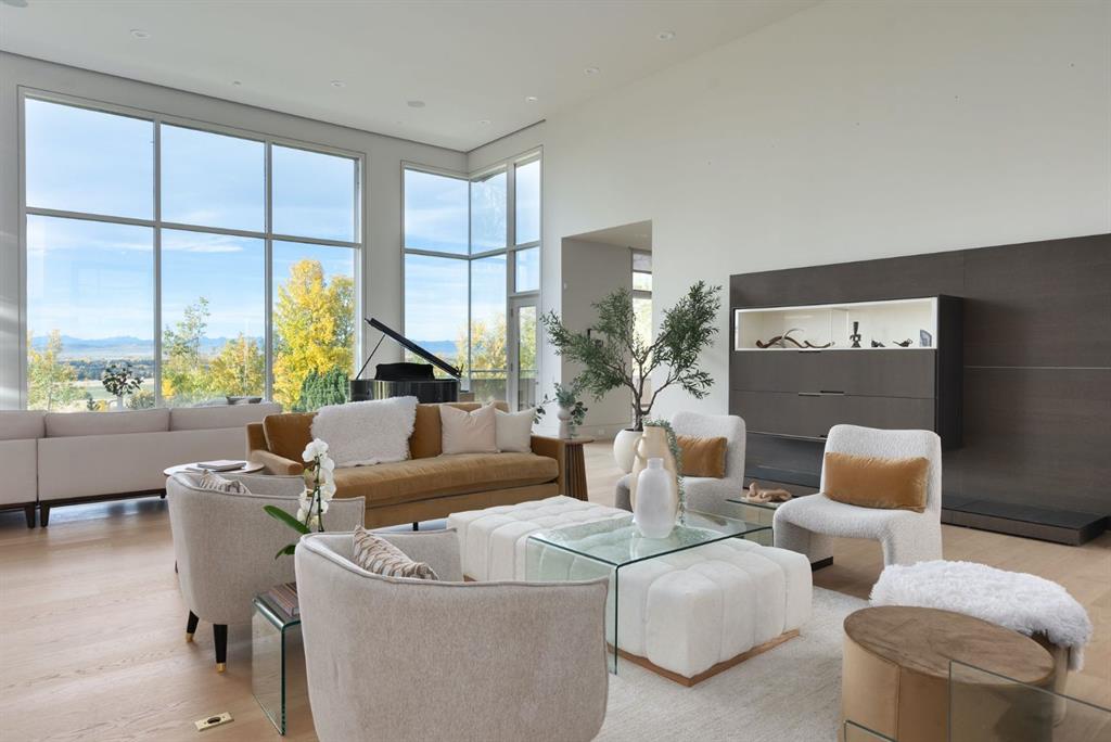 Seize a rare opportunity to own an iconic landmark in the prestigious southwest Springbank area, one of Calgary’s most coveted locations. Set on an expansive 18.62-acre escarpment, this exceptional property offers stunning mountain views and unparalleled privacy. Designed with new-age minimalism, this 20,000+ sq ft estate is a serene retreat for the discerning buyer. Located just minutes from Stoney Trail West, on the edge of Calgary, this secluded paradise offers the ultimate in luxury living. With 6 bedrooms + 10 bathrooms + 2 large offices, the home features stunning architectural design, including soaring flat & vaulted ceilings, a grand two-story great room illuminated by expansive windows. The contemporary living spaces are complemented by a soothing wood fireplace & ZEN garden inspired hallway views. The spacious dining room, perfect for memorable gatherings, overlooks beautifully landscaped grounds and majestic mountain vistas. Ample vehicle storage includes an oversized 3 car garage, a 2 car garage, and an additional oversized auxiliary 3 car garage (all heated). The gourmet kitchen is a chef’s dream, featuring a Wolf gas range with dual ovens, a built-in refrigerator, a walk-in pantry, an oversized granite island and custom white oak cabinetry. The adjacent family room includes a cozy fireplace, while the sunroom with another fireplace is perfect for family game or movie nights. The bedroom wing, secured by fire doors, houses the luxurious primary suite, a tranquil haven with views of mature trees and a lounge area with a fireplace. The ensuite boasts a deep soaker tub, granite dual-sink vanity, dual toilets, a bidet, and 2 oversized showers, along with a spacious walk-in closet. Four additional bedrooms, each with its own ensuite, are located in the bedroom wing, along with a laundry room and extra storage. Heated floors throughout both the main and lower levels provide year-round comfort. The lower level offers an additional bedroom with a full bathroom, a dedicated hot tub room, a spacious exercise room, an office and a large recreation room. A nearby bar and media room add to the entertainment space, while a walk-up entrance leads to the beautifully landscaped backyard, where a large in-ground pool awaits. Outdoor spaces include southwest-facing decks and a patio, a vast yard, and a middle courtyard with a sports court. An auxiliary building offers potential as a future guest house. The property has undergone millions of dollars in recent landscaping, with paved and natural pathways, waterfall features, and hidden sitting areas. Two security gates, fencing, and surveillance cameras ensure your privacy and security. This magnificent estate offers a private oasis with rolling hills, lush gardens, and elaborate landscaping that rivals anything in Aspen Hills—yet is only five minutes away from top-tier private schools. Experience the pinnacle of luxury living in Canada. Schedule your private tour today and discover all that your next home has to offer.
