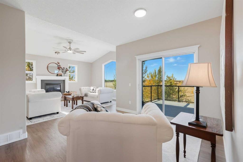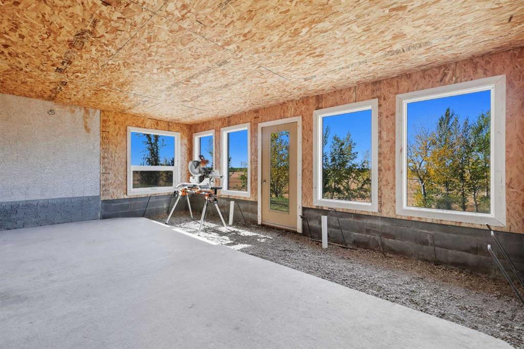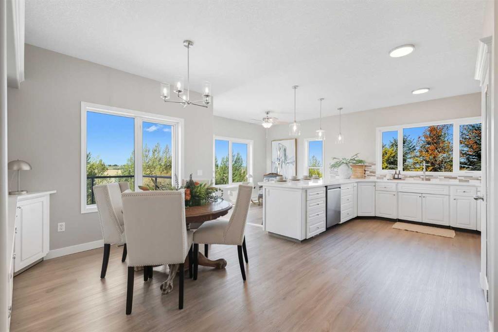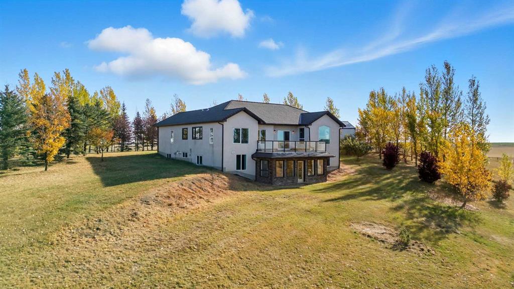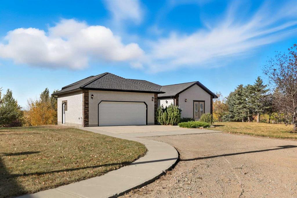 Welcome to this custom-built, 3500 sq ft developed area, walk-out bungalow perched on a scenic hilltop in Wheatland County, just 10 km north of Strathmore and only 25 minutes from Calgary International Airport. Set on 3 private, beautifully treed acres surrounded by agricultural fields and boasting unobstructed west-facing views of the Rocky Mountains, this property combines luxury living with peace and privacy. A tree-lined driveway lit with stately fixtures guides you to the home, which has been newly updated with modern paint, lighting, flooring, appliances, and decking, offering a fresh and stylish feel throughout. Designed for easy country living, the property is virtually maintenance free and finished with durable stucco and asphalt shingles. The 47’ x 31’ shop is fully insulated and heated, finished with a metal exterior and metal roof, making it ideal for storage, business, or hobby use in any season. Inside, the main floor showcases a large kitchen with peninsula seating, walk-in pantry, and a cozy breakfast nook with garden doors opening to the west-facing deck with glass railings—perfect for evening sunsets. The dining area and main living room are filled with natural light from oversized windows, and anchored by a gas fireplace, creating a warm and welcoming atmosphere. The master suite includes two walk-in closets, a spa-inspired 4-piece ensuite with a standalone soaker tub and separate shower, and garden doors to the east, perfect for enjoying peaceful morning sun. A den, main floor laundry, and central air conditioning add comfort and practicality. The walk-out basement, complete with in-floor heating, features a large family room with a built-in entertainment area, three bedrooms, big windows, and access to an enclosed patio—a cozy, protected space to enjoy your surroundings year-round. Additional highlights: oversized attached garage with in-floor heat, built-in cabinetry, sink, and hot/cold water, as well as 3 frost-free hydrants located throughout the property. Surrounded by mature trees, wide-open fields, and breathtaking west-facing views. Just a short drive to amenities in Strathmore, and a quick commute to Calgary and YYC. This home offers the ideal combination of luxury, low-maintenance design, and unmatched rural charm. The land offers many possibilities too for future uses as the house and shop were developed on the east side of the property. Whether you’re seeking a private family acreage or a turnkey retreat with space to work and play, this property delivers. A rare opportunity to own a thoughtfully designed, move-in-ready acreage in one of Wheatland County’s most desirable locations. Call your AWESOME Realtor today to book a viewing!