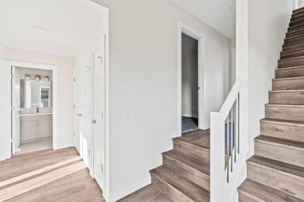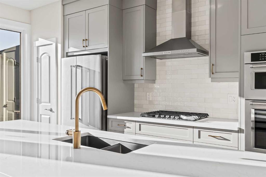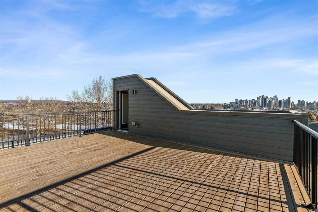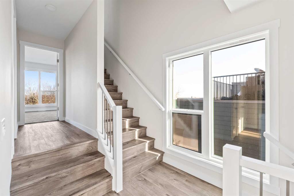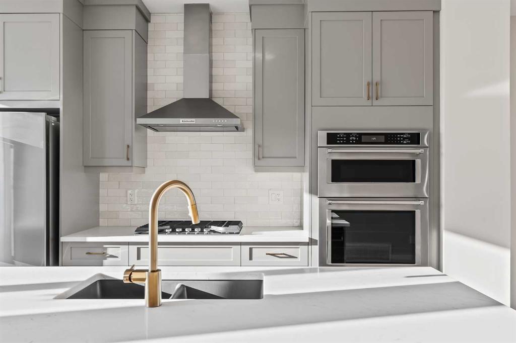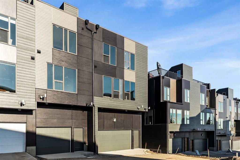 The crown jewel of Crown Park is now available. This exceptional end-unit Stanley townhome presents a rare opportunity to own one of the last remaining residences in this highly sought-after community, offering breathtaking, unobstructed views of Calgary’s downtown skyline while overlooking the Shaganappi Golf Course. At over 2,300 sq. ft. of thoughtfully designed living space, this brand-new urban townhome features 3 bedrooms, 2.5 bathrooms, a dedicated home office, a versatile flex space, and three expansive outdoor living areas, including an impressive 400 sq. ft. rooftop patio. The lower level welcomes you with a covered patio spanning the full width of the home, creating a private outdoor retreat overlooking green space and the street. Inside, a generous ~18’ x 14’ flex room with 10′ ceilings offers endless possibilities – ideal for a media room, home gym, studio, fourth bedroom, or additional office space. The main level is designed for effortless entertaining, showcasing a stunning open-concept layout enhanced by walls of windows that flood the space with natural light. The chef-inspired kitchen is beautifully appointed with a gas cooktop, built-in wall oven and microwave, chimney hood fan, and a large central island with seating. Flowing seamlessly into the spacious dining area and family room, the space is anchored by a striking fireplace with a full plaster surround extending to the soaring 11’ ceilings. Step outside to the ~175 sq. ft. balcony, spanning the width of the home and overlooking tranquil green space. The upper level has been intelligently designed with privacy in mind. The luxurious primary suite is positioned at the front of the home and features a wall of windows with green-space views, a large walk-in closet, and a spa-inspired 4-piece ensuite with dual sinks and a tiled walk-in shower. Two additional bedrooms, a full bathroom, upper-level laundry, and a den complete this floor. The rooftop patio is truly an entertainer’s dream – equipped with a gas line and ample room for both lounge and dining areas – offering the perfect setting to host guests while enjoying spectacular downtown skyline views. Completing this home is central air conditioning and a private double attached garage and additional storage space to keep your vehicle and valuables safe all year long. This brand new home comes with full builder warranty and Alberta New Home Warranty – allowing you to purchase with peace of mind. This home is ideally suited for professionals, families, or investors seeking a brand-new property with space to grow in one of Calgary’s most desirable inner-city locations, just minutes from downtown.