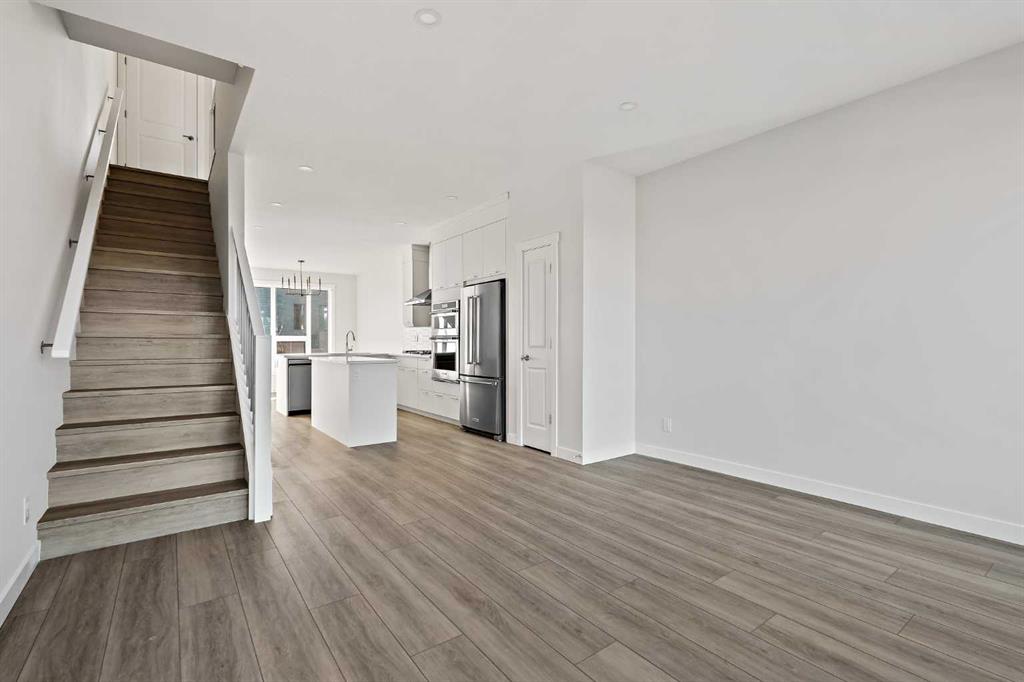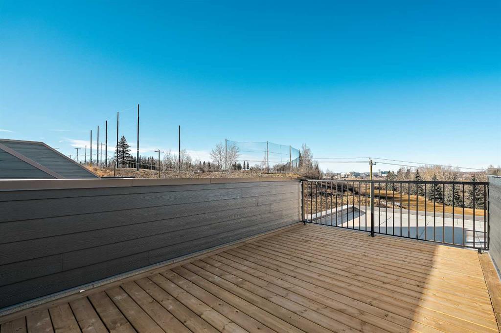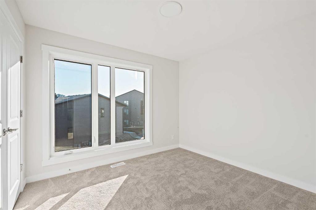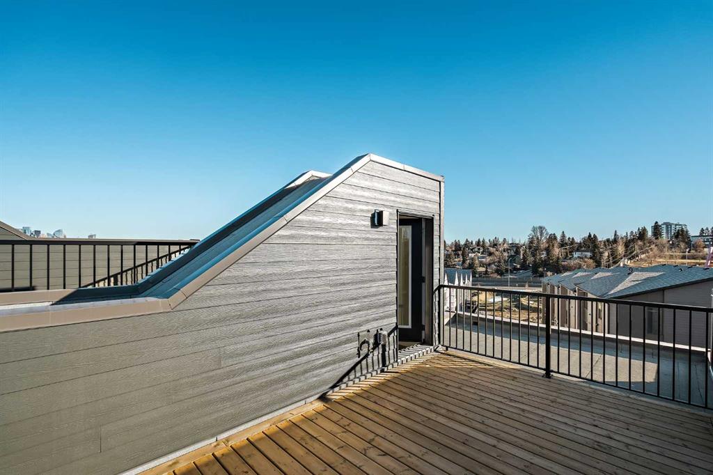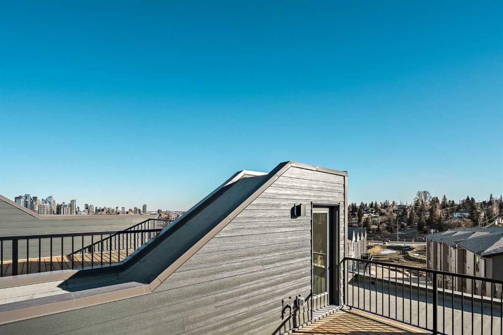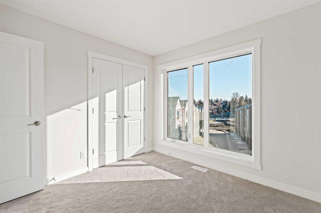 Welcome to The Alameda by Brookfield Residential – where modern design meets urban convenience, just minutes from downtown Calgary with stunning views! This beautiful 2-bedroom, 2.5-bathroom townhome offers over 1,500 sq. ft. of thoughtfully designed living space, complete with a single attached garage and a spacious main-level flex room – perfect for a home office, gym, or creative studio + 3 outdoor living spaces including a rooftop patio! The lower level features an expansive flex room spanning ~14’x14′ with soaring 10′ ceilings and a wall of windows overlooking your private patio and the front street. Experience open-concept living on the main level highlighted by 9’ ceilings throughout with oversized triple-pane windows at either end providing endless natural light all year long. The kitchen is a chef’s dream, featuring KitchenAid gourmet appliances, including a gas cooktop, wall oven/microwave, and a chimney hood fan, all complemented by elegant finishes and generous counter space and a pantry. The timeless white kitchen is central to the main level, opening to both the dining area and great room, creating the ideal space for entertaining. The great room has direct access to the main level balcony that spans 15′ x 9’8″ and includes a BBQ gas line for everyday convenience. The upper level features a large primary suite complete with walk-in closet and a private 4pc ensuite with dual sinks and a tiled walk-in shower. A large second bedroom, full bathroom and laundry complete the upper level. The top level of the home is where you’ll spend your summers – soaking up the sun on your private ~200 ft2 rooftop patio with views overlooking the Shaganappi golf course and stunning views to the south and downtown Calgary! Complete with 2 living areas, 2 bedrooms, 2.5 bathrooms and 3 outdoor living spaces + a private attached garage, this home is perfect for professionals or down-sizers that appreciate convenience. Located away from Bow Trail, this premium location offers a quiet space for daily living with convenient access to the CTrain and downtown Calgary just minutes away. Additional features include convenient street parking in front, and full builder warranty + Alberta New Home Warranty – allowing you to purchase with peace of mind. This maintenance-free home is fully move-in ready with free legal fees for the purchaser in desirable Crown Park!