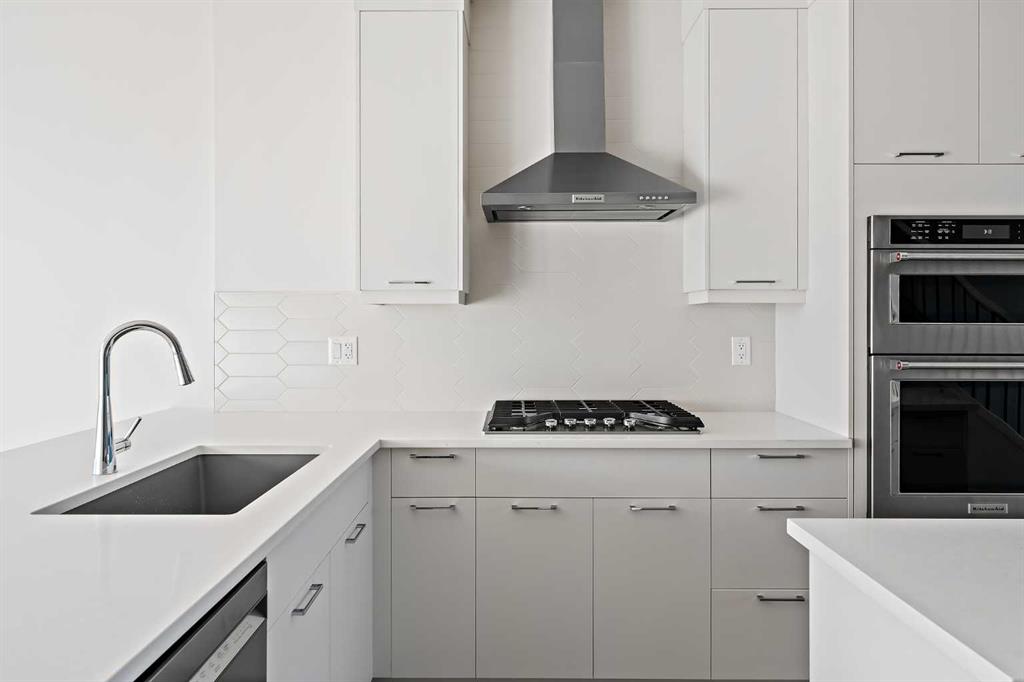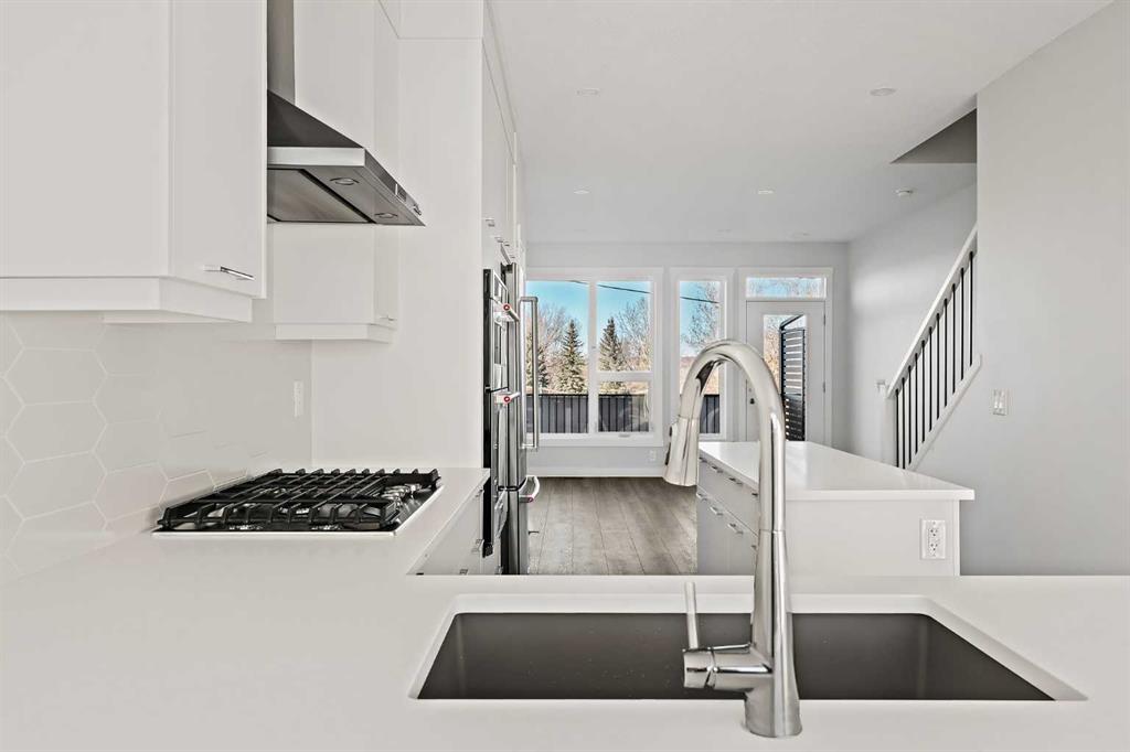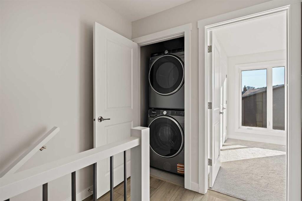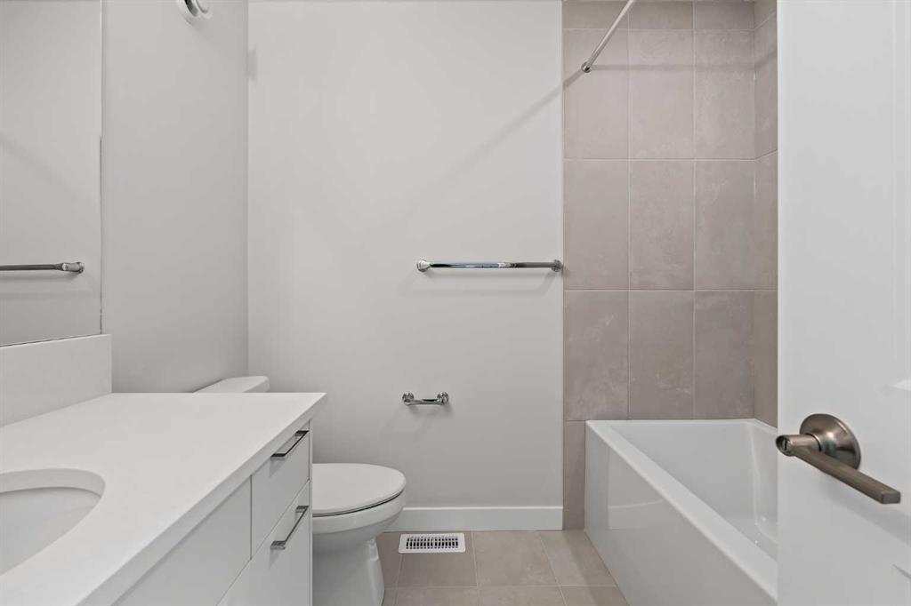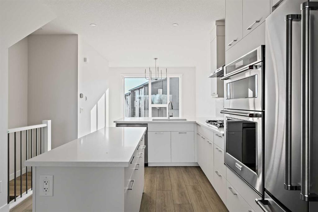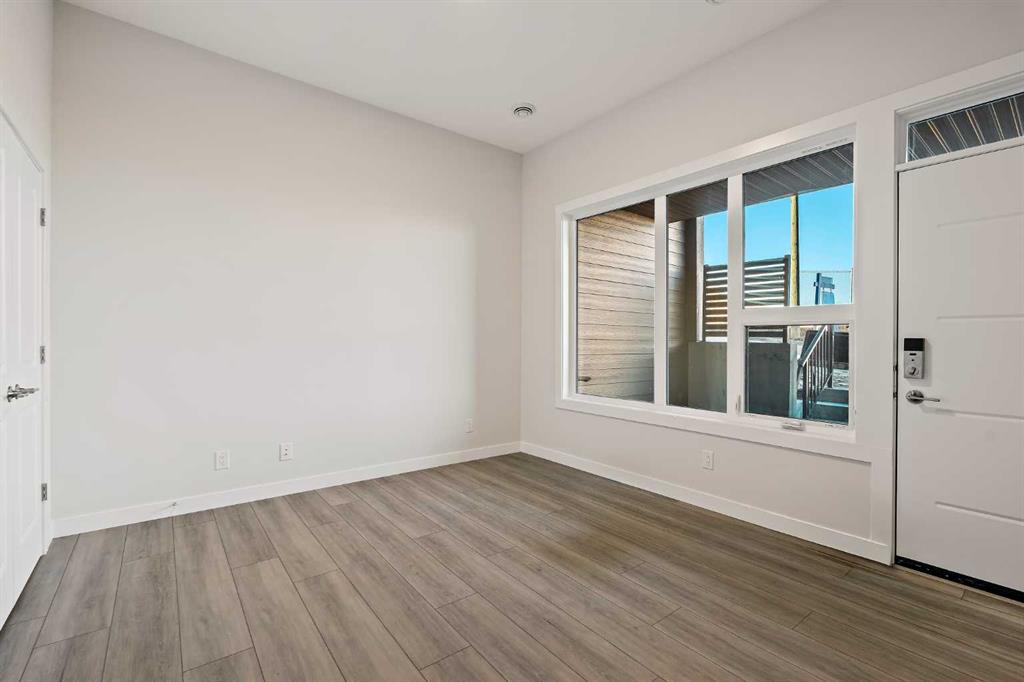 Welcome to The Alameda by Brookfield Residential – where modern design meets urban convenience, just minutes from downtown Calgary with stunning views! This beautiful 2-bedroom, 2.5-bathroom townhome offers over 1,500 sq. ft. of thoughtfully designed living space, complete with a single attached garage and a spacious main-level flex room – perfect for a home office, gym, or creative studio + 3 outdoor living spaces including a rooftop patio! The lower level features an expansive flex room spanning ~14’x14′ with soaring 10′ ceilings and a wall of windows overlooking your private patio and the front street. Experience open-concept living on the main level highlighted by 9’ ceilings throughout with oversized triple-pane windows at either end providing endless natural light all year long. The kitchen is a chef’s dream, featuring KitchenAid gourmet appliances, including a gas cooktop, wall oven/microwave, and a chimney hood fan, all complemented by elegant finishes and generous counter space and a pantry. The timeless white kitchen is central to the main level, opening to both the dining area and great room, creating the ideal space for entertaining. The great room has direct access to the main level balcony that spans 15′ x 9’8″ and includes a BBQ gas line for everyday convenience. The upper level features a large primary suite complete with walk-in closet and a private 4pc ensuite with dual sinks and a tiled walk-in shower. A large second bedroom, full bathroom and laundry complete the upper level. The top level of the home is where you’ll spend your summers – soaking up the sun on your private ~200 ft2 rooftop patio with views overlooking the Shaganappi golf course and stunning views to the south and downtown Calgary! Complete with 2 living areas, 2 bedrooms, 2.5 bathrooms and 3 outdoor living spaces + a private attached garage, this home is perfect for professionals or down-sizers that appreciate convenience. Located away from Bow Trail, this premium location offers a quiet space for daily living with convenient access to the CTrain and downtown Calgary just minutes away. Additional features include convenient street parking in front, and full builder warranty + Alberta New Home Warranty – allowing you to purchase with peace of mind. This maintenance-free home is fully move-in ready with free legal fees for the purchaser in desirable Crown Park!