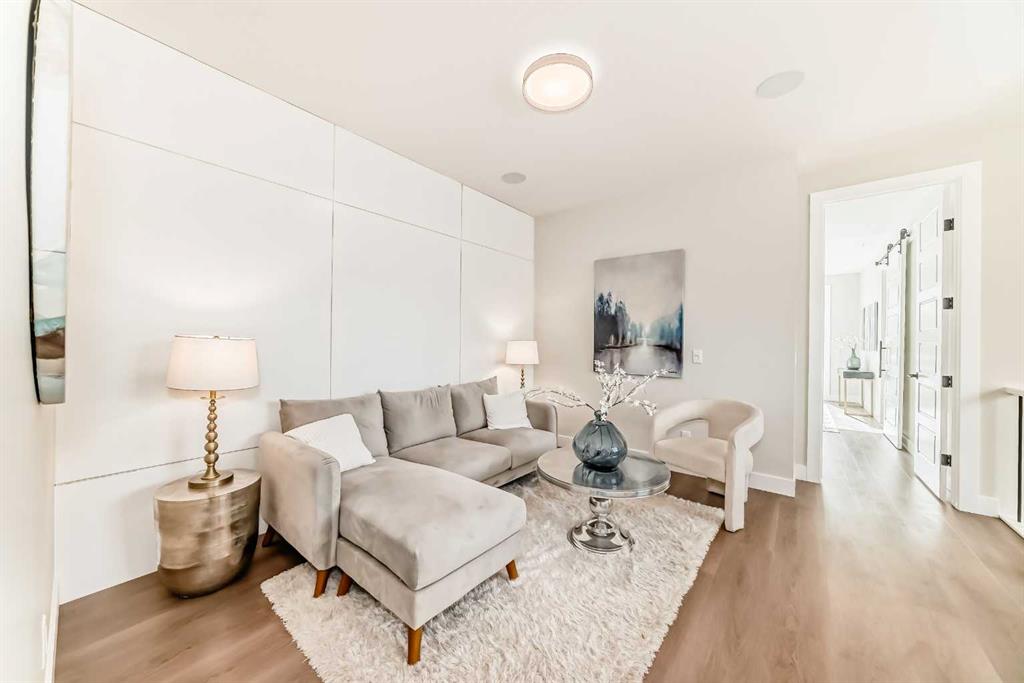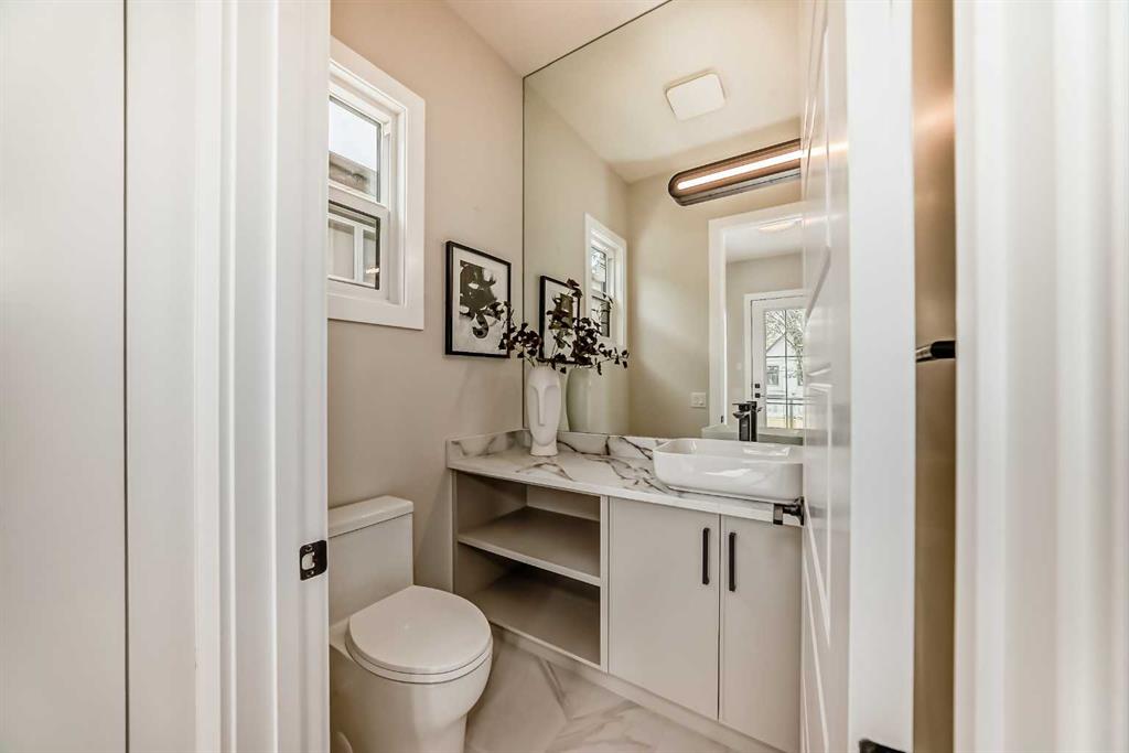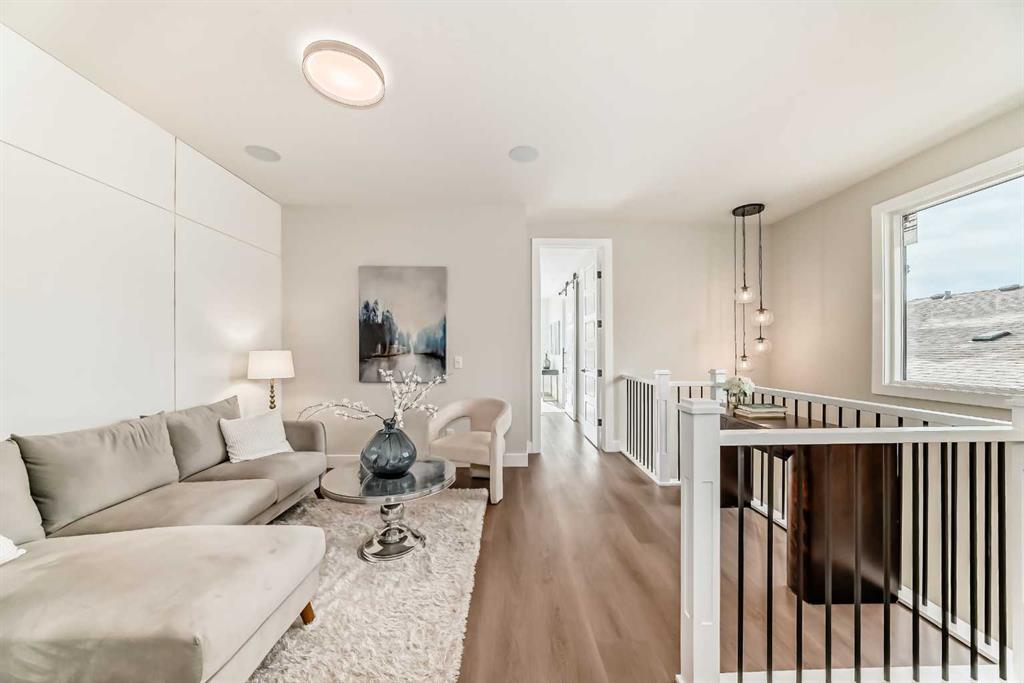 Upstairs, the elegant primary suite offers a spa-inspired ensuite and walk-in closet, joined by two additional bedrooms and convenient laundry. The finished lower level includes a spacious rec room, fourth bedroom, and full bath. Backed by nature and steps from parks, schools, and the Bow River pathways, this West Hillhurst gem delivers the perfect balance of luxury and lifestyle.