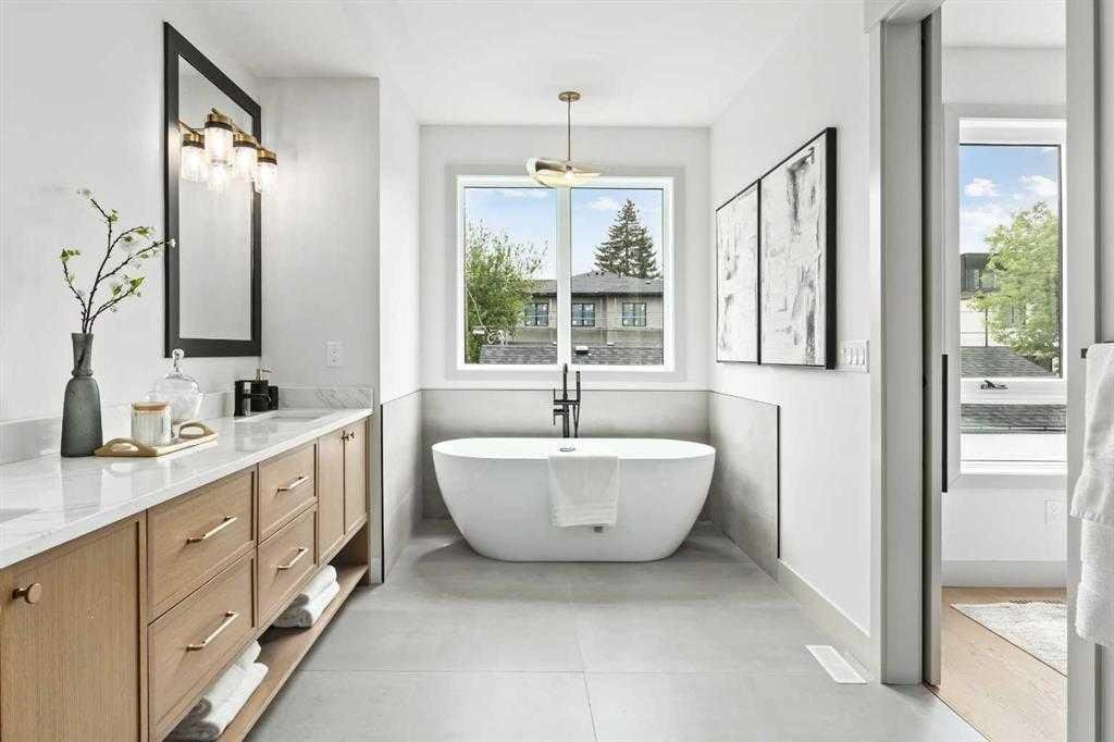 Set on a quiet cul-de-sac in WEST HILLHURST, this GORGEOUS NEW BUILD 3 STOREY DUPLEX delivers modern design, functional living and thoughtful detail in one of Calgary’s most established inner-city communities. A SOUTH BACKYARD enhances natural light and outdoor enjoyment. The main floor is designed for everyday ease and entertaining, with an open layout that flows naturally between the living room, dining area and kitchen. A FIREPLACE anchors the living space, creating warmth and visual interest, while HARDWOOD FLOORING provides durability and timeless appeal. The kitchen is thoughtfully planned with generous prep space, modern cabinetry and a layout that supports both daily routines and hosting. On the second level, well-proportioned bedrooms are complemented by a primary bedroom featuring a PRIVATE ENSUITE with a DOUBLE VANITY, offering comfort, functionality and a sense of retreat. The THIRD STOREY is a standout feature, offering a flexible retreat ideal for entertaining, working or hosting guests. This level includes a PRIVATE BEDROOM well suited for overnight visitors or a quiet HOME OFFICE, enhanced by separation from the main sleeping areas below. A WET BAR supports relaxed evenings and casual gatherings, while access to TWO DECKS with both NORTH AND SOUTH EXPOSURE allows for sunlight throughout the day, outdoor breaks between meetings or private lounging above the surrounding streetscape. The basement is developed to extend living space, offering flexibility for a media room, home gym or guest area, with finishes consistent with the quality found throughout the home. The EXTERIOR showcases a striking combination of BRICK and COMPOSIT ELEMENTS, delivering a modern aesthetic with lasting durability. LANDSCAPING is planned per the approved site design, with concrete walkways and defined outdoor spaces in place. Parking is accommodated by a DOUBLE DETACHED GARAGE accessed from the rear lane, providing secure, weather-protected parking and additional storage. WEST HILLHURST is prized for its walkability, mature tree-lined streets and strong community feel, with easy access to river pathways, parks, local shops and everyday amenities. Proximity to downtown, major routes and nearby neighbourhood favourites makes this location especially appealing for those seeking inner-city living without sacrificing comfort, privacy or connection to green space.