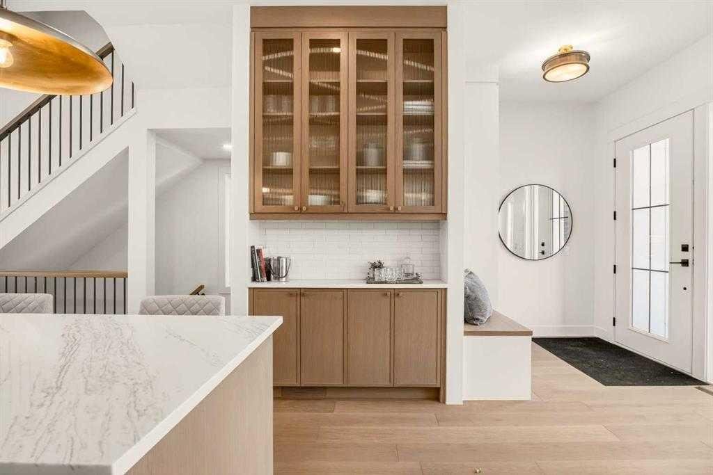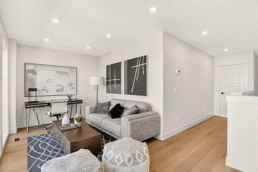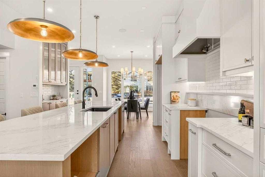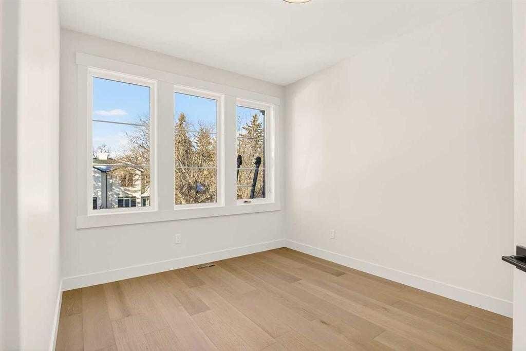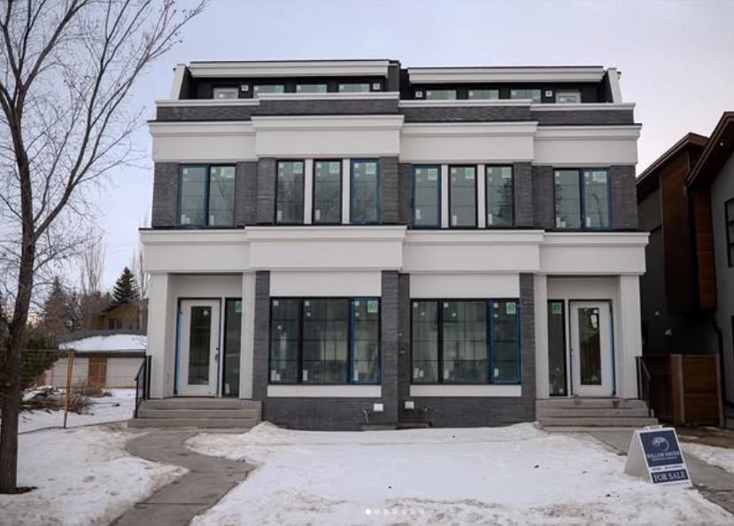 Modern design meets elevated everyday living in this brand new 3-storey infill set within a QUIET CUL-DE-SAC in West Hillhurst. Thoughtfully crafted, this semi-detached home brings together refined finishes, functional layout and a SOUTH BACKYARD that enhances natural light throughout the day. Hardwood flooring carries across the main level, establishing a warm and cohesive foundation for daily life and entertaining. Gather in the spacious dining area where clean sightlines connect seamlessly to a chef-inspired kitchen complete with FULL HEIGHT CABINETS, a LARGE ISLAND, WALL PANTRY and a well-appointed APPLIANCE PACKAGE that supports both routine meals and larger gatherings. Conversations flow naturally into the living area where a CENTER GAS FIREPLACE framed by BUILT-IN SHELVING AND CABINETRY creates a comfortable focal point, while a PATIO SLIDER extends the living space outdoors. Organization becomes effortless with an ENCLOSED MUDROOM offering ample storage, complemented by a TUCKED AWAY POWDER ROOM that maintains privacy for guests. Upstairs, thoughtful design continues with 2 well-proportioned bedrooms and a 4PC MAIN BATH, while a dedicated LAUNDRY ROOM WITH SINK AND CABINETRY adds everyday convenience. A SECOND PRIMARY BEDROOM on this level introduces flexibility for multi-generational living or guests, complete with WALL PANELLING, a LARGE WALK-IN CLOSET and a 5PC ENSUITE featuring DUAL VANITIES and ELECTRIC HEAT for added comfort. Retreat to the top floor where the MAIN PRIMARY SUITE spans an entire level, offering a private escape enhanced by a SITTING AREA WITH BALCONY, a DRY BAR and access to a SECOND BALCONY. Relaxation is elevated in the luxurious 5PC ENSUITE with a FREE STANDING TUB, STAND UP SHOWER and DUAL VANITY, while a LARGE WALK-IN CLOSET ensures everything remains organized. Downstairs, a fully finished basement expands the living space with a LARGE REC ROOM, WET BAR and generous storage, alongside a 5TH BEDROOM and 4PC BATH that easily accommodates guests or extended family. Outdoor living is simplified with a FULLY FENCED SOUTH BACKYARD and GROUND LEVEL PATIO designed for both quiet evenings and summer gatherings. Added value comes through ROUGH-INS FOR AC, HYDRONIC IN-FLOOR HEAT AND STEAM SHOWER, along with CEILING SPEAKERS and a DUAL ZONE FURNACE that enhances comfort across all levels. Parking is completed by a DOUBLE DETACHED GARAGE, while the location places pathways, parks, schools and inner-city amenities within easy reach, connecting lifestyle and convenience in one of Calgary’s most desirable communities.