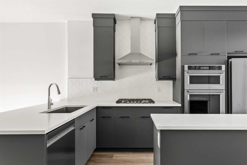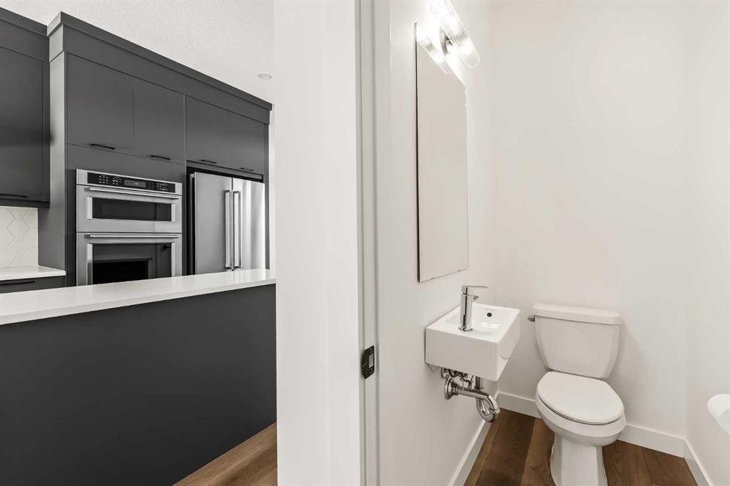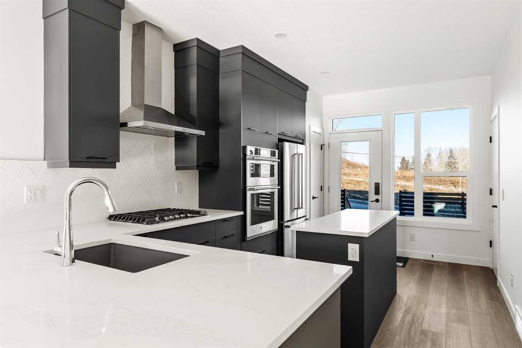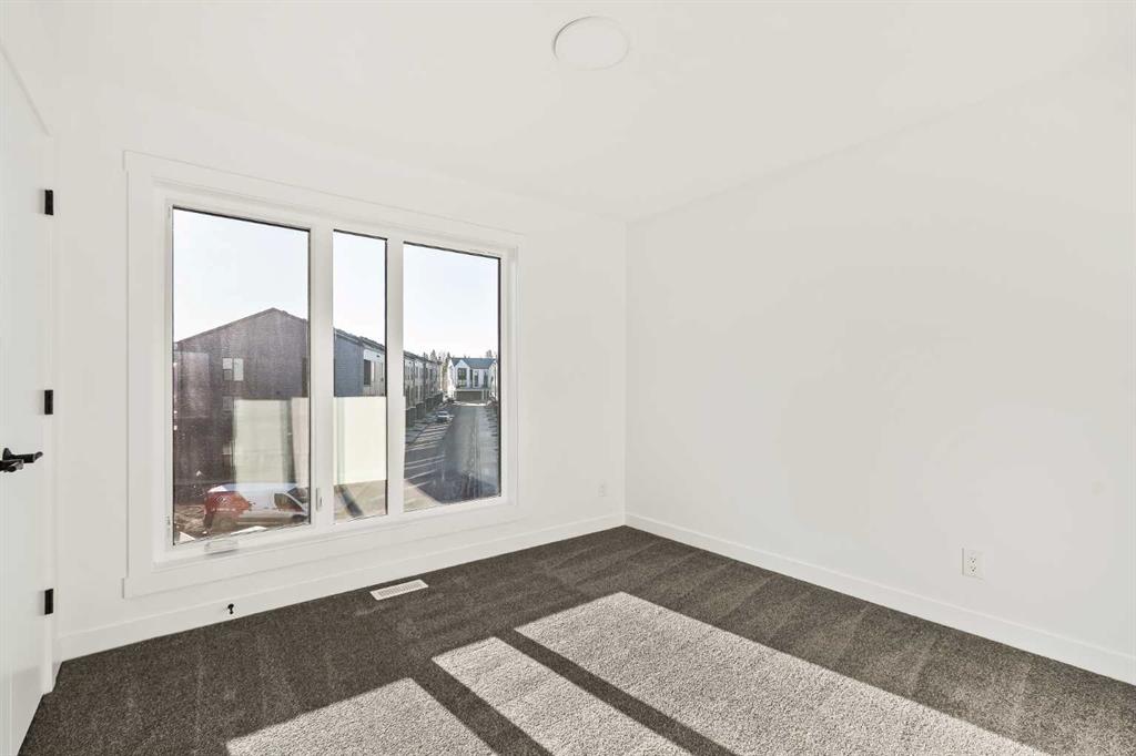 Welcome to the Alameda urban townhome at Crown Park, by Brookfield Residential. Thoughtfully designed, this brand-new residence offers over 1,300 sq. ft. of above-grade living space, plus a versatile lower-level flex room conveniently located off the attached garage. Featuring 2 bedrooms, 2.5 bathrooms, two distinct living areas, and two outdoor living spaces – including an impressive ~200 sq. ft. rooftop patio – this home is ideal for young professionals, downsizers seeking a low-maintenance lifestyle, or investors looking for a premium inner-city opportunity. The welcoming front entrance showcases a spacious patio overlooking green space, complemented by a wall of windows that allow you to enjoy the views both inside and out. The main level boasts a bright, open-concept layout designed with entertaining in mind. The gourmet kitchen is equipped with a gas cooktop, built-in appliances, chimney-style hood fan, and a central island as well as an eating bar that flows seamlessly into the dining and living areas. The central dining space overlooks the living room, while south-facing windows flood the main level with natural light throughout the day. A convenient 2-piece powder room completes this floor. The upper level is intelligently designed for privacy, with bathrooms centrally located and two generously sized bedrooms positioned at opposite ends of the home. The primary suite features double-door entry to a walk-in closet and a luxurious 4-piece ensuite with dual sinks and a tiled walk-in shower with niche. The second bedroom offers a large closet and is perfectly suited as a guest room or home office, with south-facing windows and a full 4-piece bathroom located just steps away. Upper-level laundry adds everyday convenience. Durable vinyl plank flooring continues through the upper-level hallway and stairwell leading to the rooftop patio – a thoughtful upgrade that enhances year-round access to the outdoor space. Designed for entertaining, the rooftop patio offers ample room for lounge and dining areas, is equipped with a gas line, and enjoys views over green space. Completing the home is the lower-level flex room, ideal for a media room, home gym, or office, located adjacent to the private single attached garage, which also includes a dedicated storage room. Timelessly designed with hosting in mind and ample room to grow, this townhome is located just minutes from downtown Calgary and offers multiple outdoor living areas that make it as functional as it is beautiful. With immediate access to nature trails, golf, and major transit routes, this home delivers a lifestyle that extends well beyond its walls. Backed by full builder warranty and Alberta New Home Warranty, you can purchase with complete peace of mind!