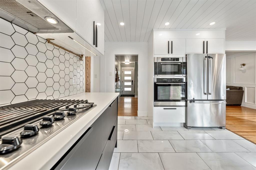 PEACE OF MIND UPDATE! Sellers are replacing the original Sewer Lines on Nov 12, 2025. Open House: Sat, Oct 25, 2-4 pm | Charleswood Charm with Stylish Updates! | Nestled on a peaceful, tree-lined street right in the heart of Charleswood, this beautifully updated four-level split is the perfect mix of charming character, modern convenience, and a welcoming, family-friendly community. With over 1,950 square feet of thoughtfully developed space, this home has been lovingly upgraded over the years to be both warm and stylish, and mechanically efficient. Step inside and you’ll be greeted by gorgeous hardwood floors, rustic shiplap ceilings and wood panelled walls, and a bright, open-plan living space that feels inviting and effortlessly livable. The sleek designer kitchen is a dream for busy family life, with two-tone modern cabinetry, quartz countertops, stainless steel appliances, and plenty of counter space. The adjacent dining and living areas are both spacious and flexible, filled with natural light that creates a cheerful and homey vibe. Upstairs, you’ll find three comfortable bedrooms and a beautifully updated family bathroom. The lower level has a versatile fourth bedroom (or home office) along with an updated three-piece bathroom and fabulous dual purpose laundry-mudroom that keeps everything organized and the mess at bay. Check out the cozy family room in the lower level, with a stylish electric fireplace complimented by a wooden slat wall, and additional flexible space that’s perfect as a play space or exercise area. Out back, the south facing backyard feels like your own private oasis—complete with mature, fruit-bearing trees, lush landscaping, and enough space for outdoor fun and entertaining. The home also features a heated double detached garage in addition to the single attached garage, giving you plenty of parking and storage options. Located in one of Calgary’s most desirable NW neighbourhoods, you’re just minutes from the University, K-9 schools, parks, pathways, and all the amenities you could need. Don’t miss your chance to own this beautifully updated charmer in ever-popular Charleswood!
