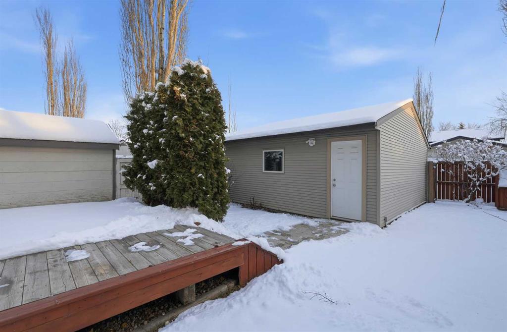 Outside, the fully fenced, treed backyard offers privacy and space to relax, featuring a deck and a storage shed. Fresh paint up and down means the home truly is move-in ready!