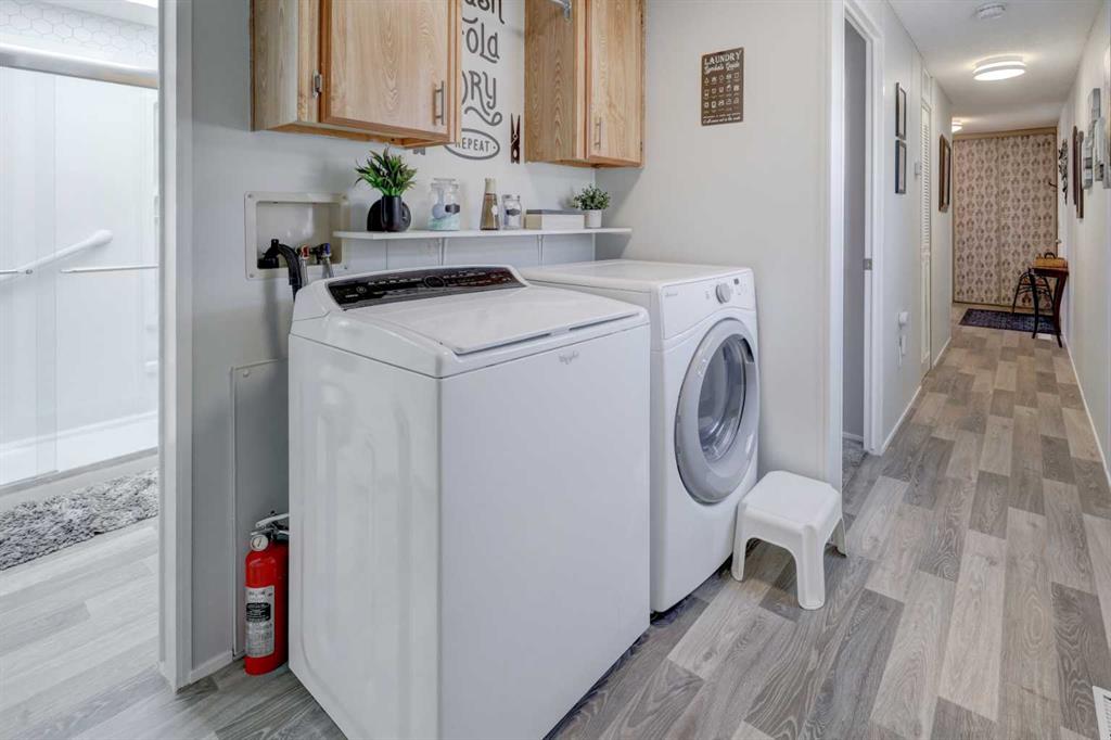 Welcome to Parkridge Estates and this stylish, well cared for home. It features 3 bedrooms, 1 bathroom and shows pride of ownership with many UPGRADES. 2022 saw new VINYL flooring, carpet and a hot water tank. In 2023 the interior was freshly painted and the bathroom renovation included a NEW large WALK-IN shower, toilet, window and SKYLIGHT. A NEW FURNACE and CENTRAL AIR CONDITIONING were also added in 2023 along with new ceiling fans, light fixtures, kitchen backsplash and wallpaper. The kitchen offers NEW Stainless Steel Appliances (Dec 2025) lovely pine cabinetry and a pull-out pantry. The summer of 2024 saw a new ROOF, new DECK and all new interior doors and hardware. Finally, the exterior was PAINTED in the summer of 2025. Nothing left to do but move in and ENJOY!