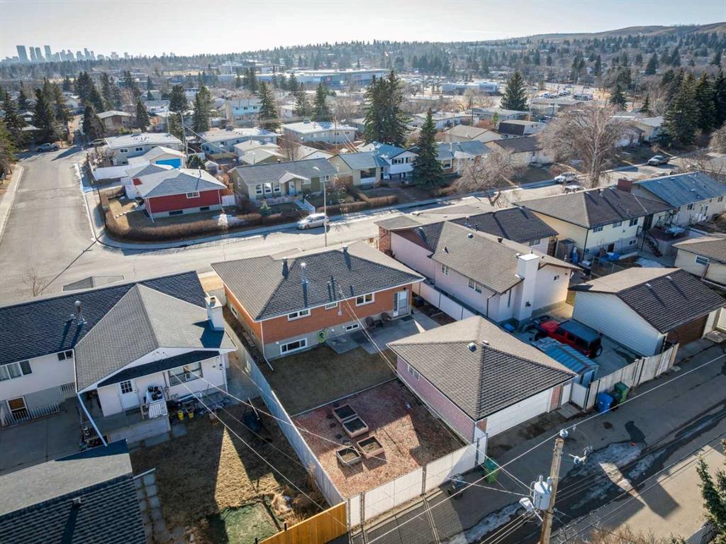 Welcome to this well cared for Nu-West built home located on a quiet, family-friendly street in the heart of Huntington Hills. Loved for its mature landscaping, sunny front porch, and beautiful garden spaces, this property offers outstanding potential for buyers looking to personalize while benefiting from strong structural upgrades and thoughtful maintenance. Step inside to discover newer windows throughout most of the home, original hardwood flooring preserved beneath carpet in two bedrooms, and a spacious layout filled with natural light. The large kitchen featuring abundant cabinetry, a hallway pantry, garburator, and updated range offering plenty of space for everyday living or future renovation plans. The lower level adds flexibility with a bright “summer kitchen” area, generous recreation room with built-in shelving, a four-piece bathroom, tons of storage, including double closets in the den. Outside, enjoy newer shingles on both the home and garage, updated soffits and downspouts, The large double garage and paved rear lane provide excellent access, with additional space for camper parking beside the garage if so desired. Garden boxes and mature flower beds make the backyard a true retreat, while the front porch offers the perfect place to unwind and enjoy the neighborhood. Ideally situated close to neighborhood shopping, Deerfoot Trail, McKnight Boulevard, and everyday amenities, this location is prized for its convenience and strong community feel. A fantastic opportunity in an established northwest community in this well love home!